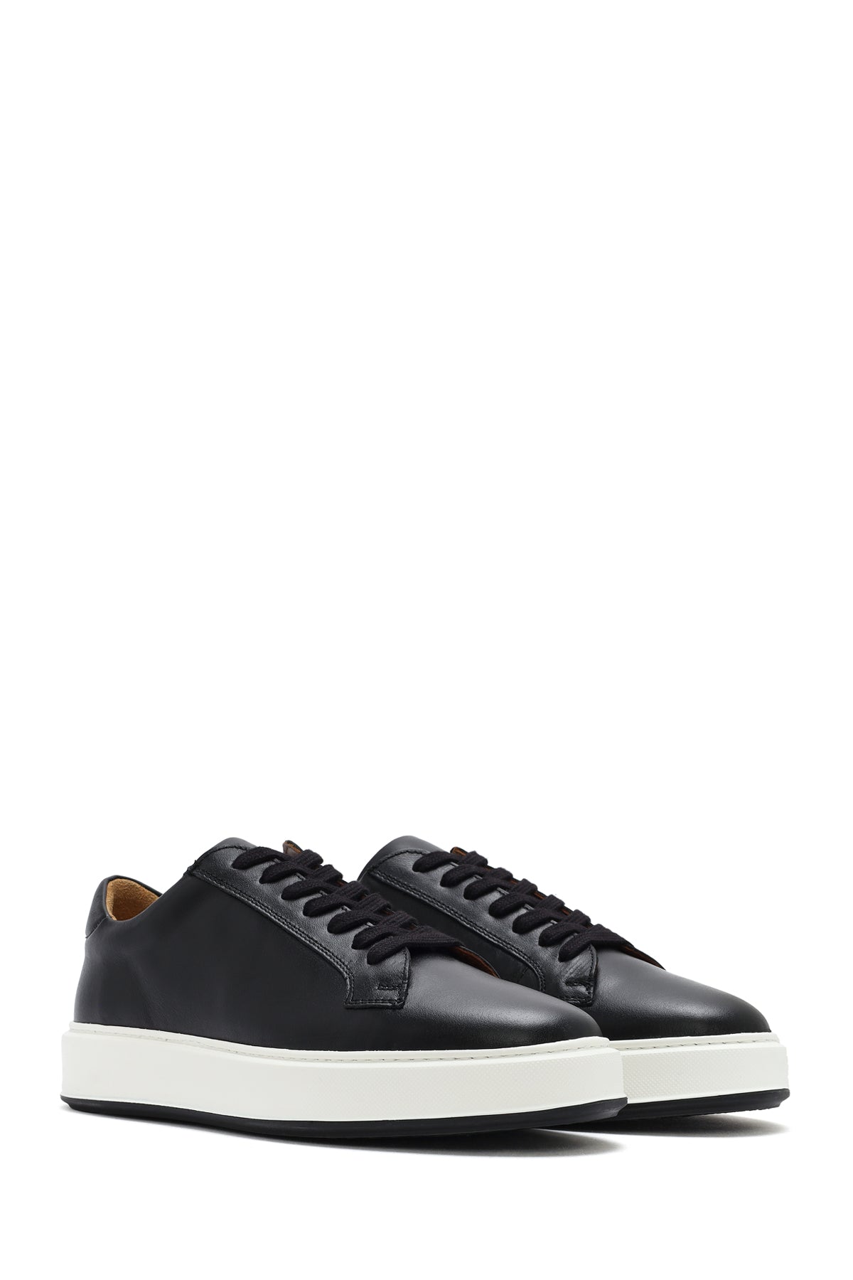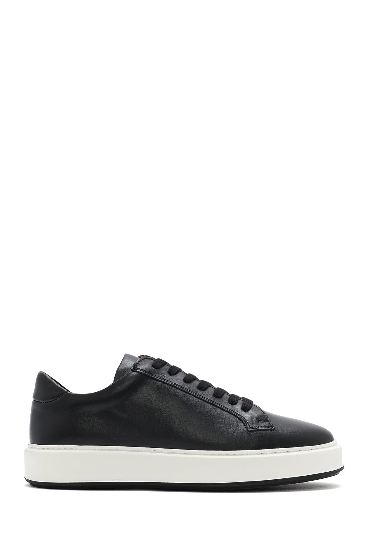 Erkek Siyah Bağcıklı Deri Casual Sneaker