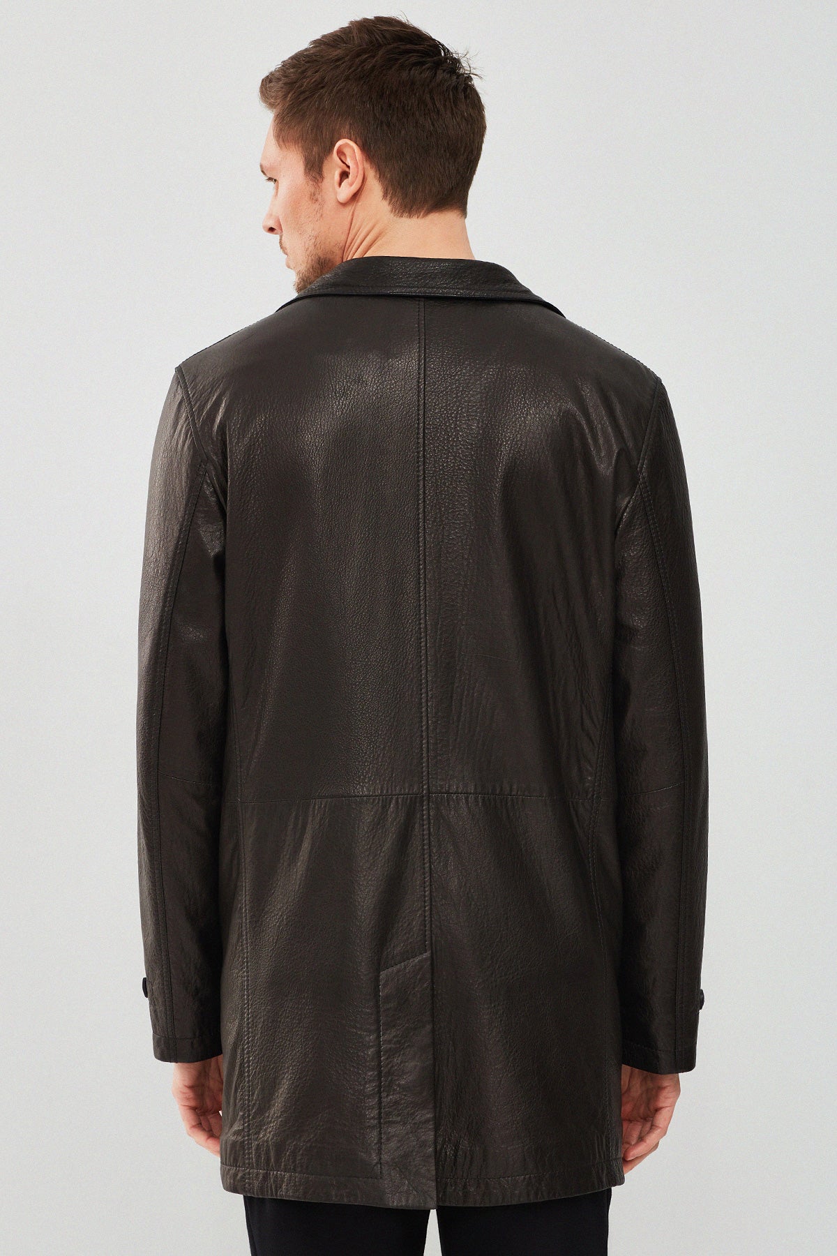 aria-label="Barella Erkek Siyah Yaka Kürklü Deri Trençkot"
