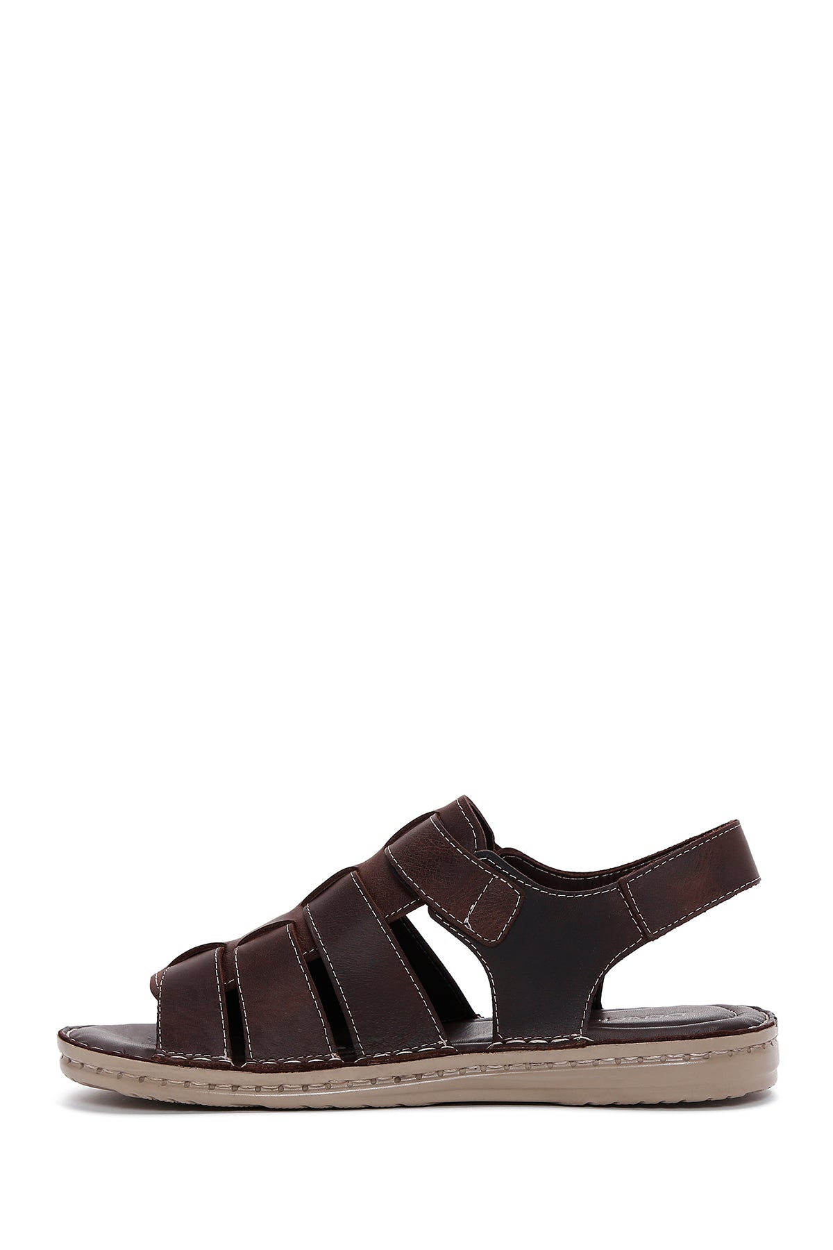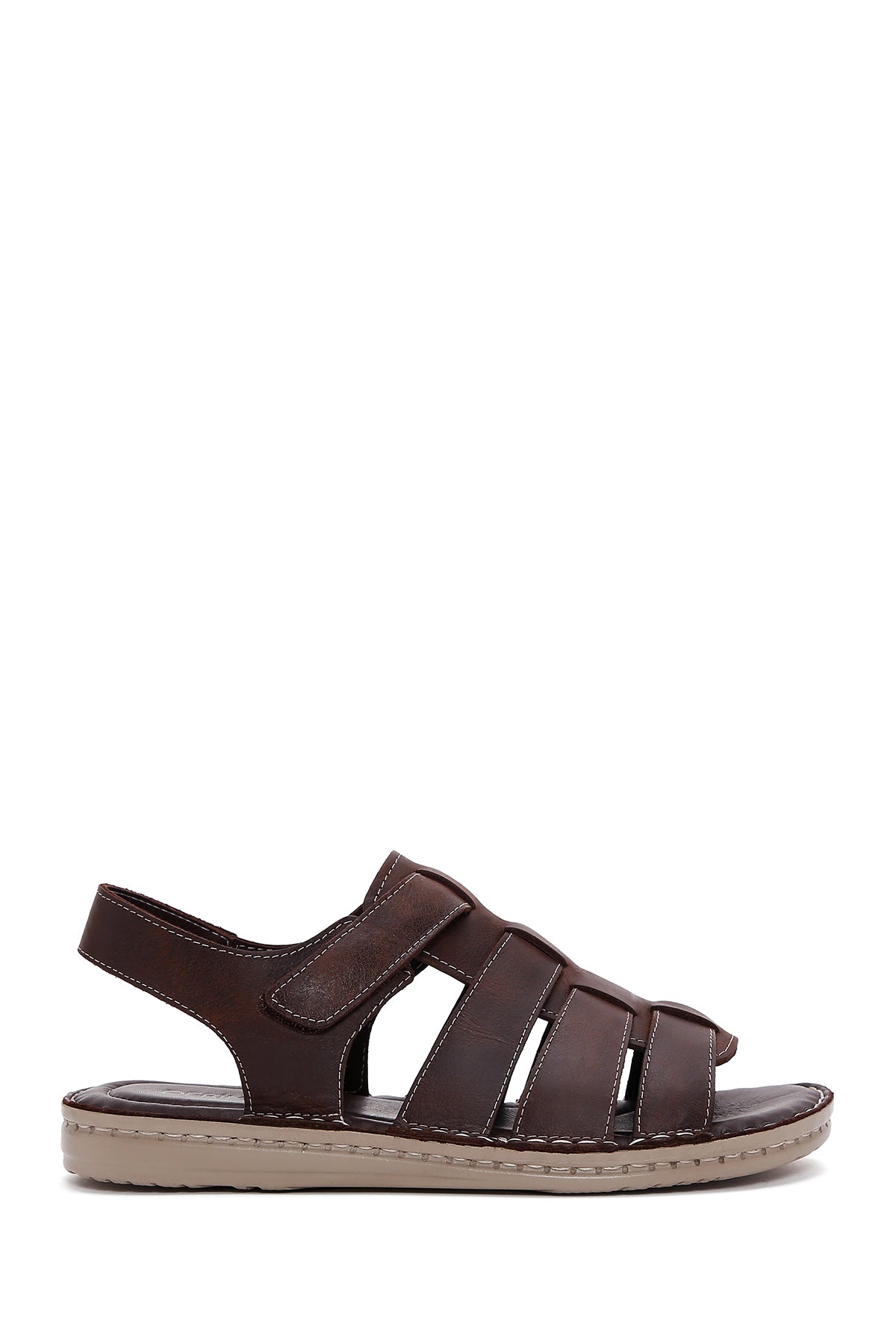 aria-label="Erkek Kahverengi Deri Casual Sandalet"