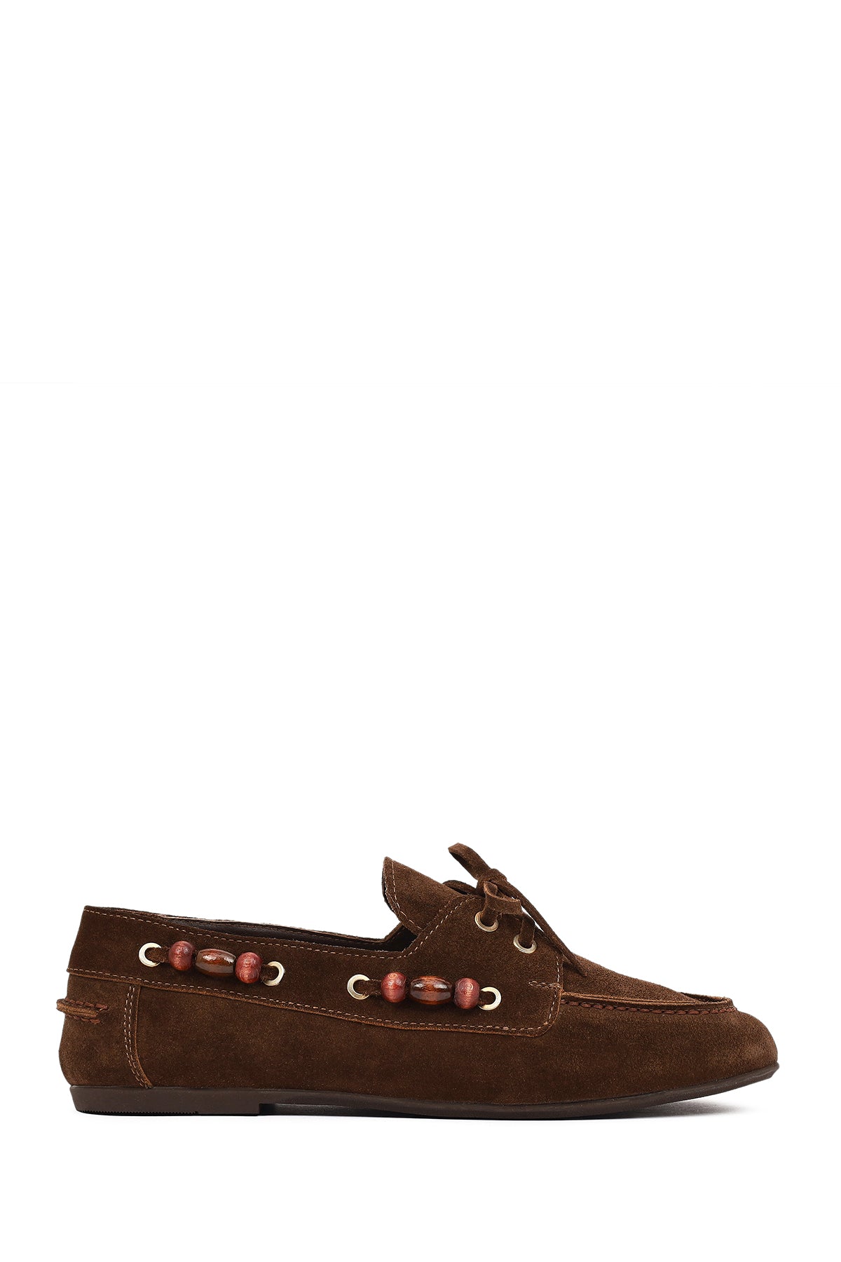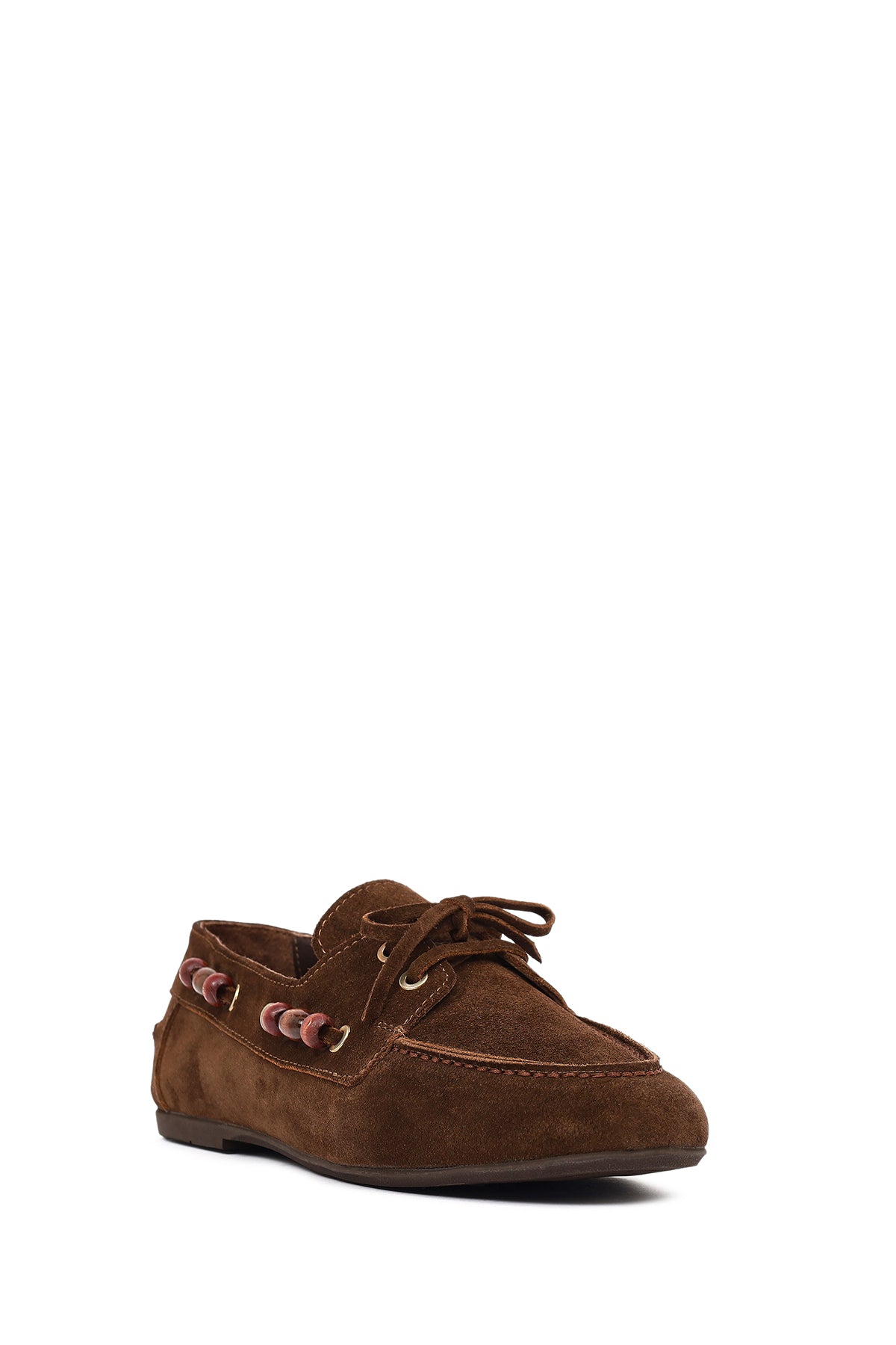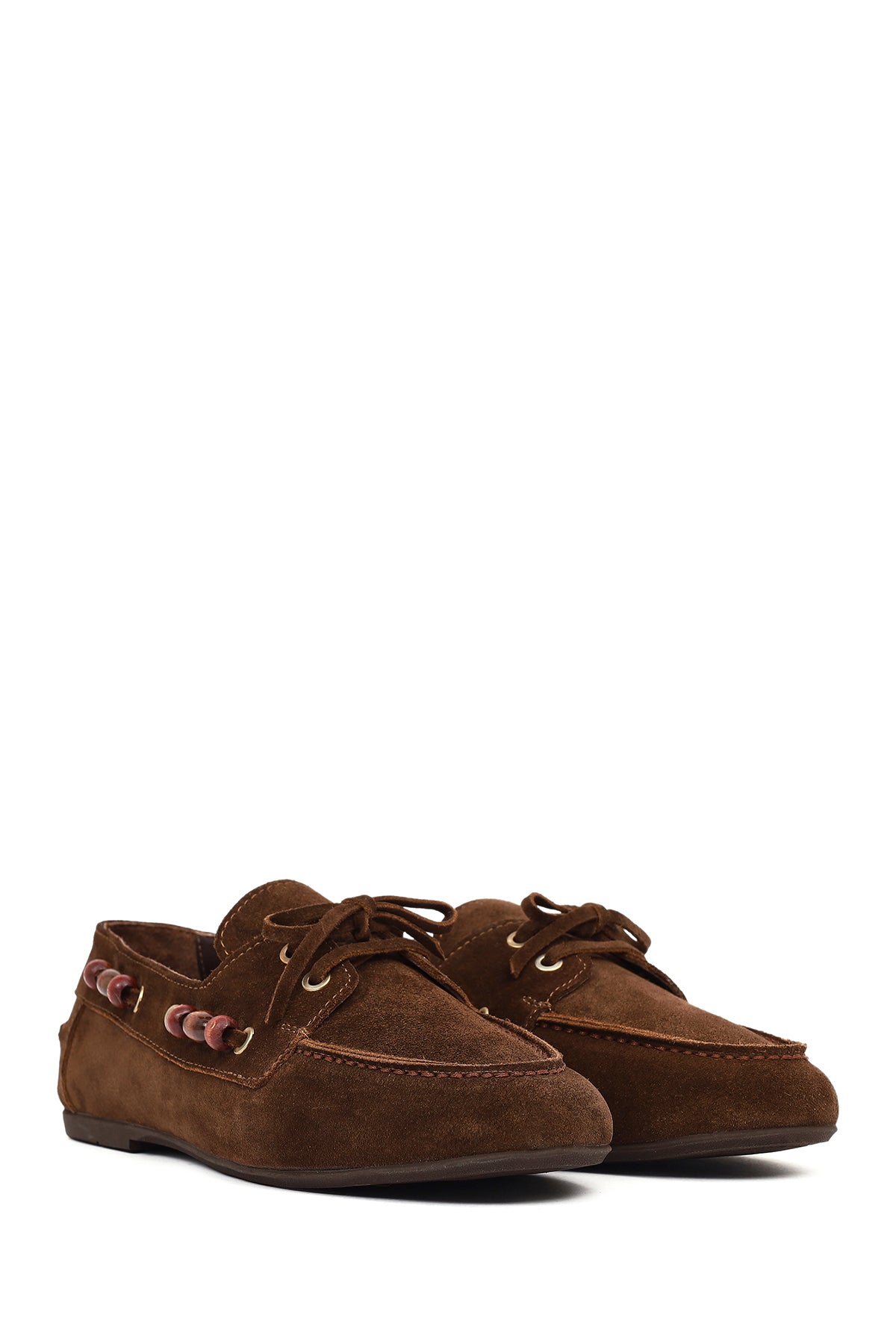 Kadın Kahverengi Aksesuar Detaylı Süet Deri Loafer