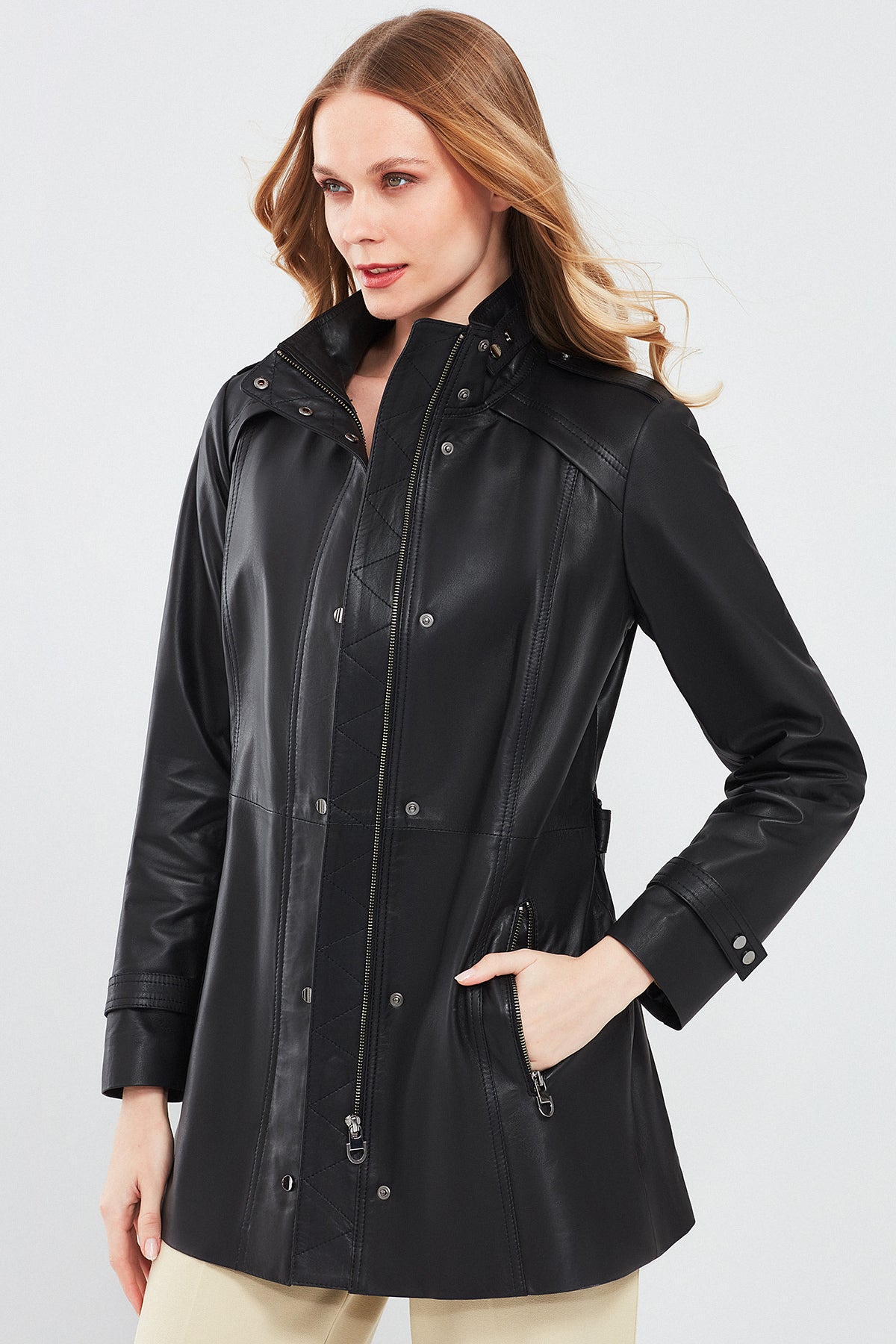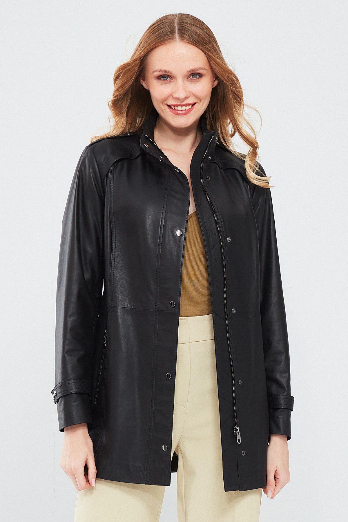 aria-label="Adriana Kadın Siyah Kruveze Yaka Deri Ceket"