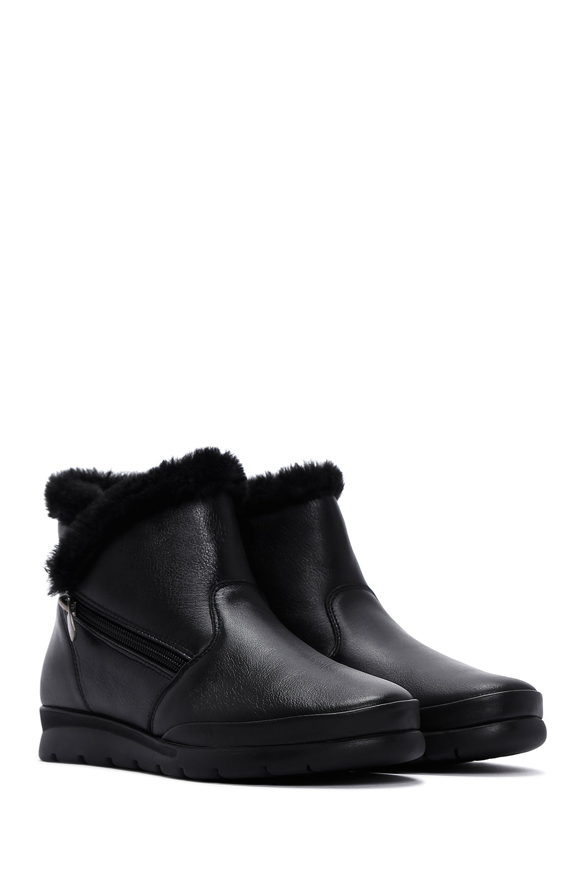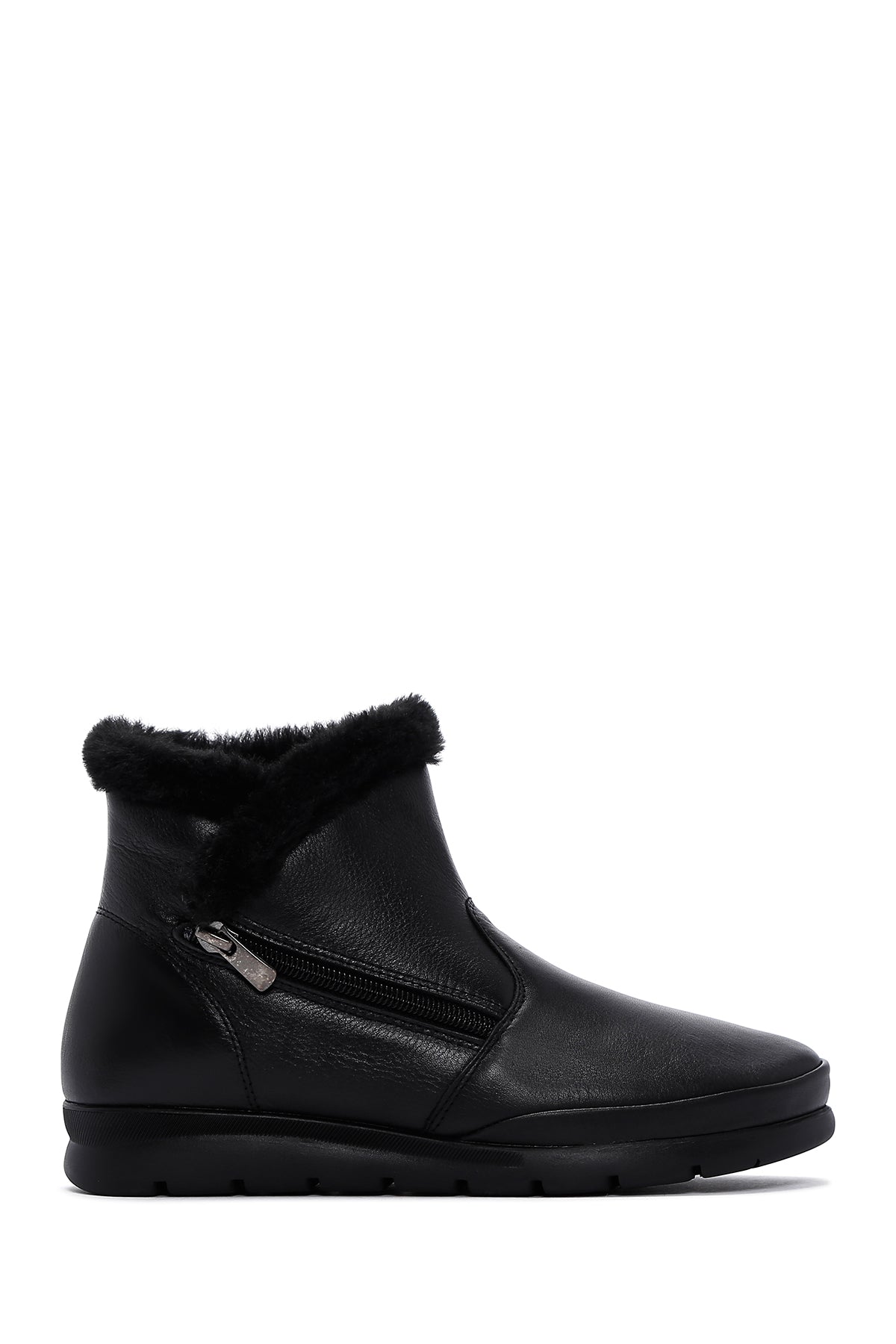 aria-label="Kadın Siyah Fermuarlı Kürk Detaylı Deri Comfort Bot"