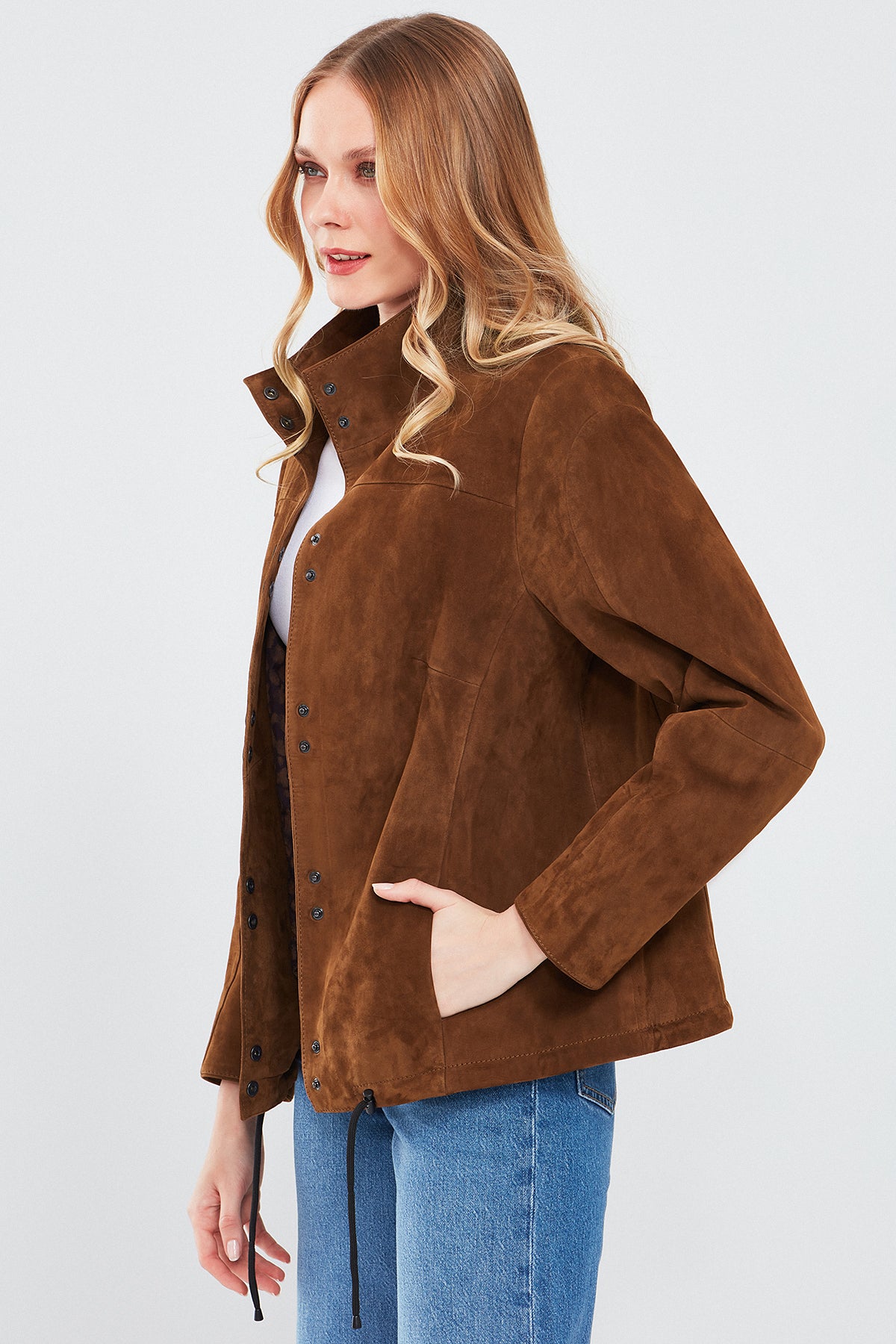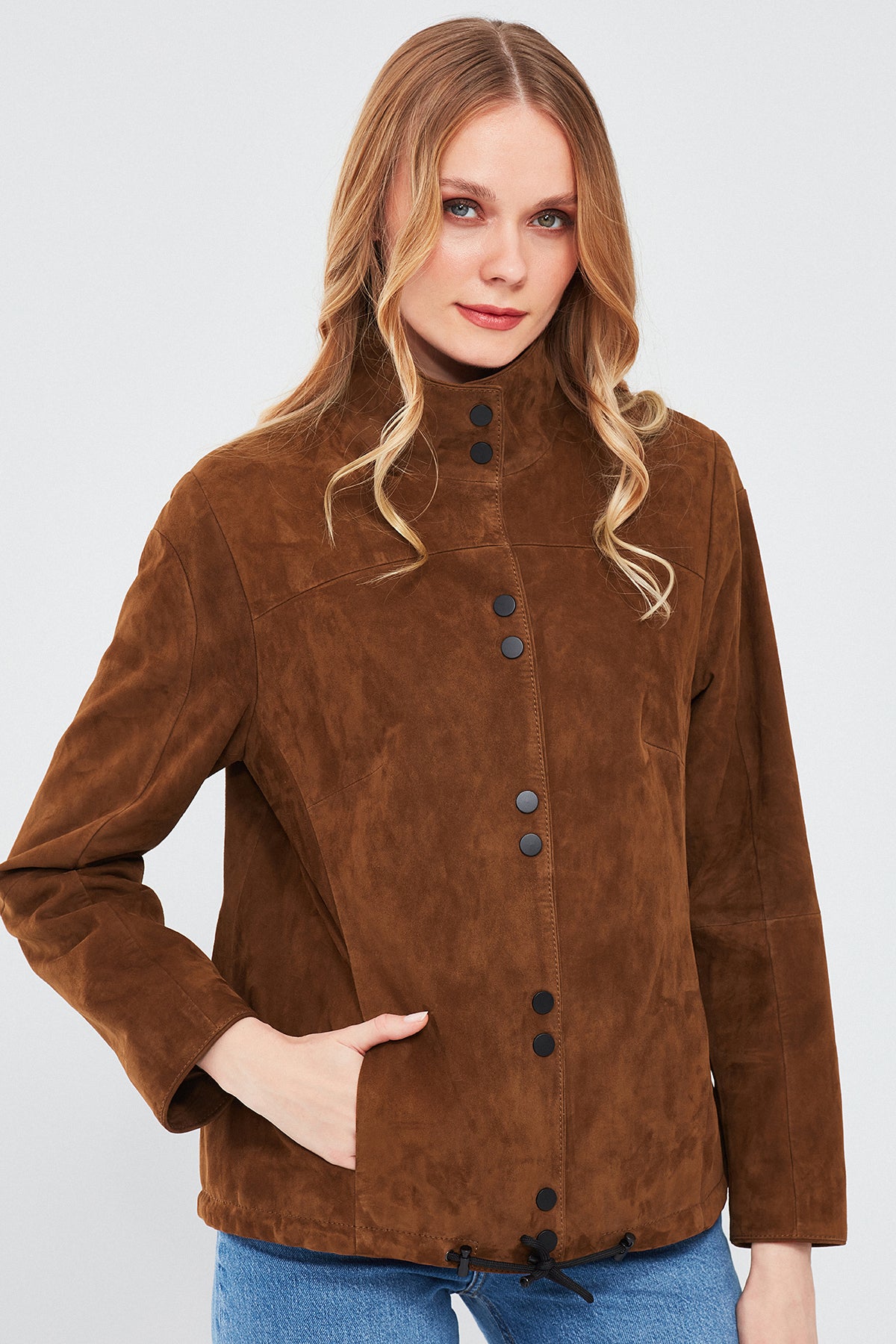Lavinia Kadın Kahverengi Kısa Süet Deri Ceket