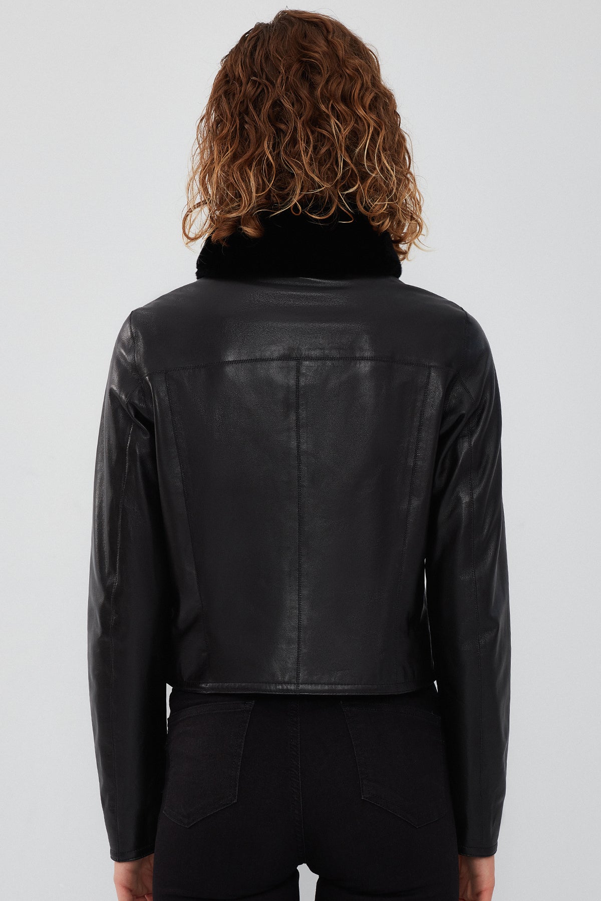 aria-label="Milano Kadın Siyah Kısa Deri Ceket"