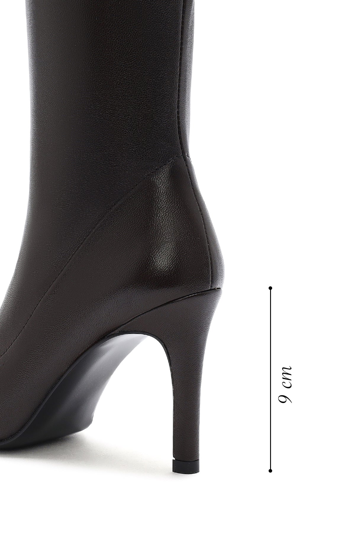 Kadın Siyah Fermuarlı İnce Topuklu Deri Bot