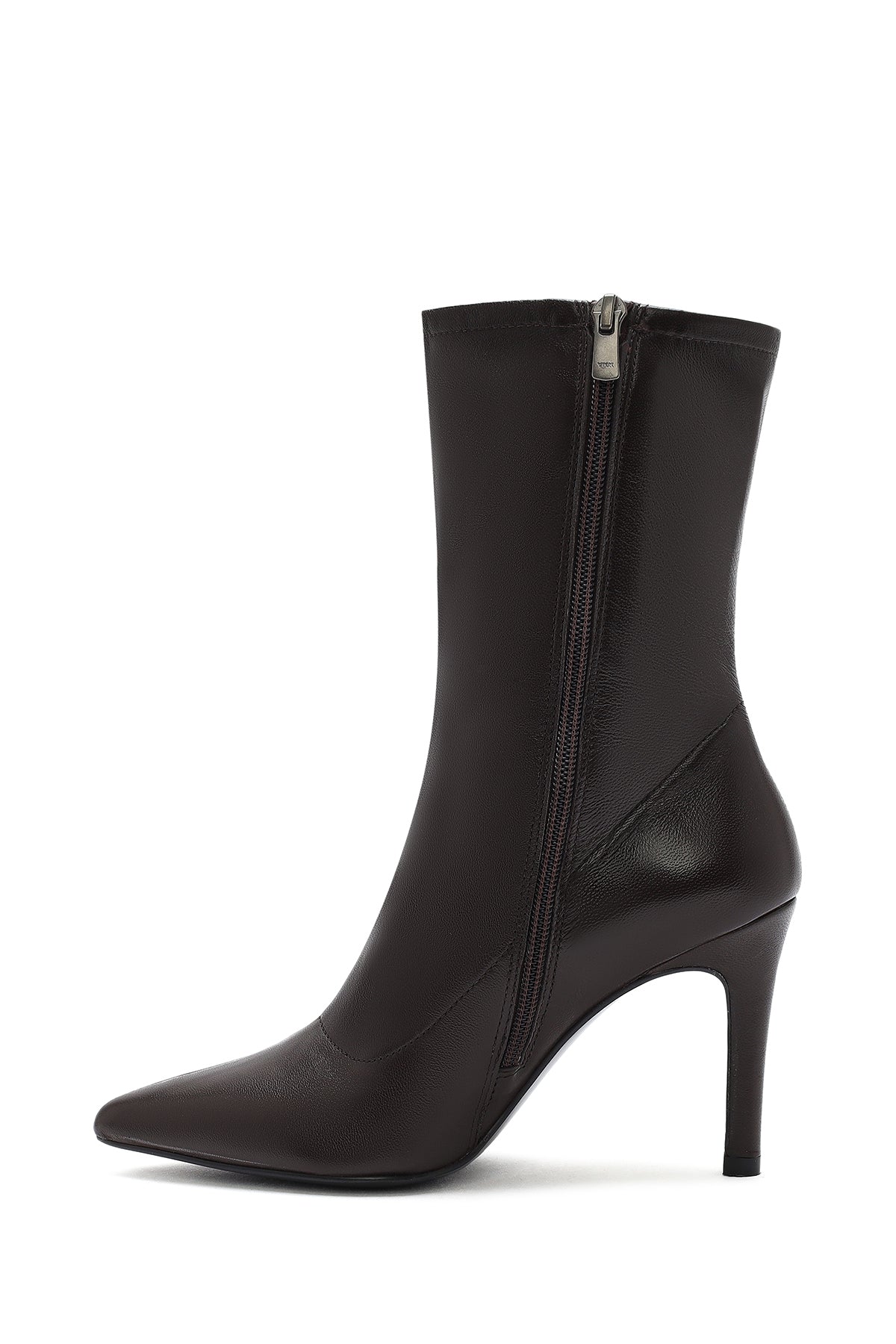 Kadın Kahverengi Fermuarlı Kalın Topuklu Deri Bot