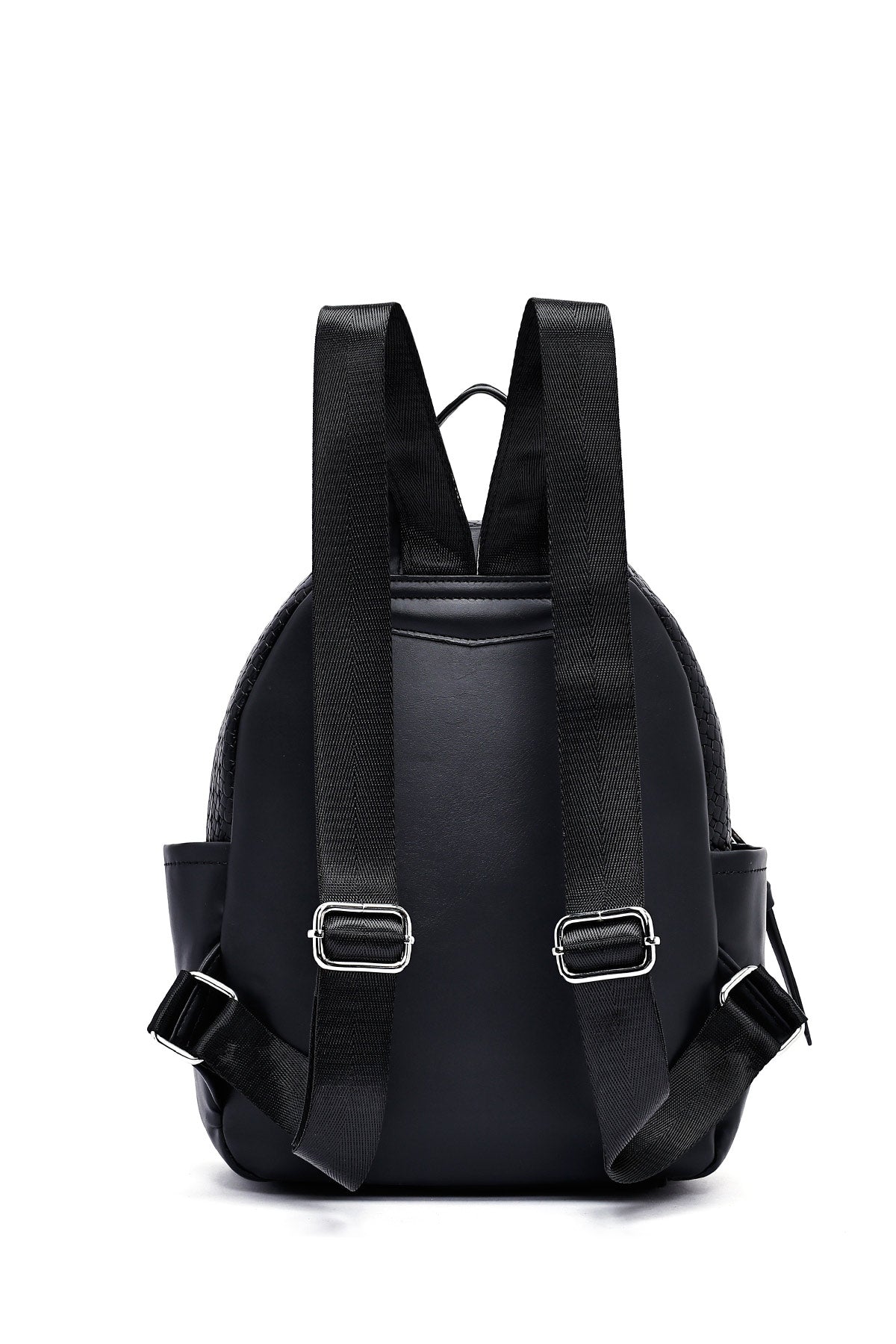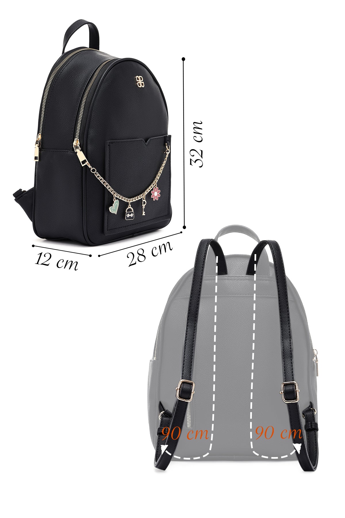 Kadın Siyah Baskılı Aksesuarlı Sırt Çantası