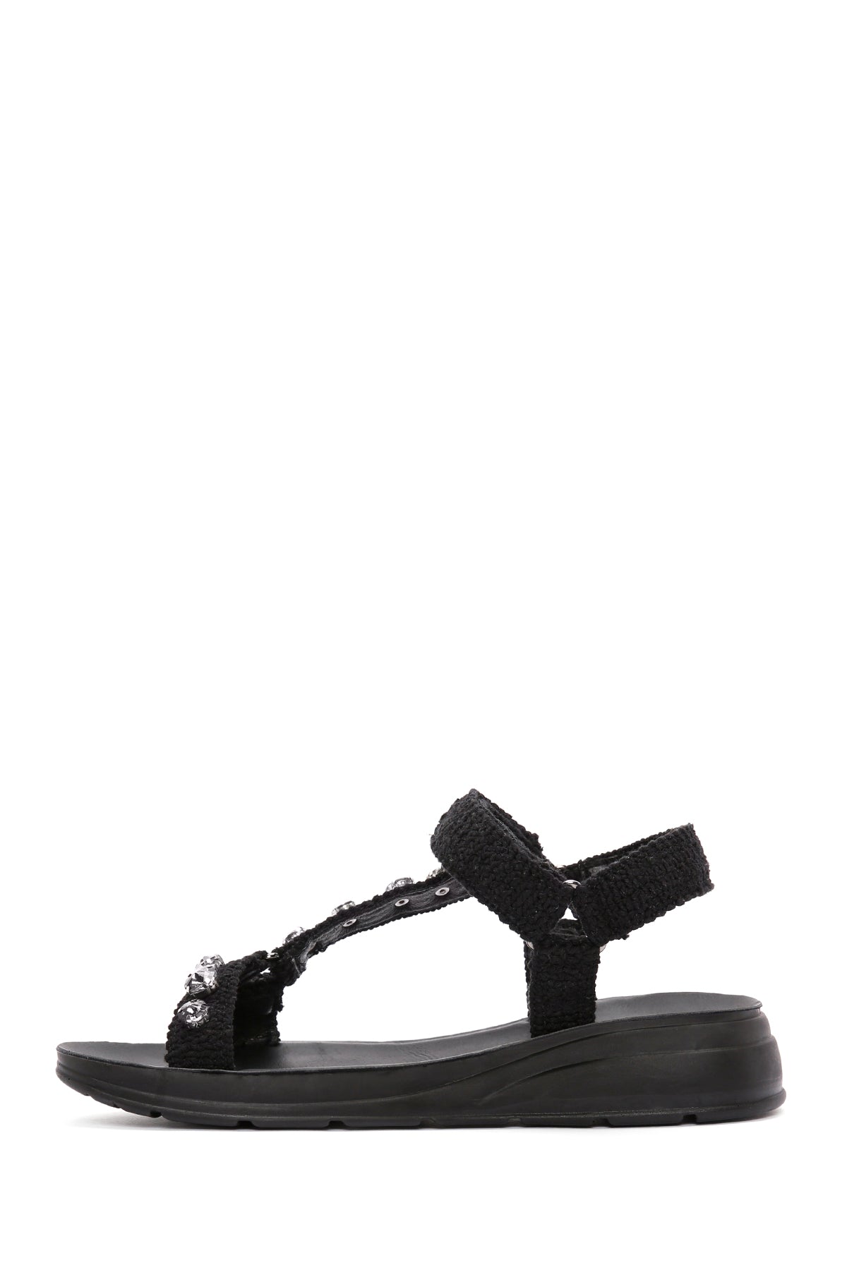 Kadın Siyah Kalın Tabanlı Taşlı Sandalet