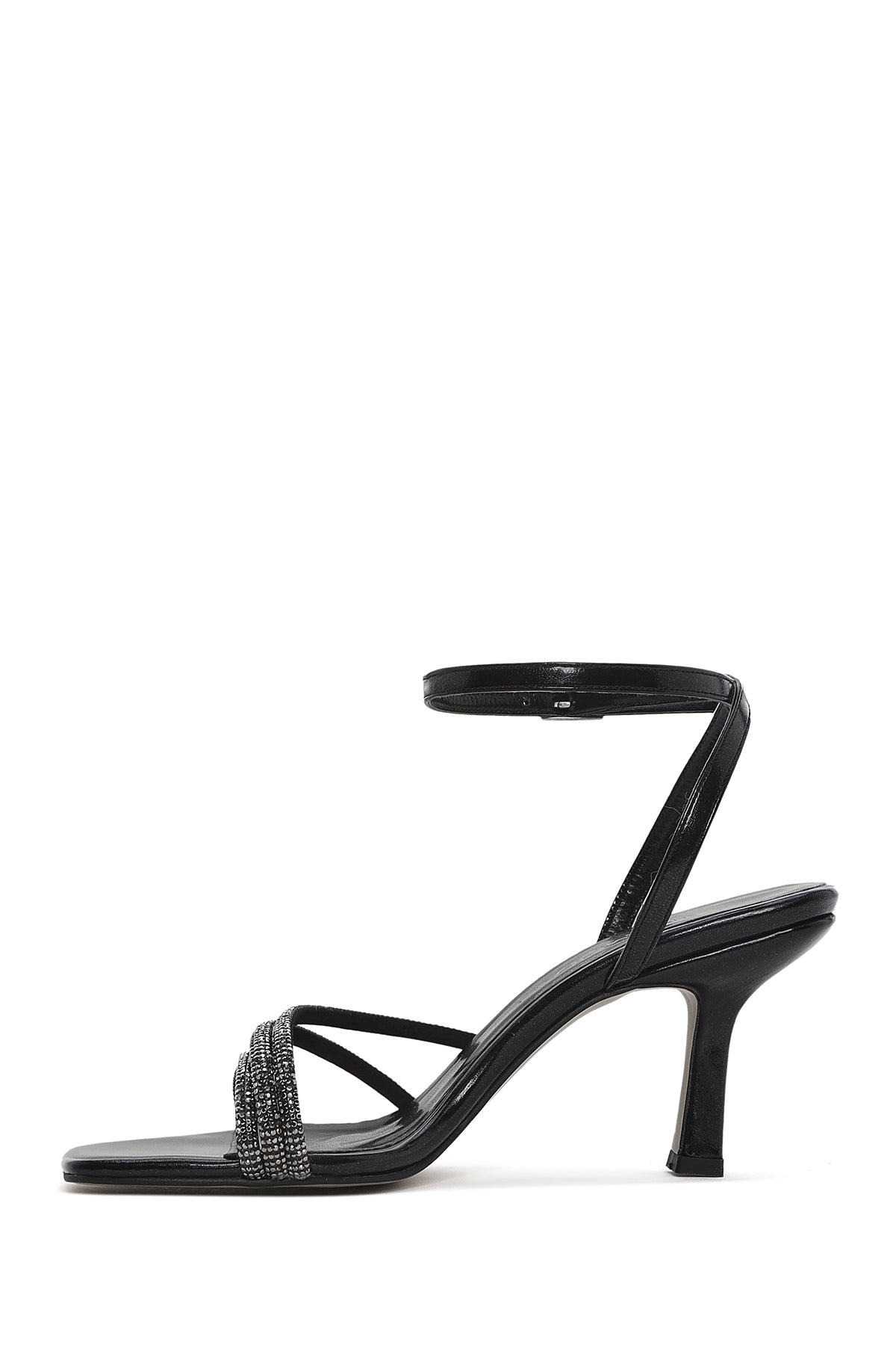 Kadın Siyah Bilekten Tokalı Taşlı Yüksek İnce Topuklu Sandalet
