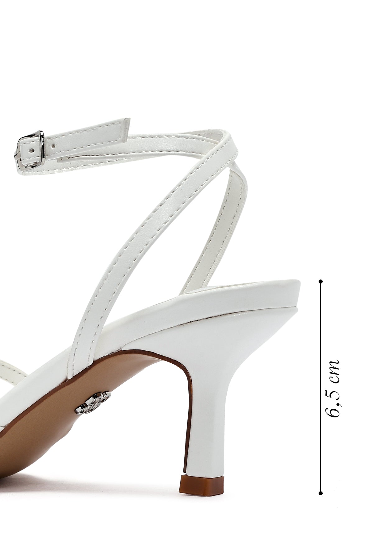 Kadın Beyaz Bilekten Tokalı Kısa Kalın Topuklu Sandalet