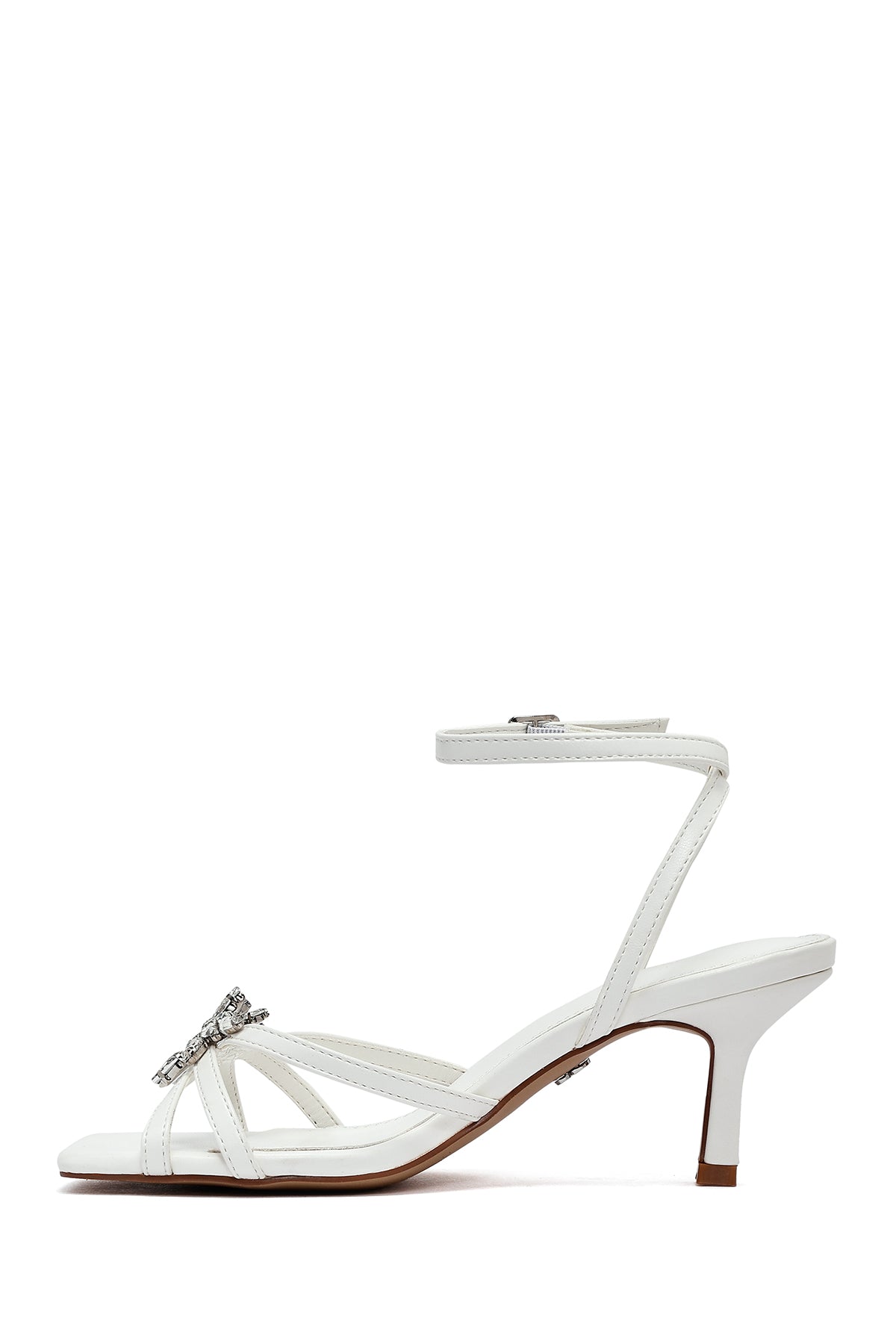Kadın Gümüş Bilekten Bantlı Taşlı İnce Topuklu Sandalet