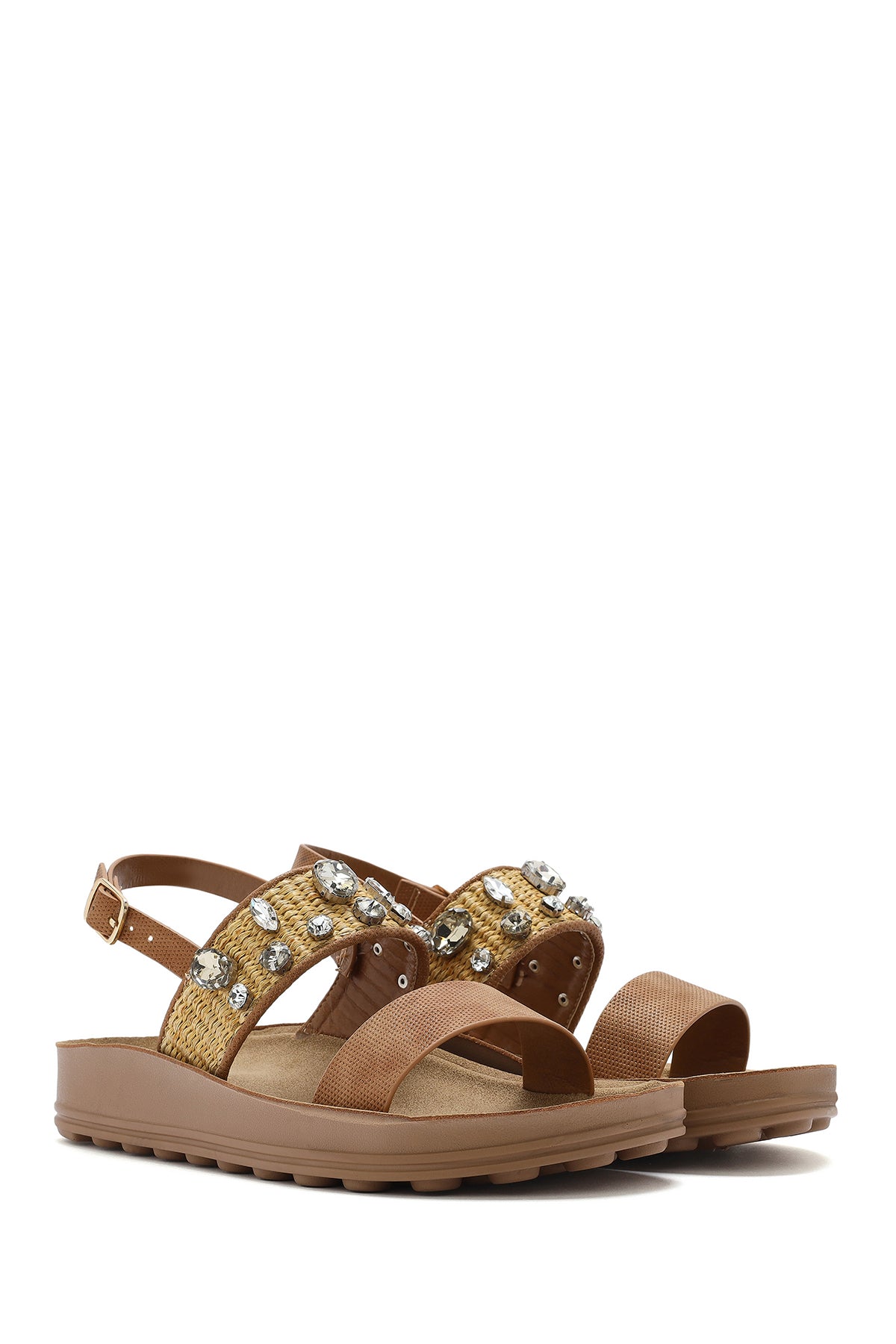 Kadın Bej Parmak Arası Taşlı Sandalet