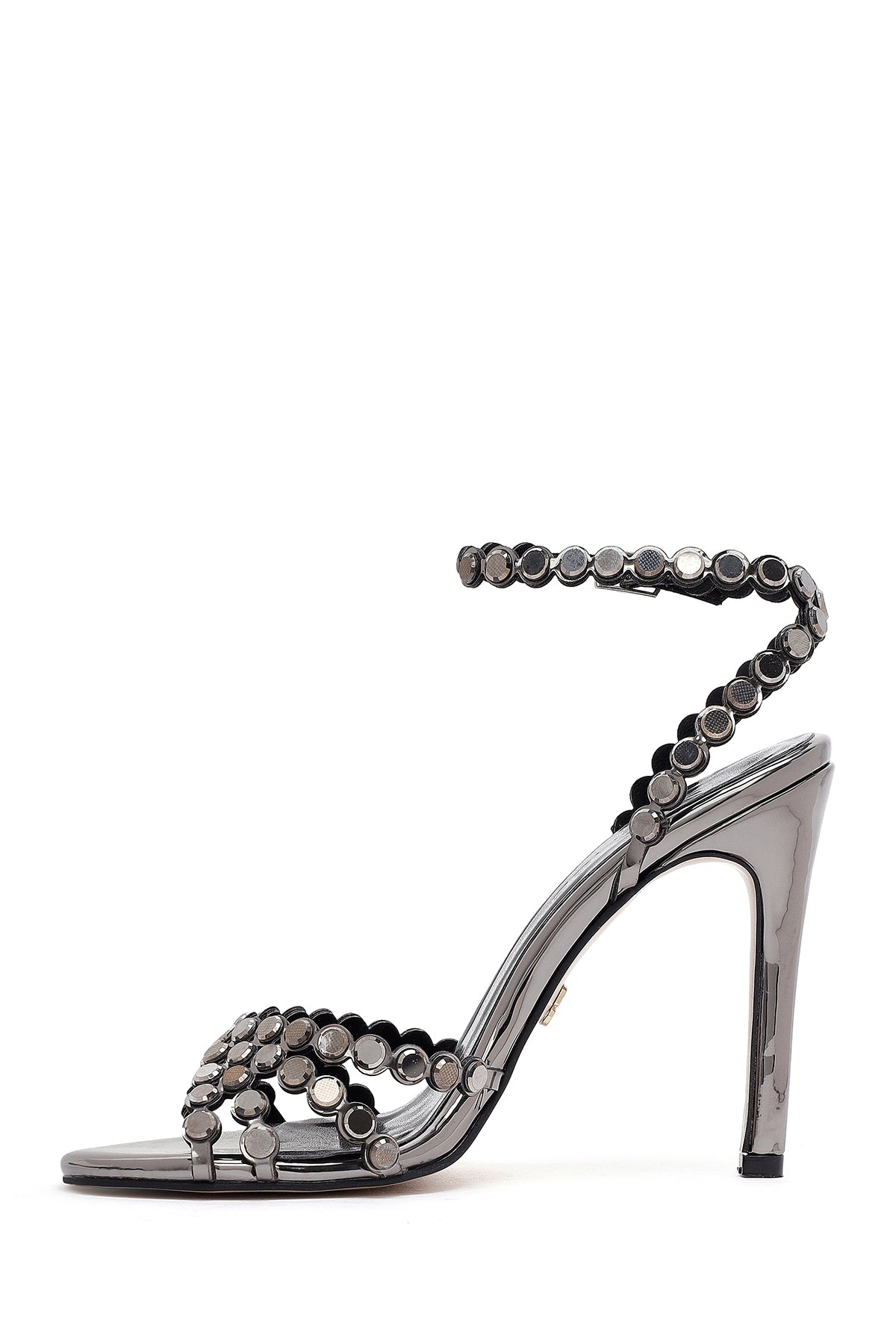 Kadın Siyah Bilekten Tokalı Taşlı Yüksek İnce Topuklu Süet Deri Ayakkabı