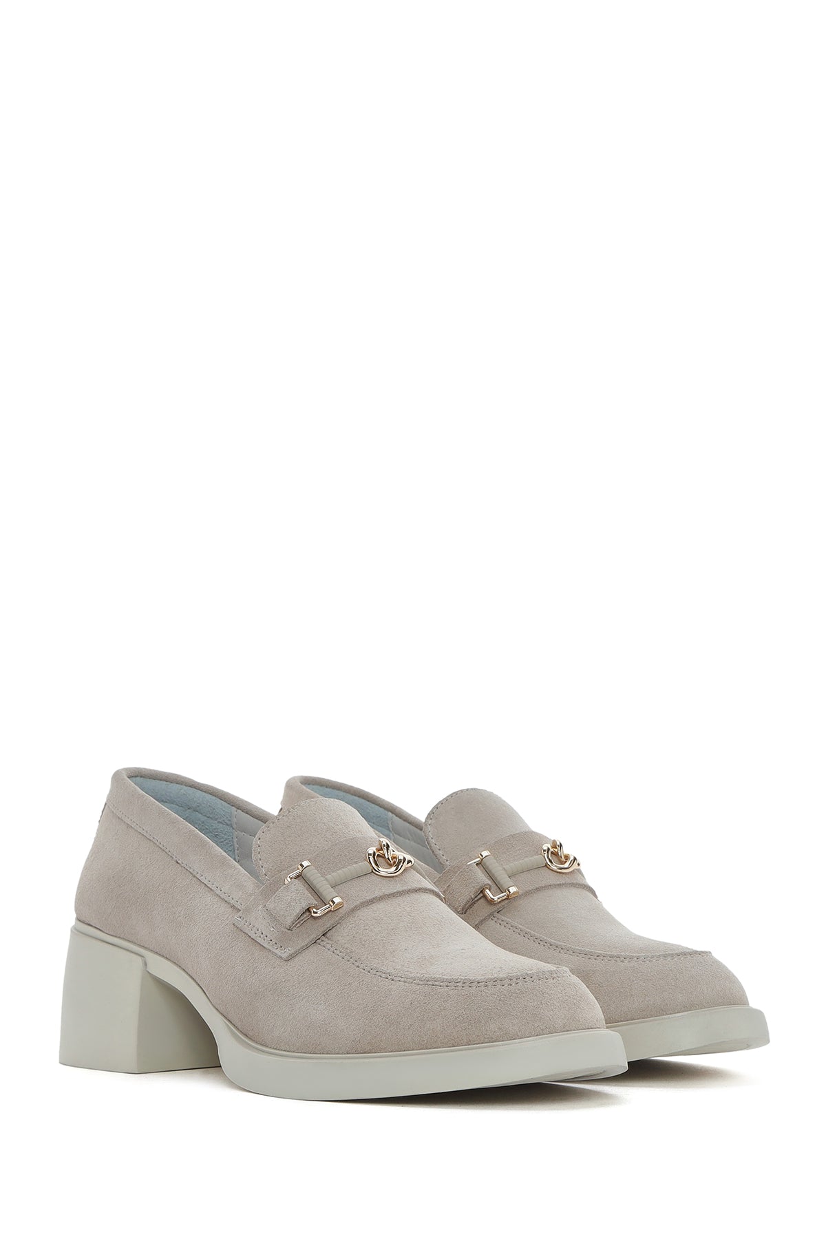 aria-label="Kadın Bej Dolgu Topuklu Süet Deri Comfort Loafer"