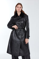 Brenda(Plus) Women's Black Leather Fur Coat