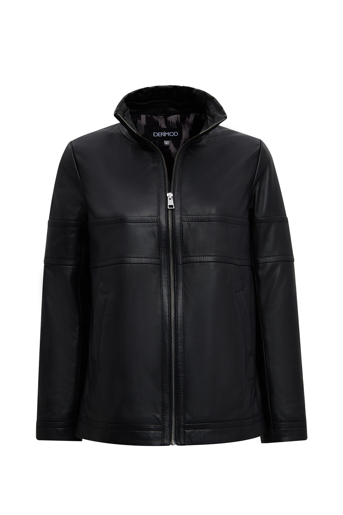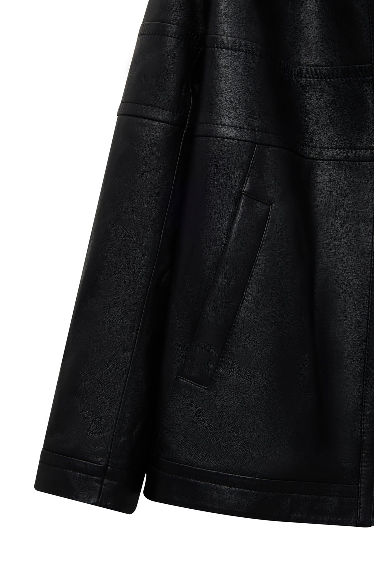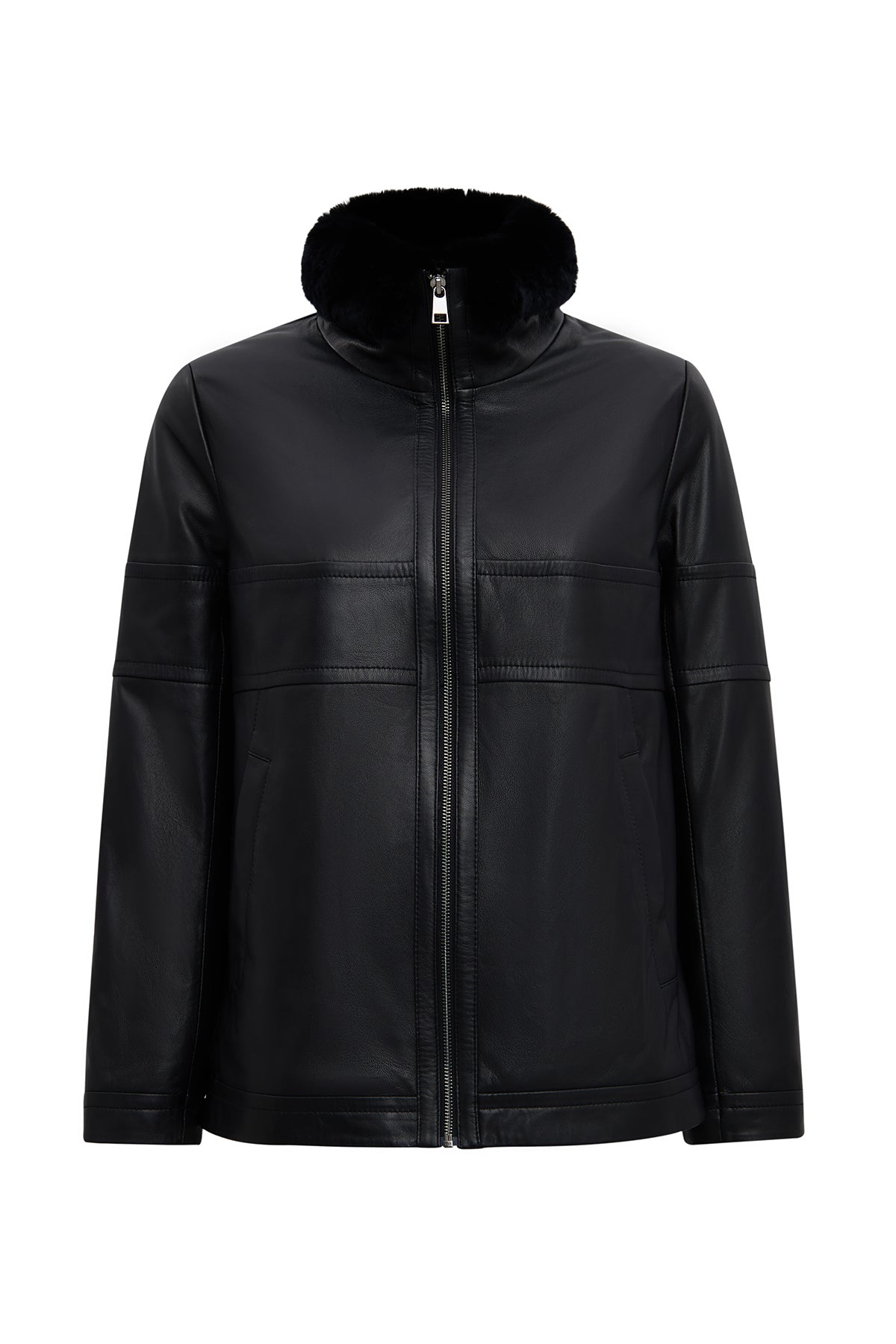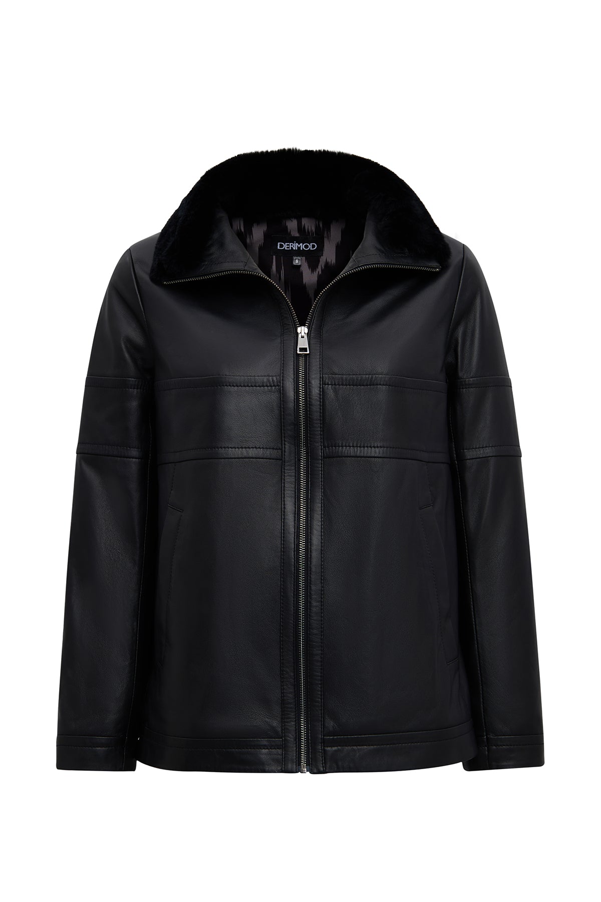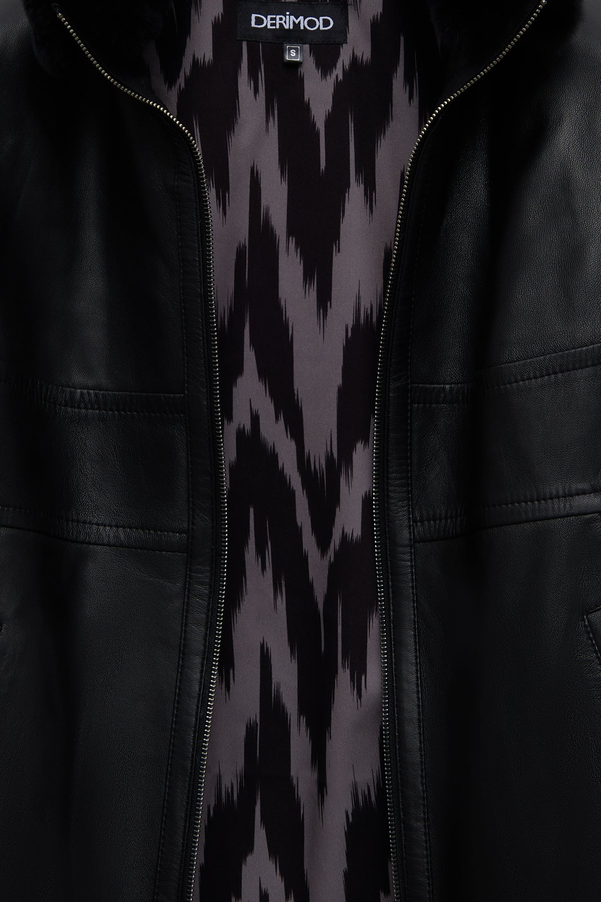 Diana Kadın Siyah Yaka Kürklü Oversize Deri Mont