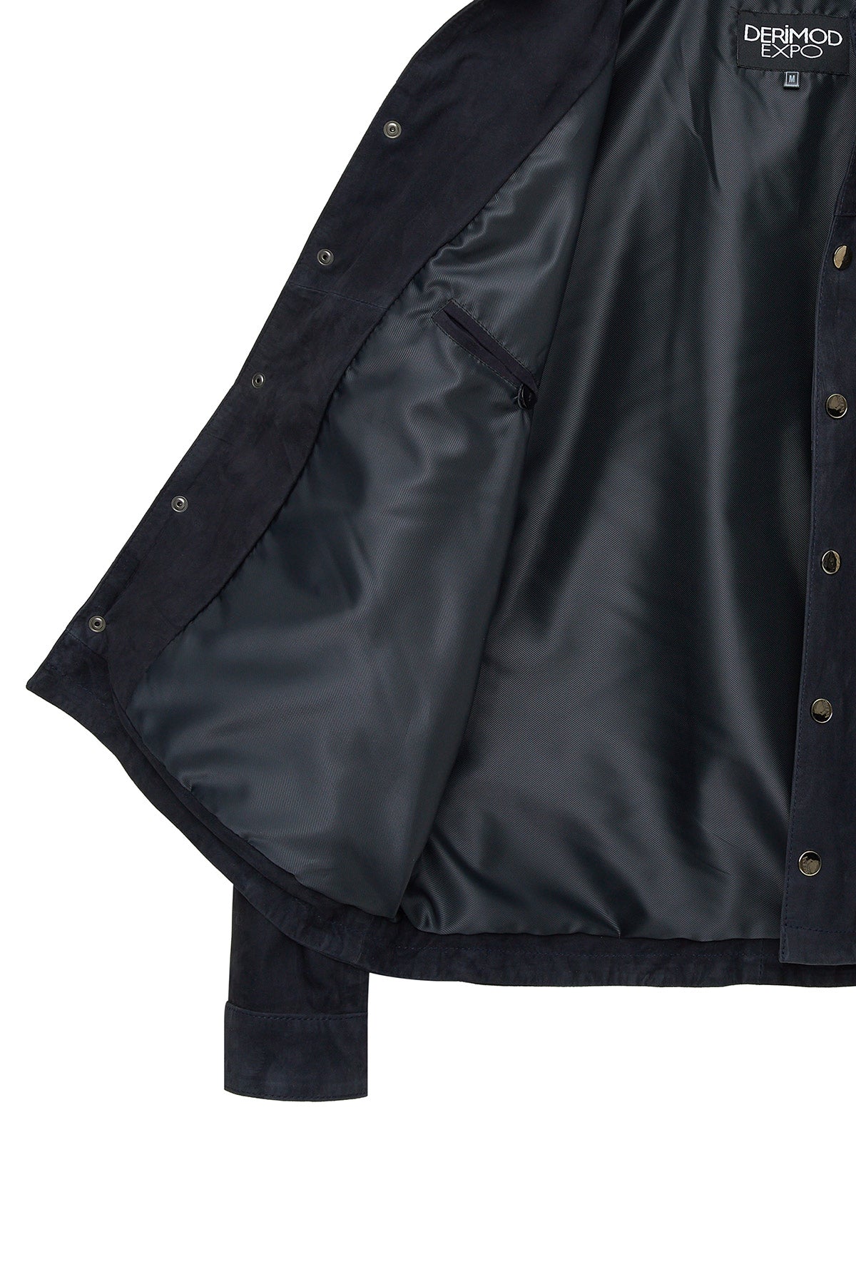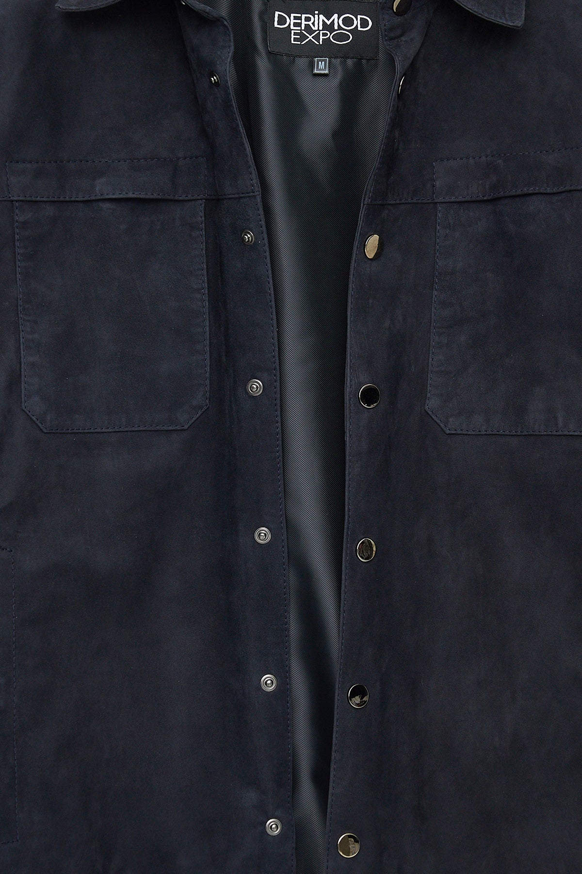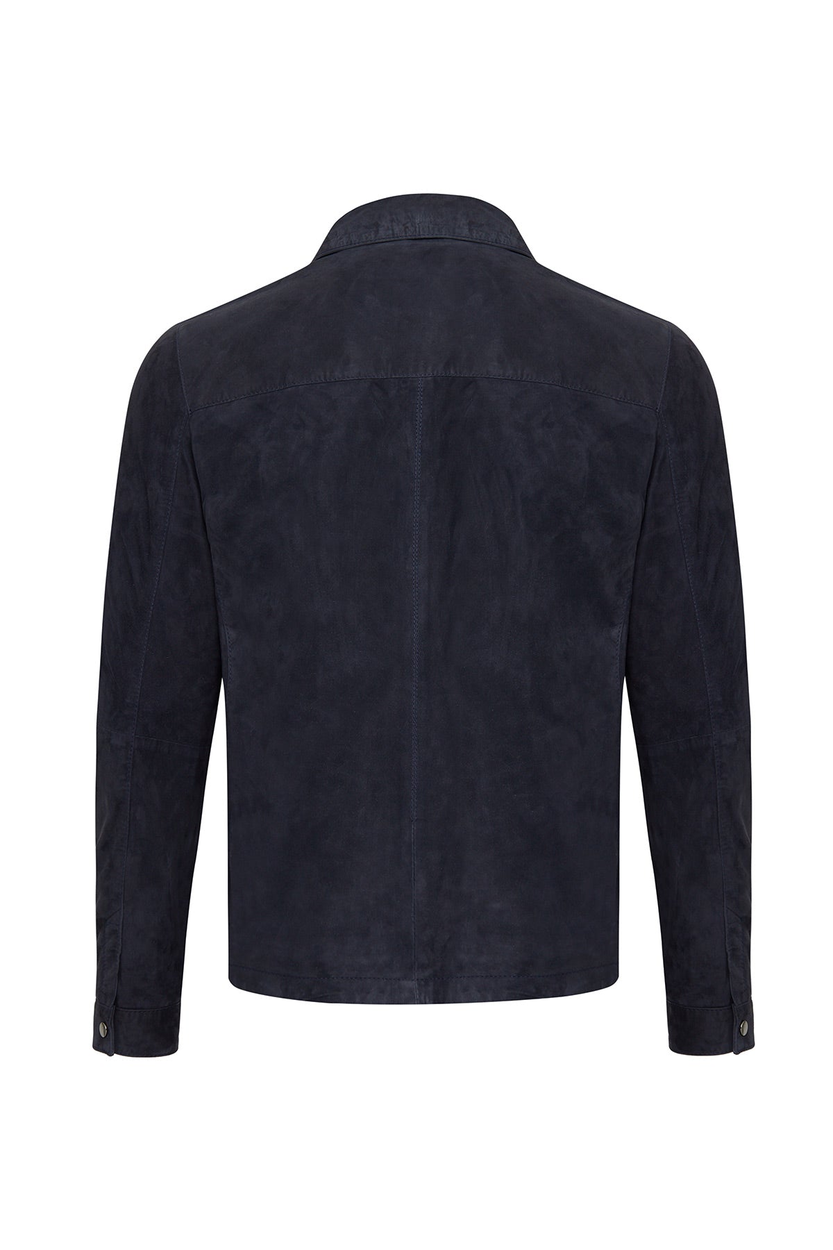 Enzo Men's Navy Shirt Collar Suede Leather Jacket