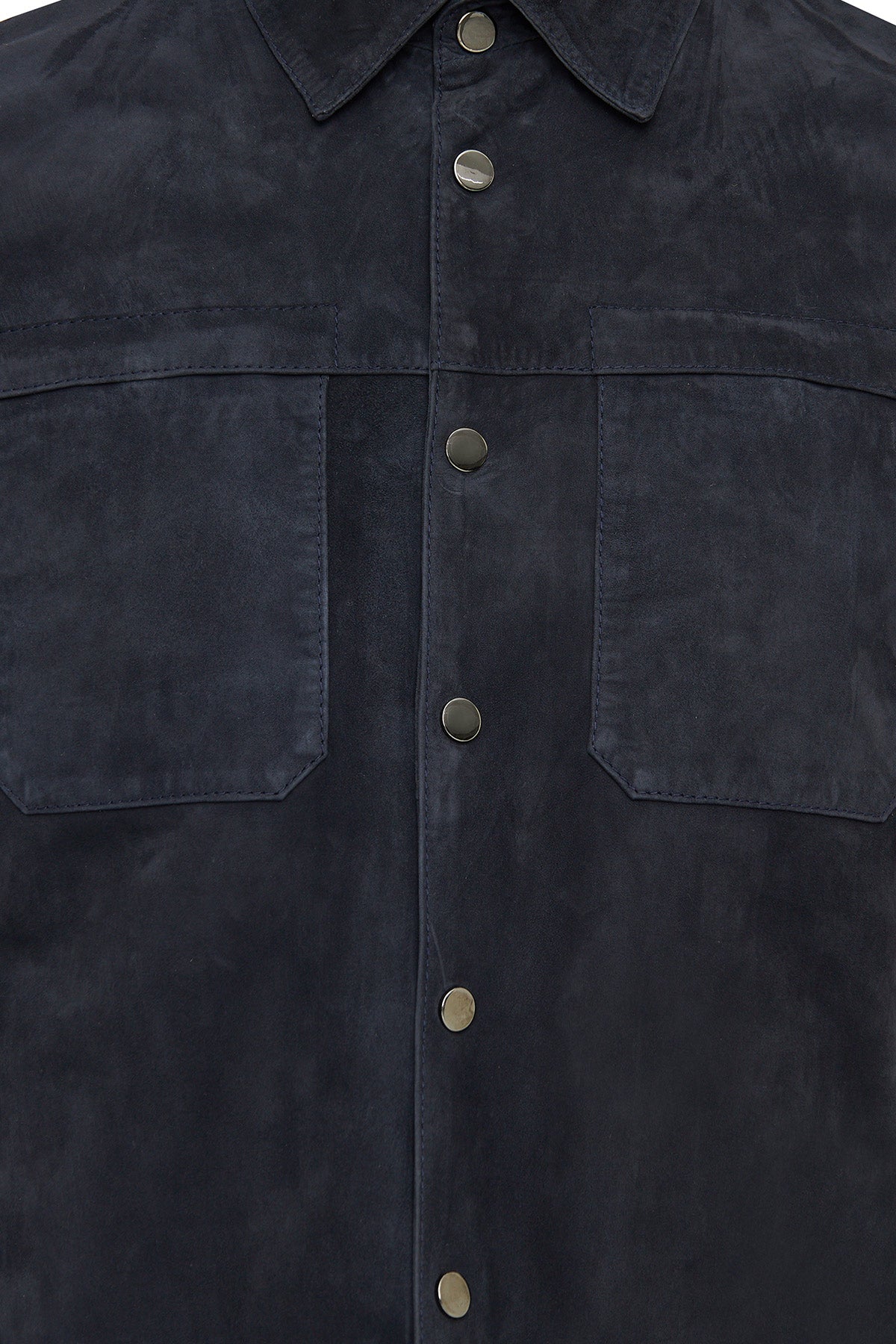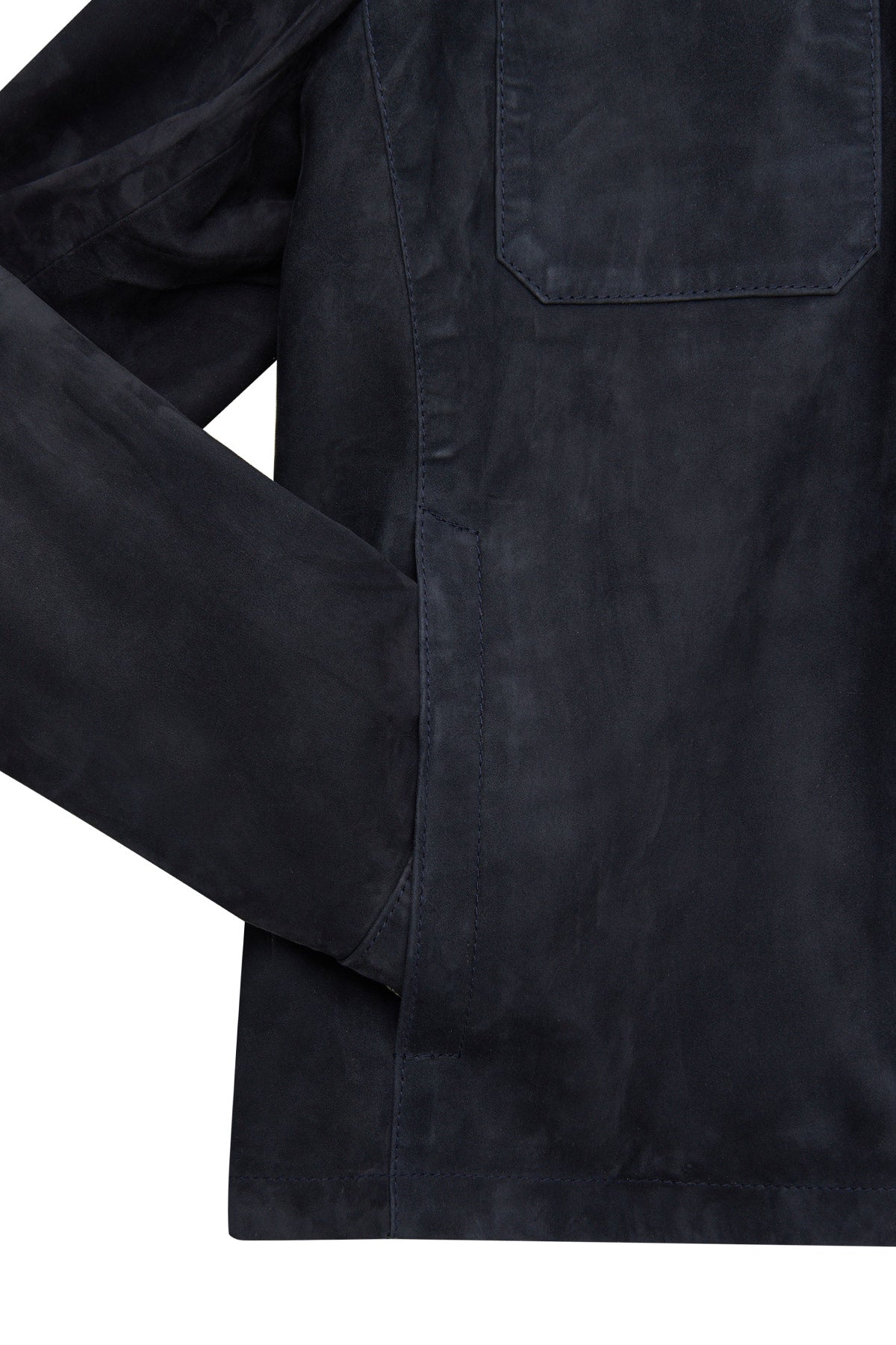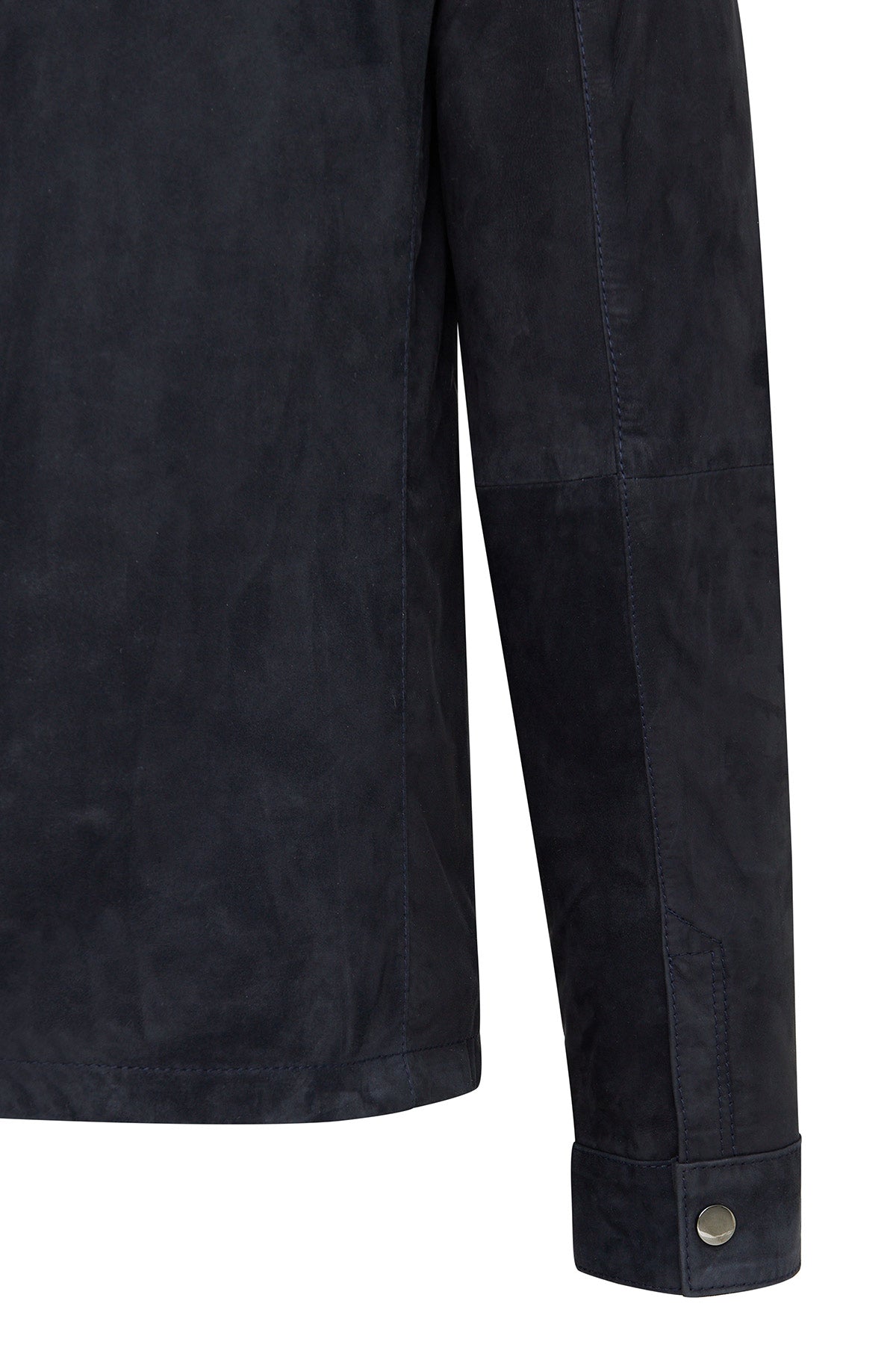 Enzo Men's Navy Shirt Collar Suede Leather Jacket