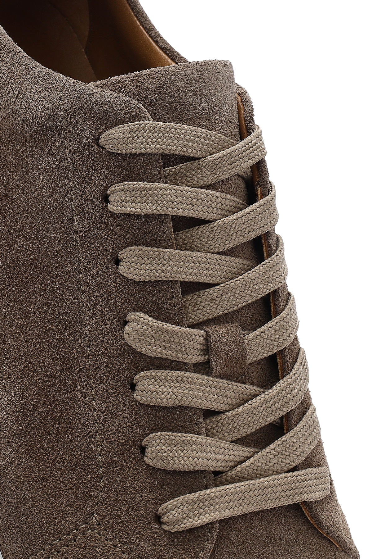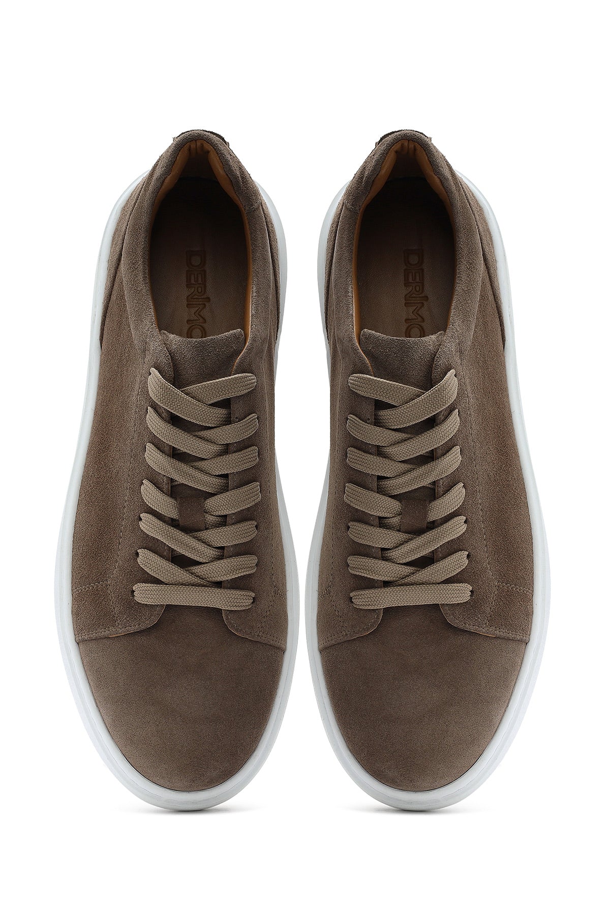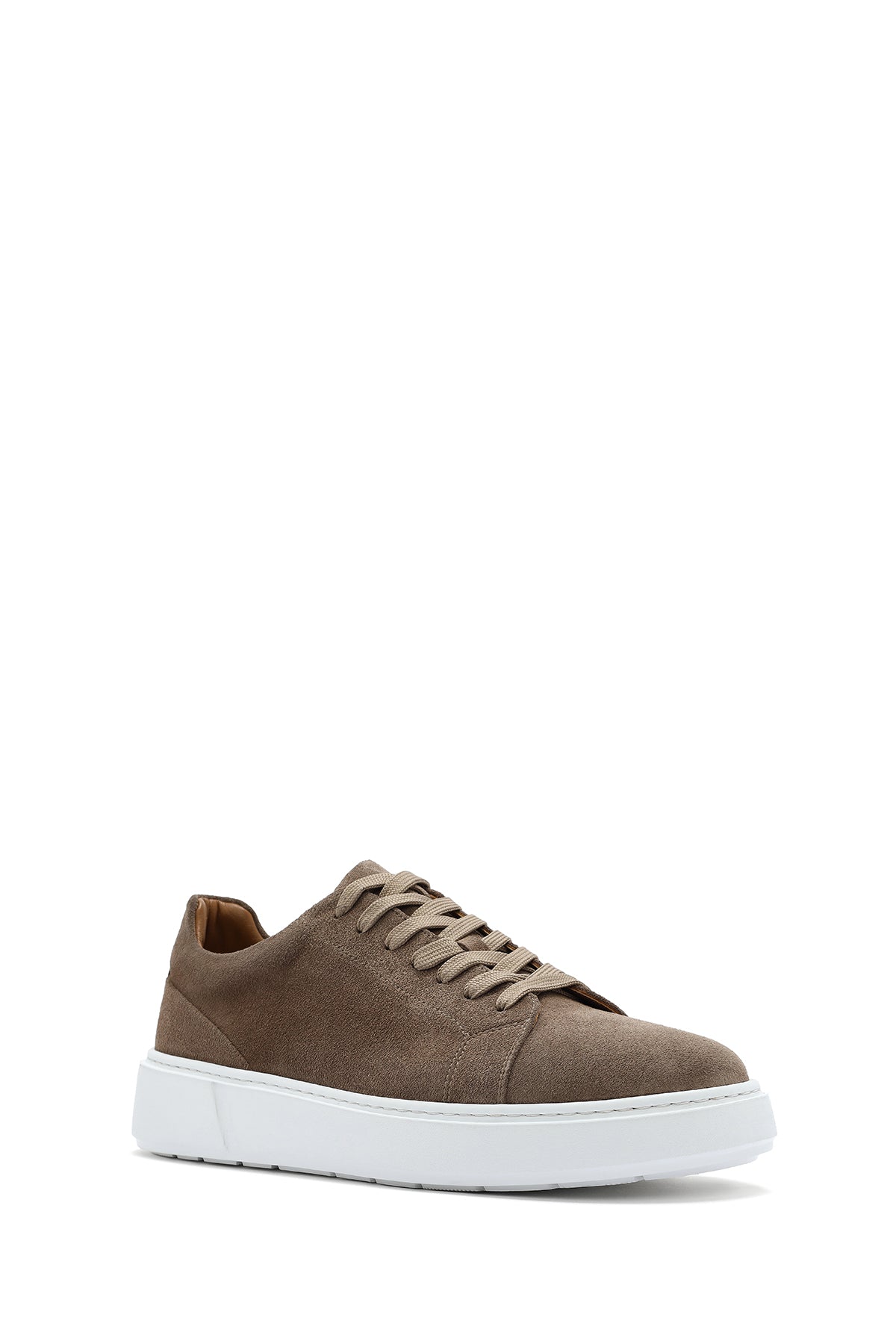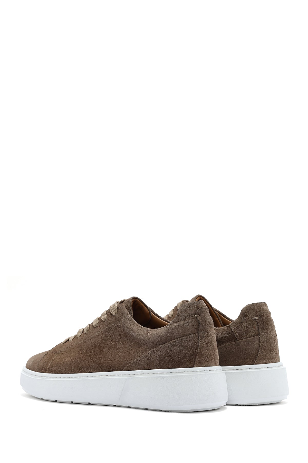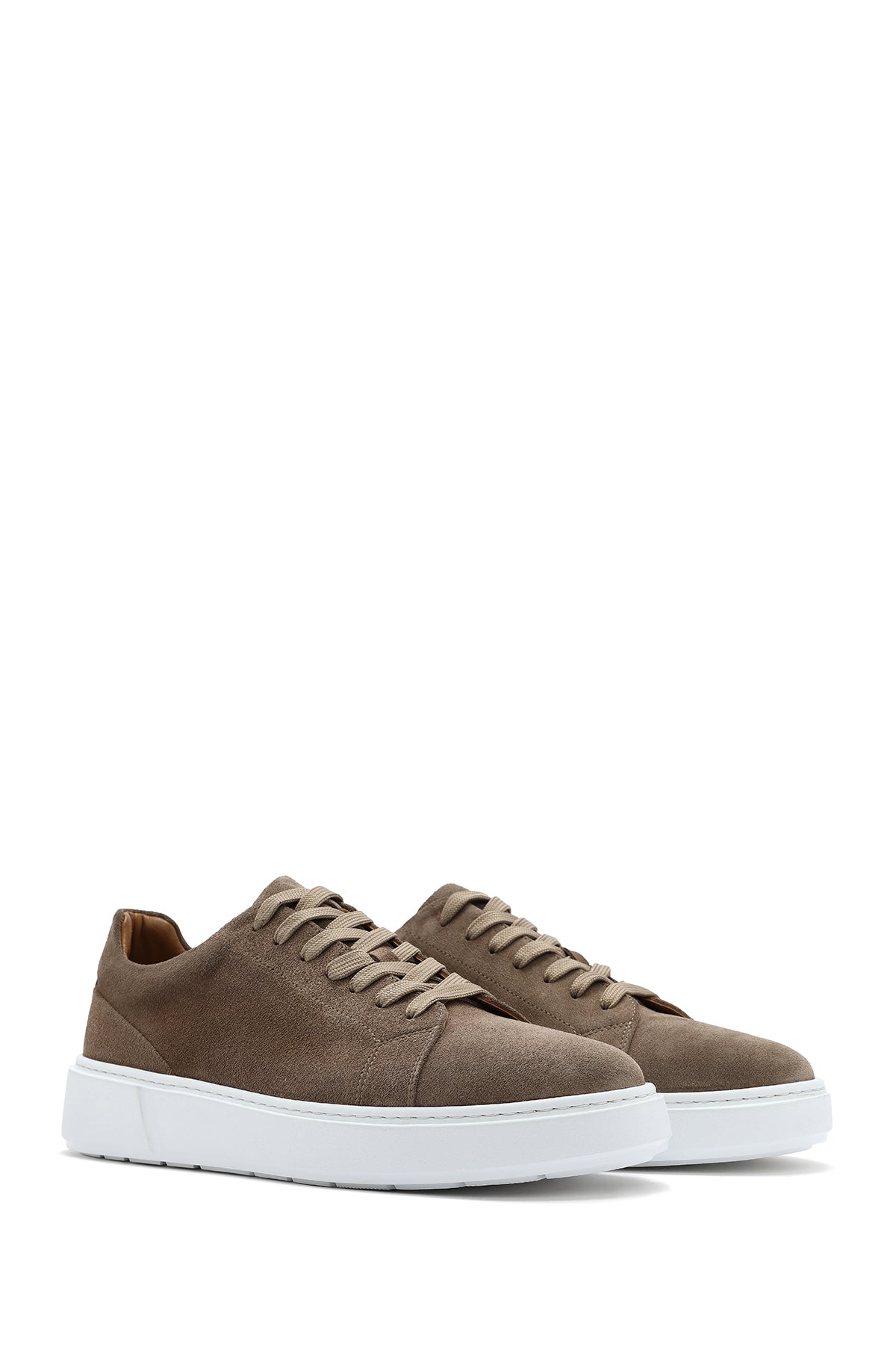 Erkek Bej Bağcıklı Kalın Tabanlı Süet Deri Sneaker