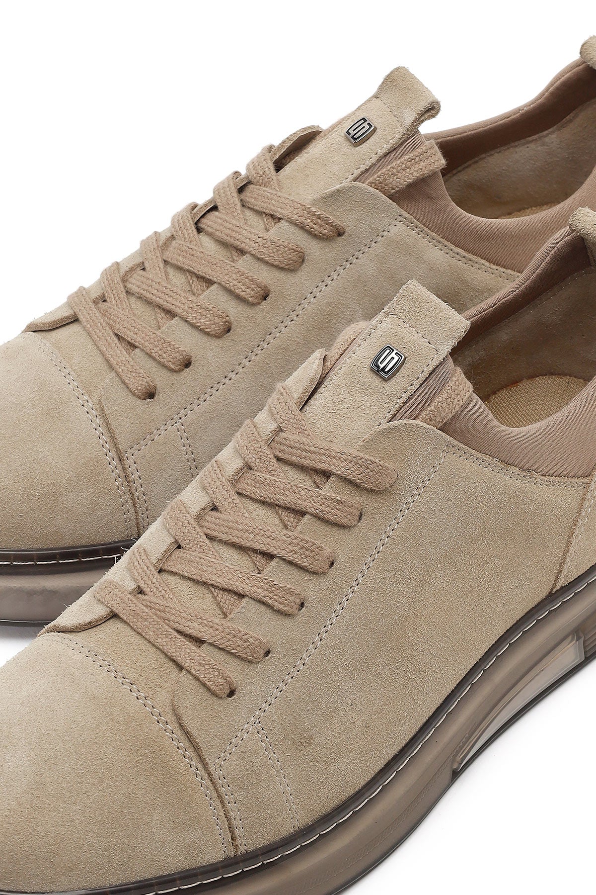 Erkek Bej Bağcıklı Kalın Tabanlı Süet Deri Sneaker