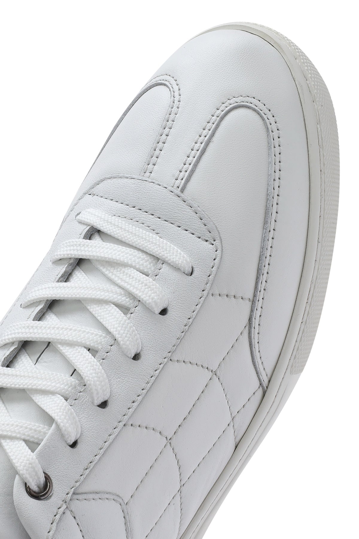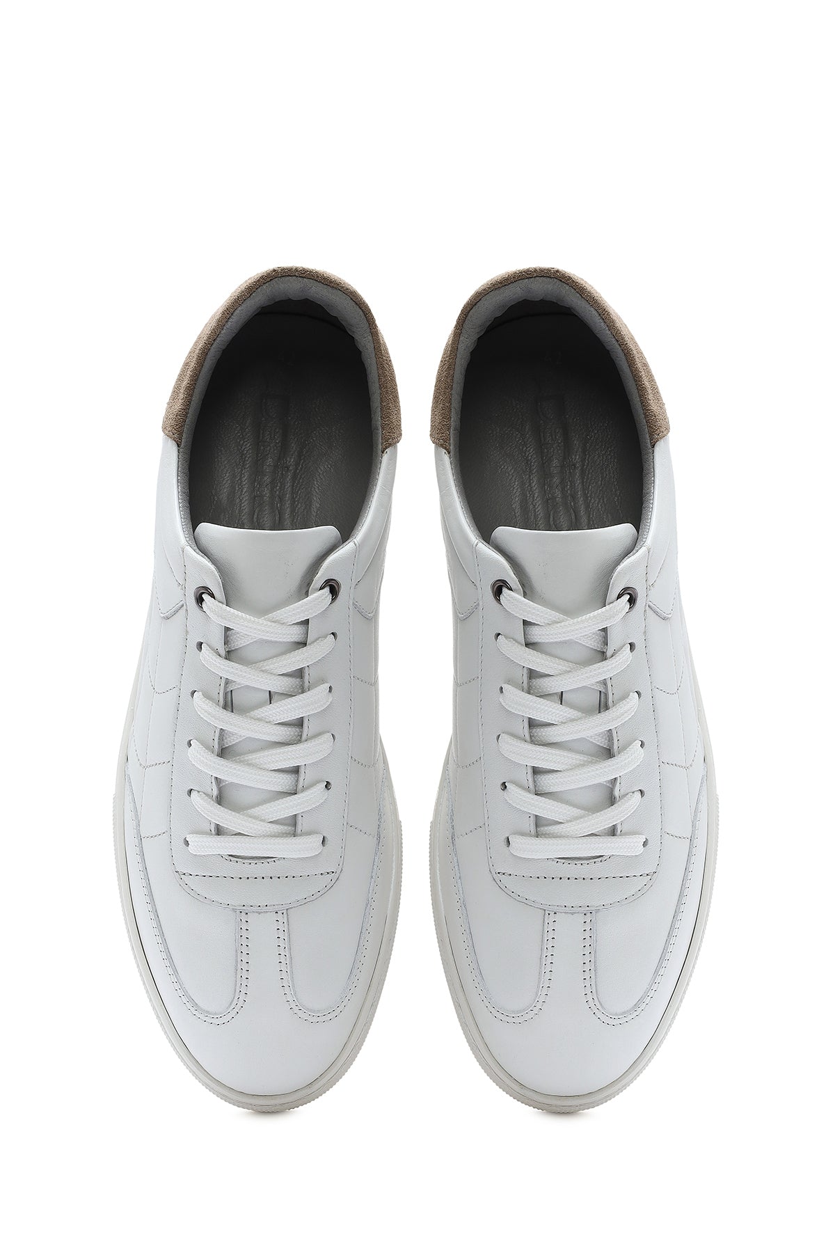 Erkek Beyaz Bağcıklı Deri Sneaker