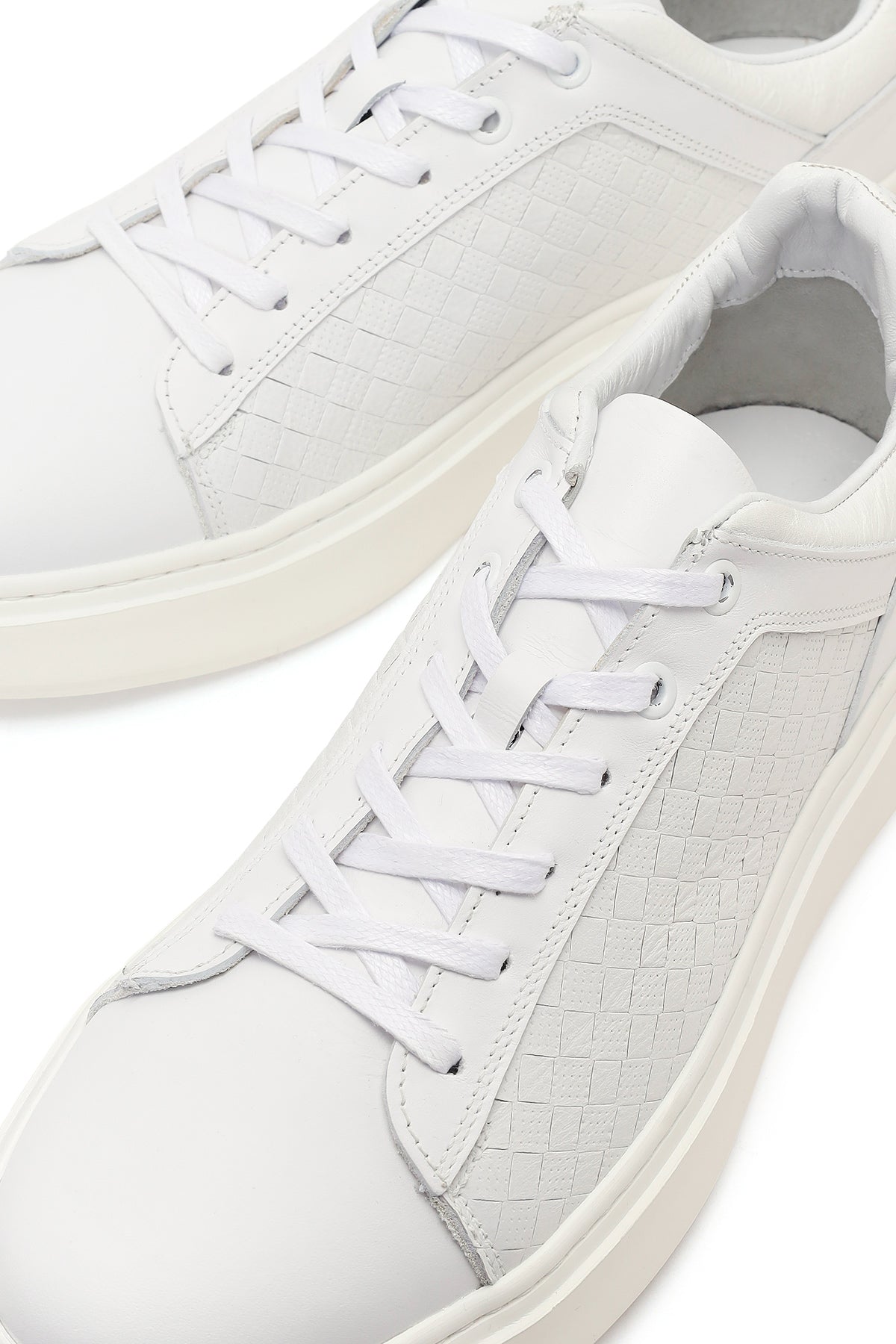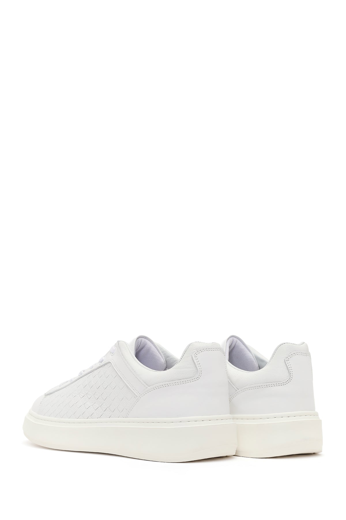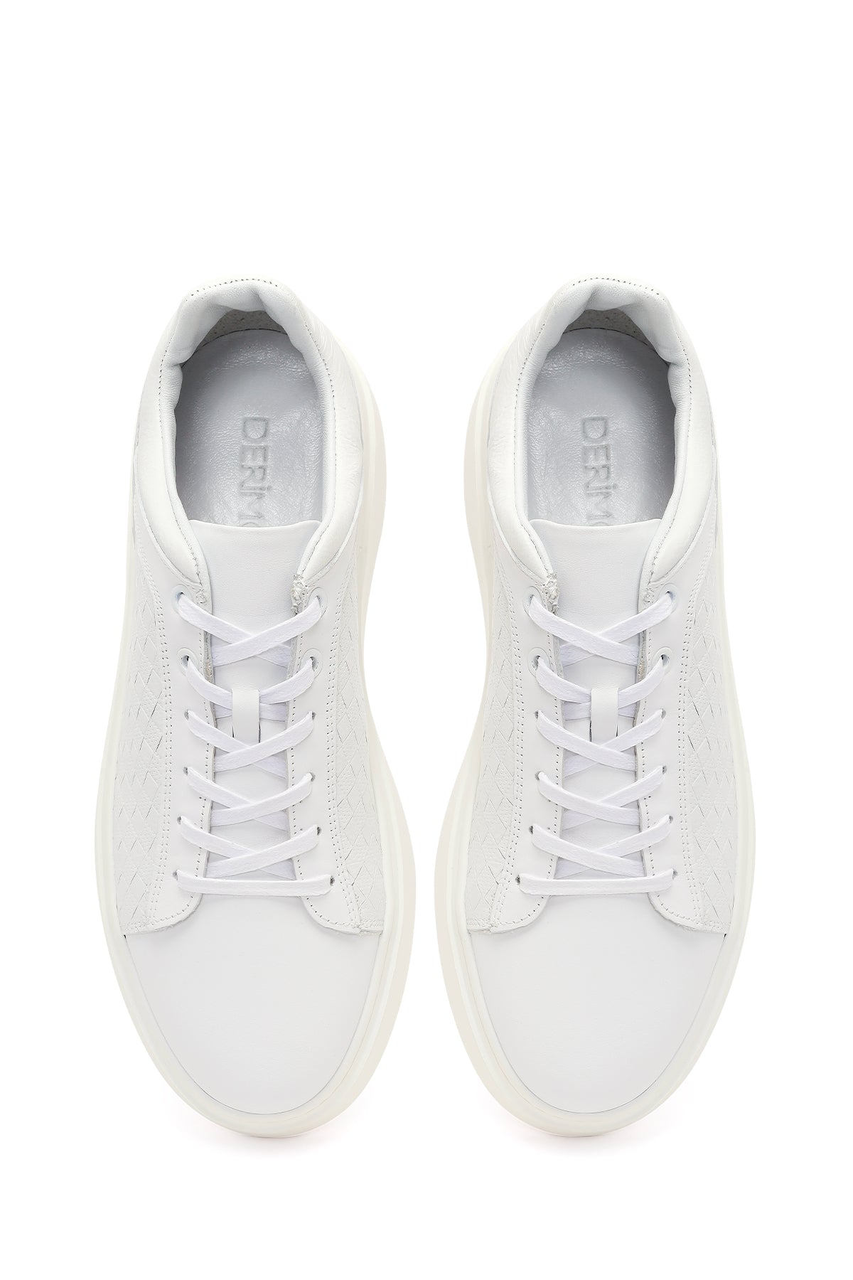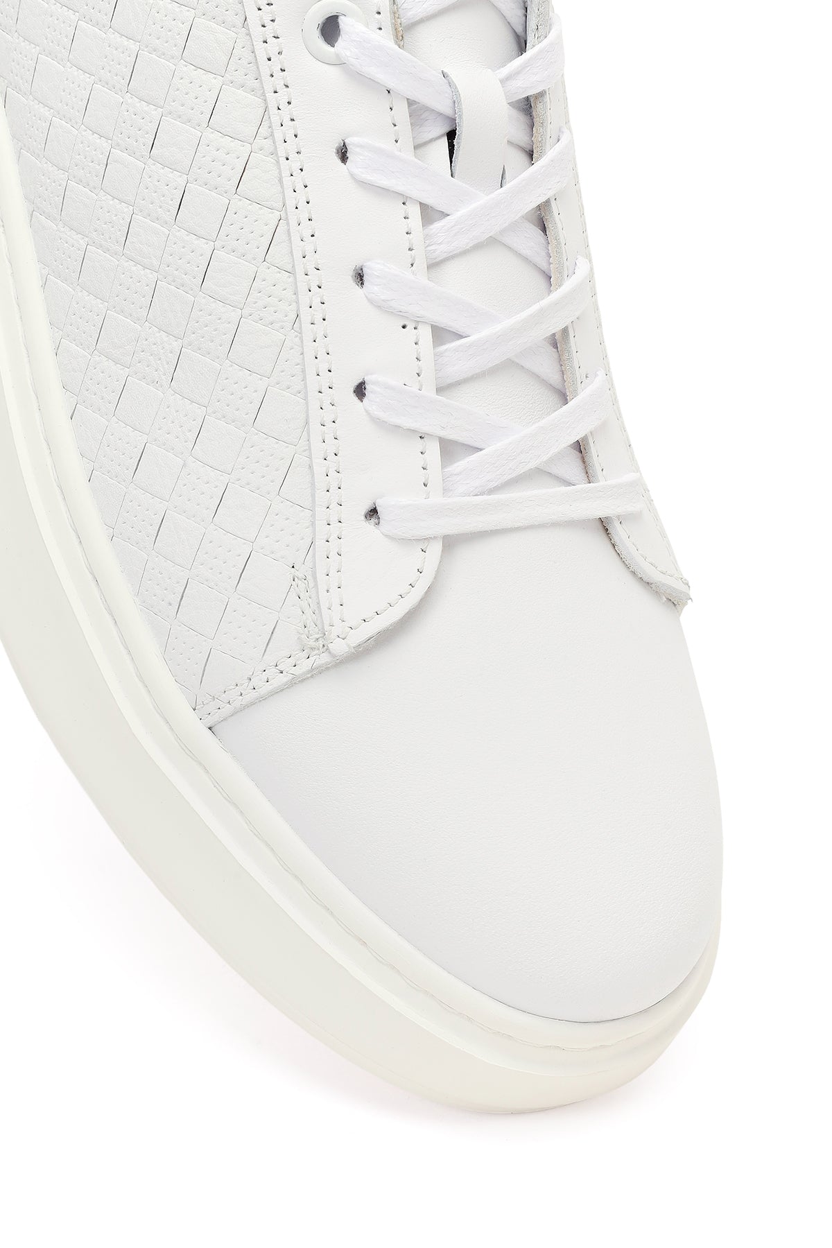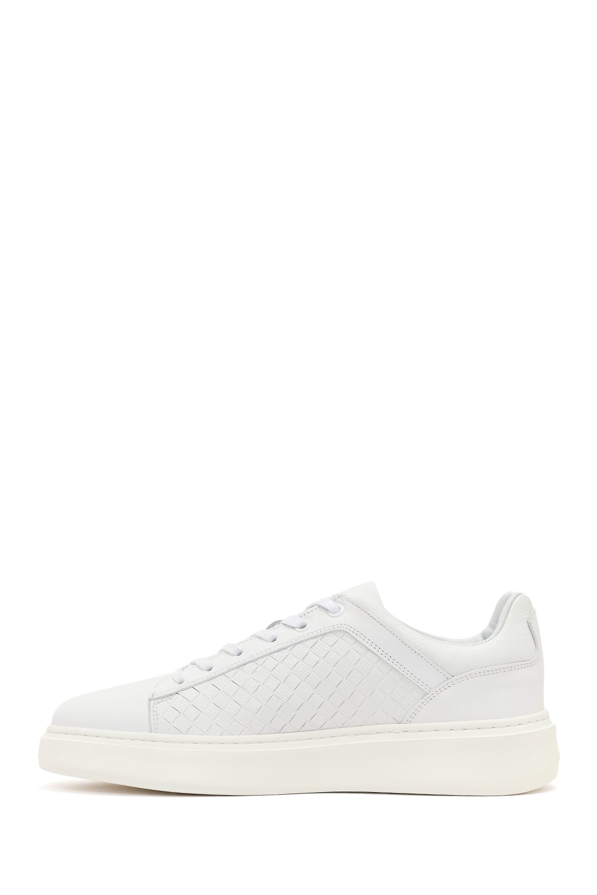Erkek Beyaz Bağcıklı Kalın Tabanlı Deri Sneaker