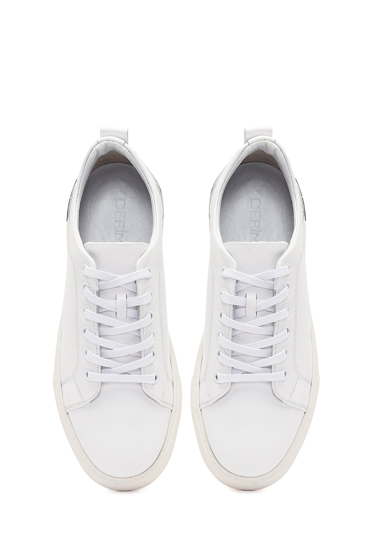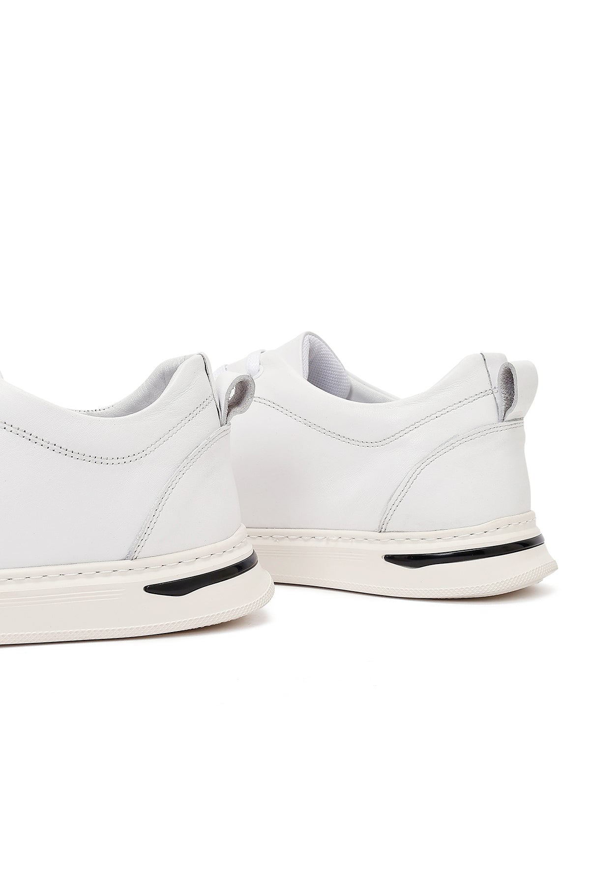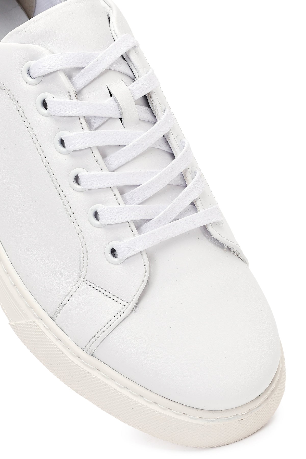 Erkek Beyaz Bağcıklı Kalın Tabanlı Deri Sneaker