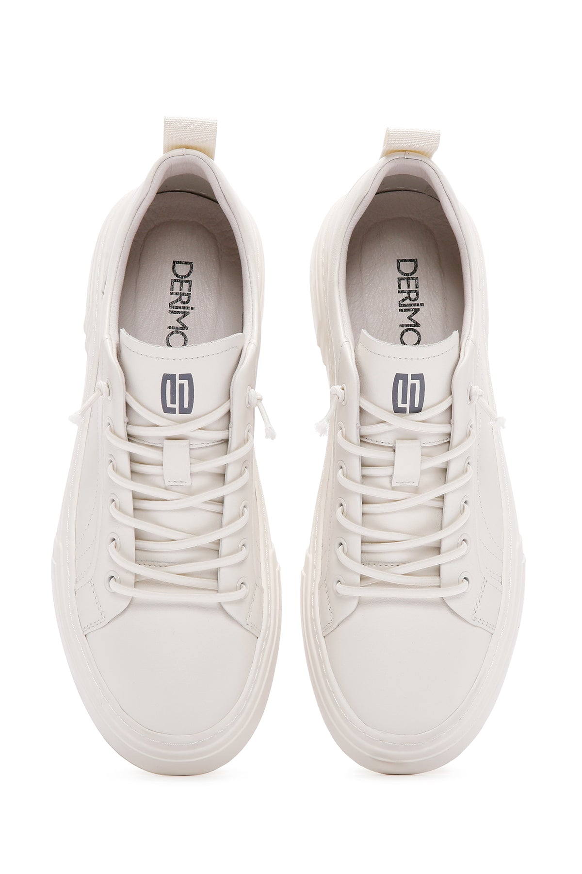 Erkek Beyaz Bağcıklı Kalın Tabanlı Deri Sneaker
