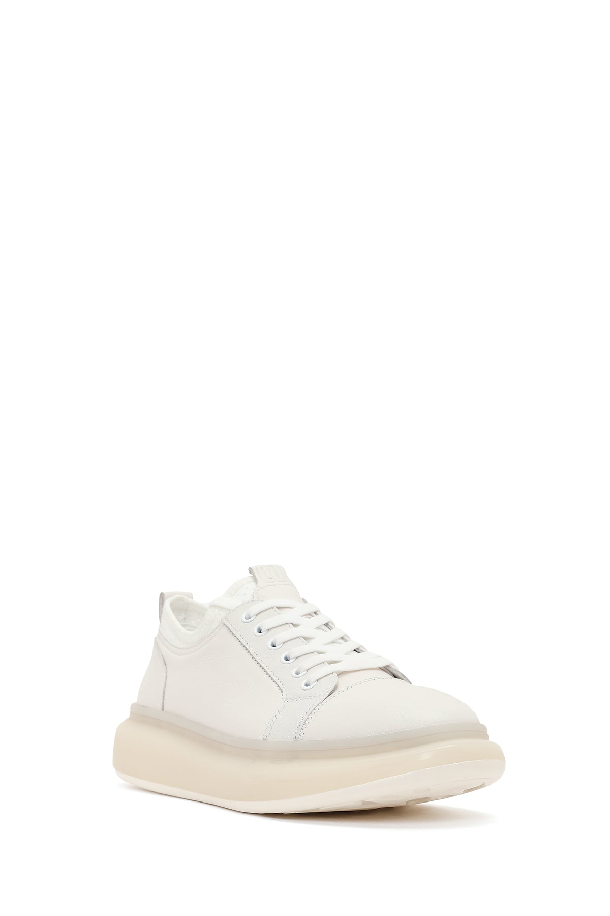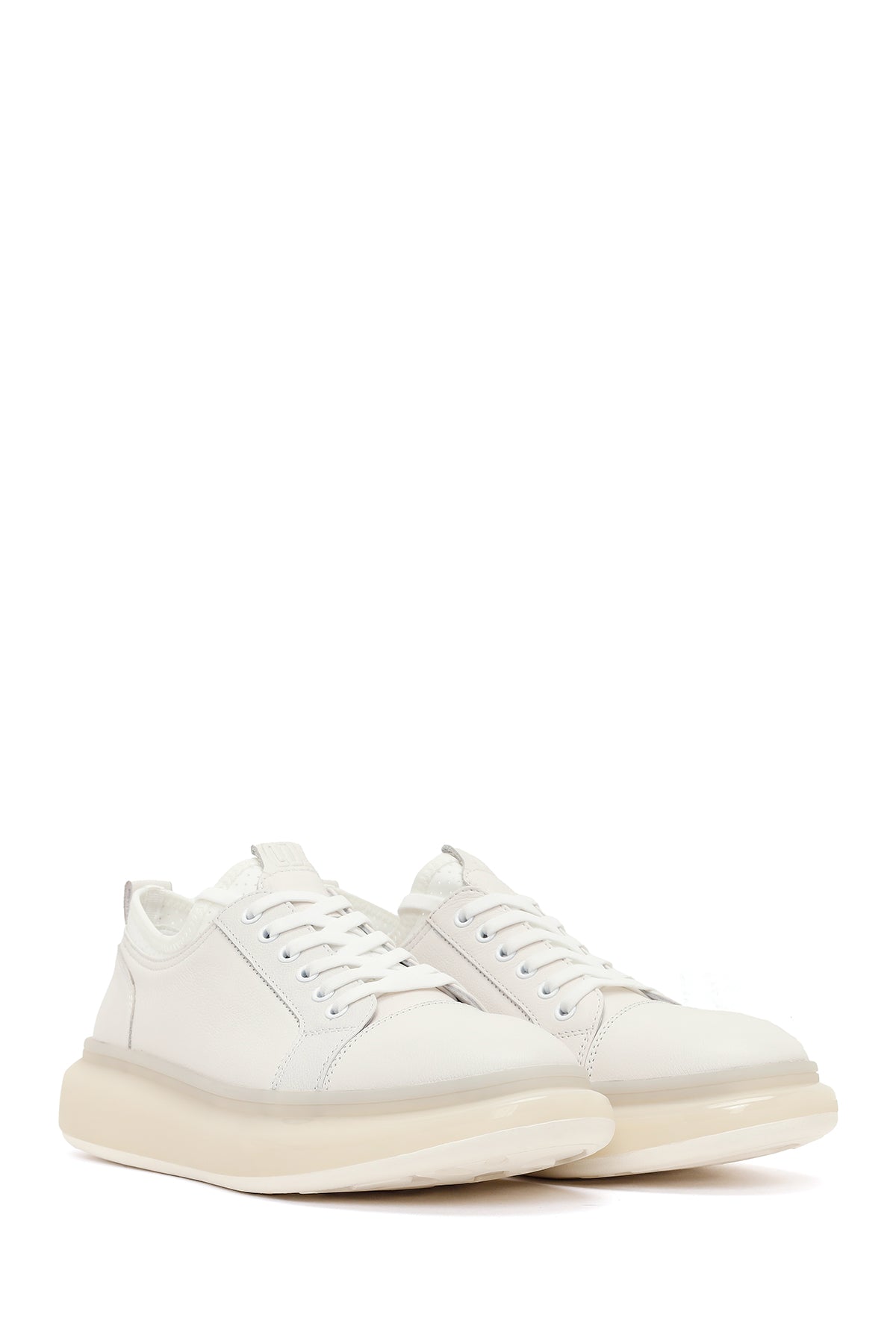 Erkek Beyaz Bağcıklı Kalın Tabanlı Deri Sneaker