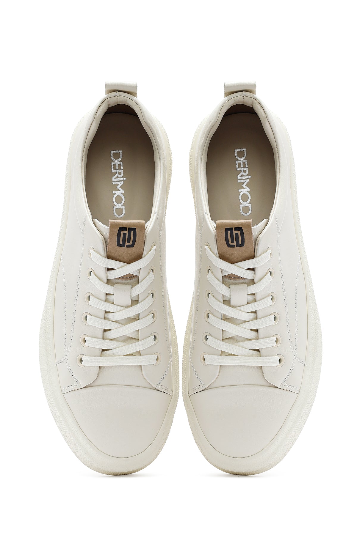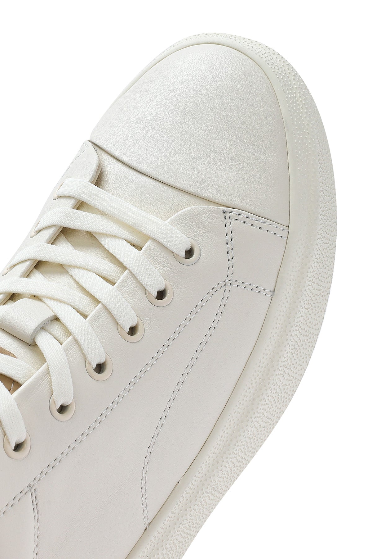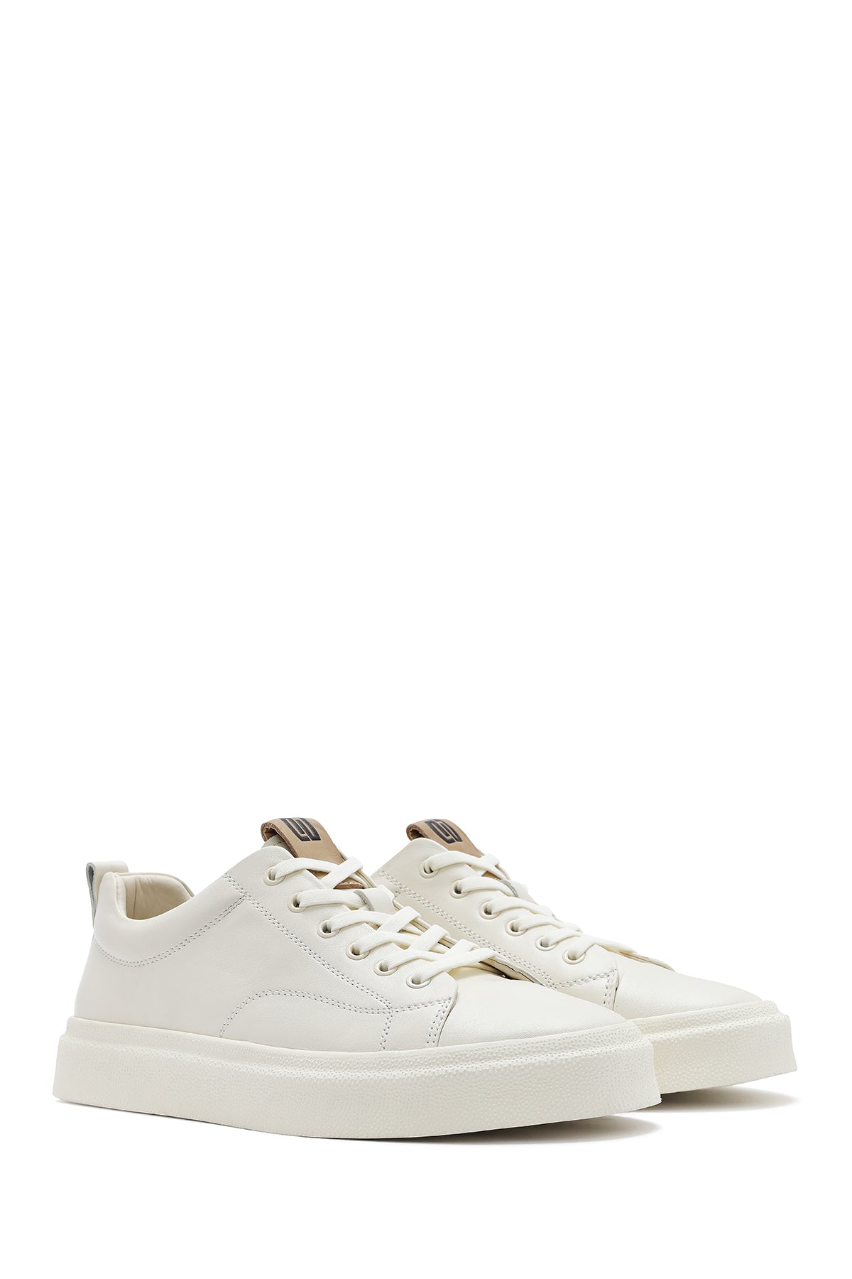 Erkek Beyaz Bağcıklı Kalın Tabanlı Deri Sneaker
