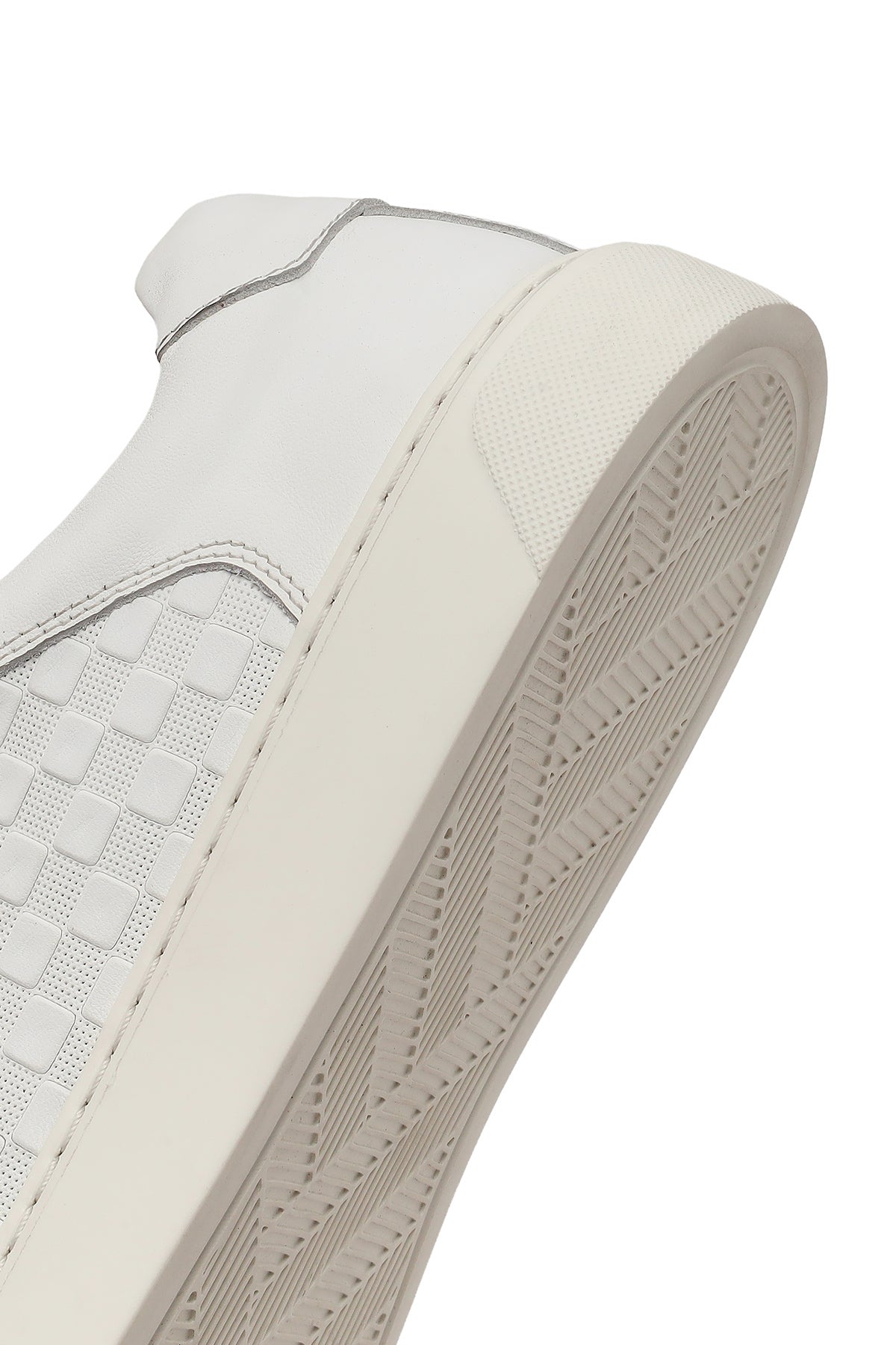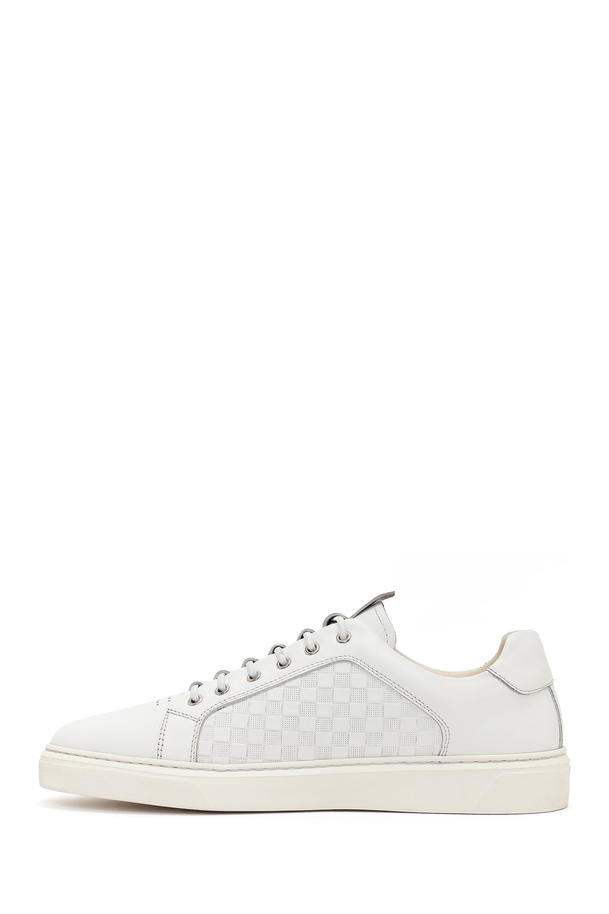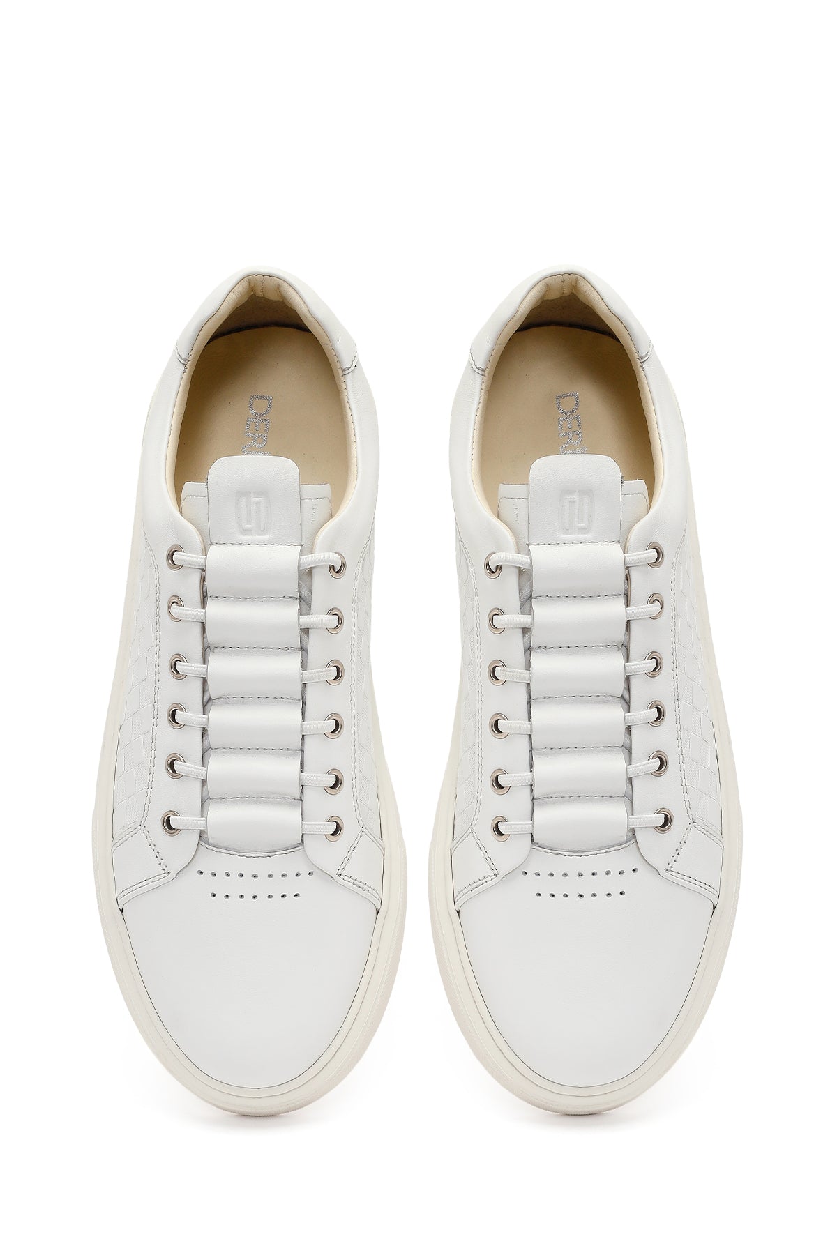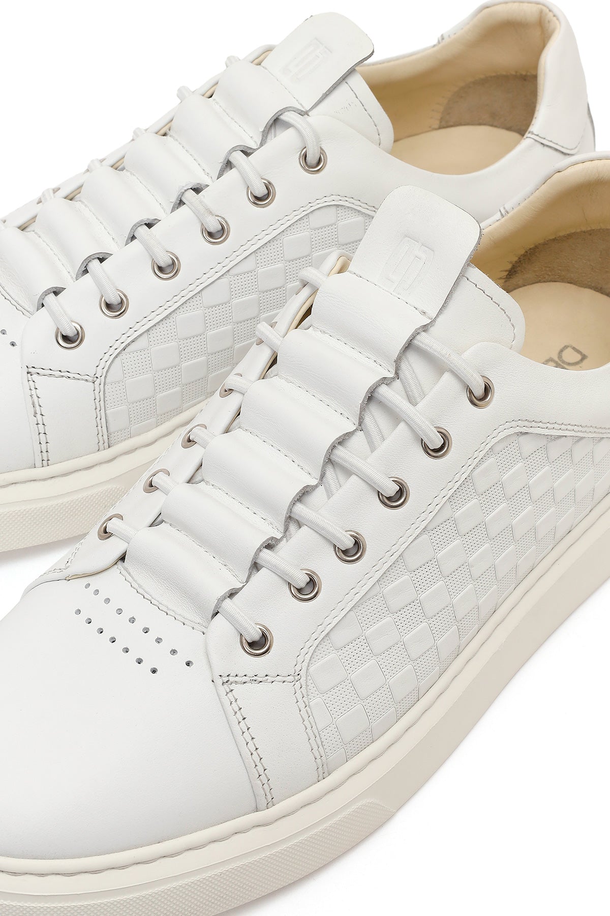 Erkek Beyaz Bağcıklı Kalın Tabanlı Desenli Deri Sneaker