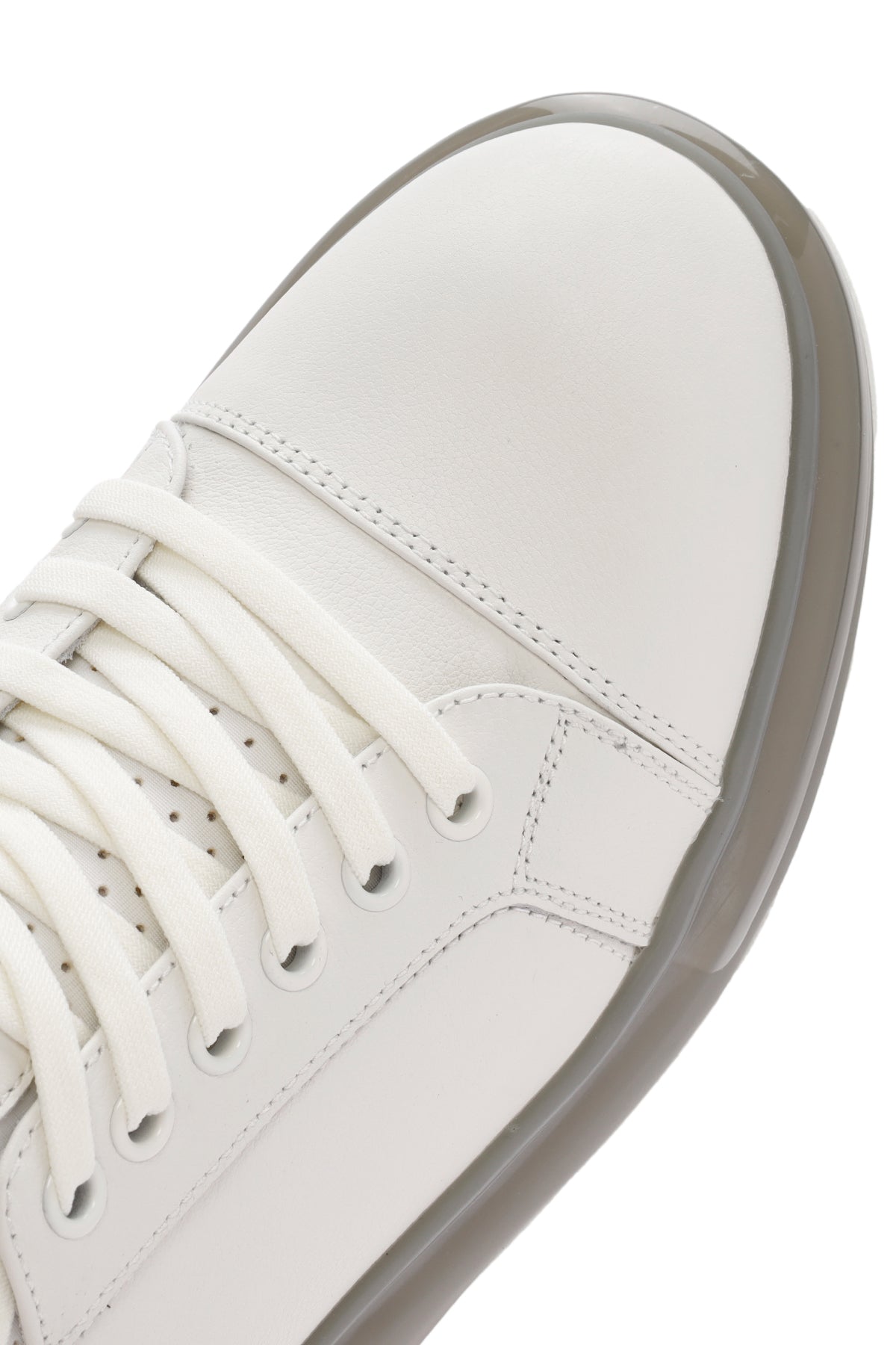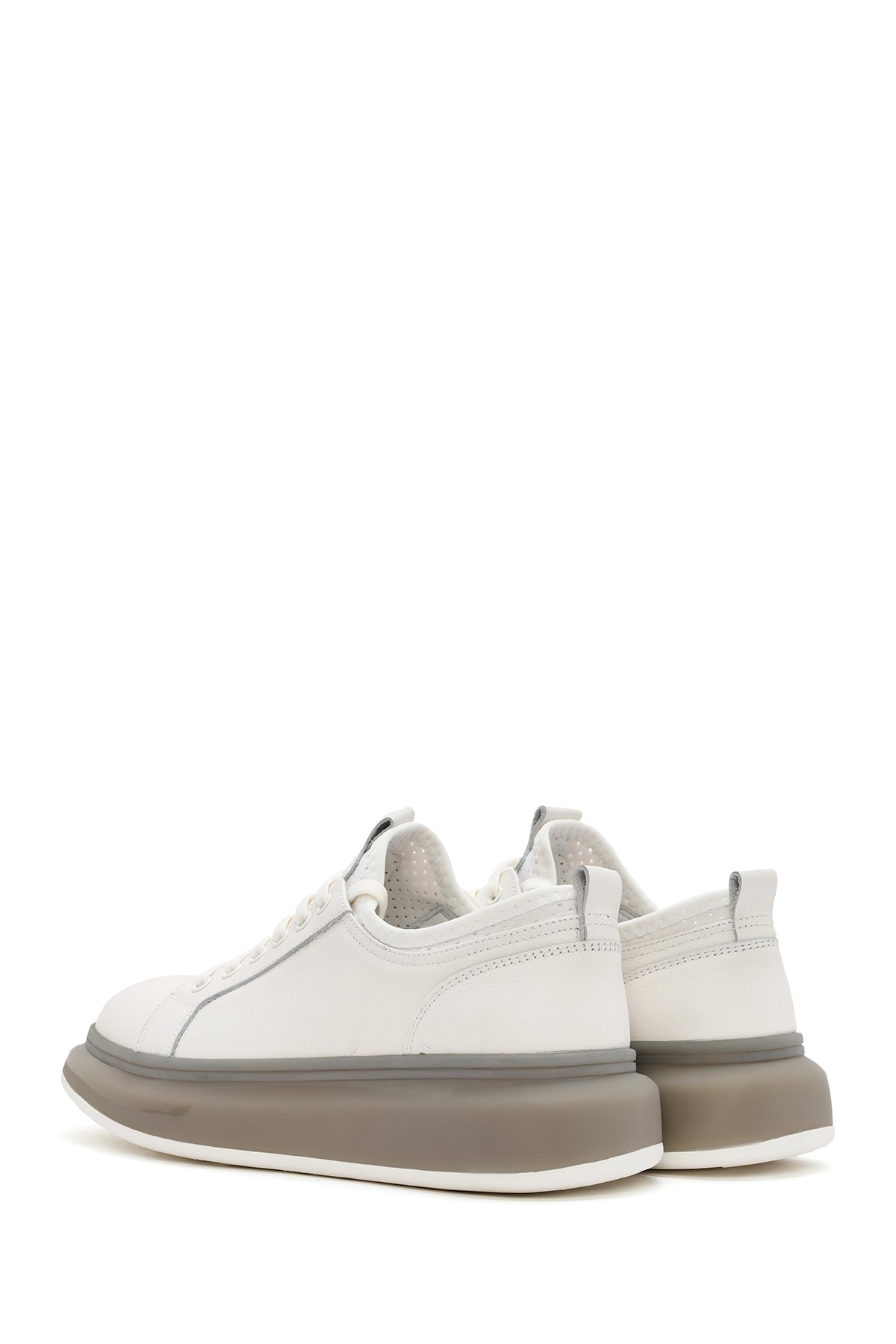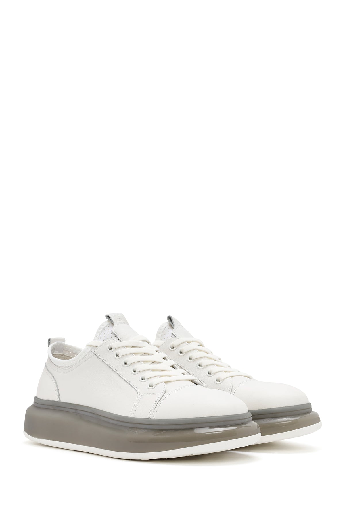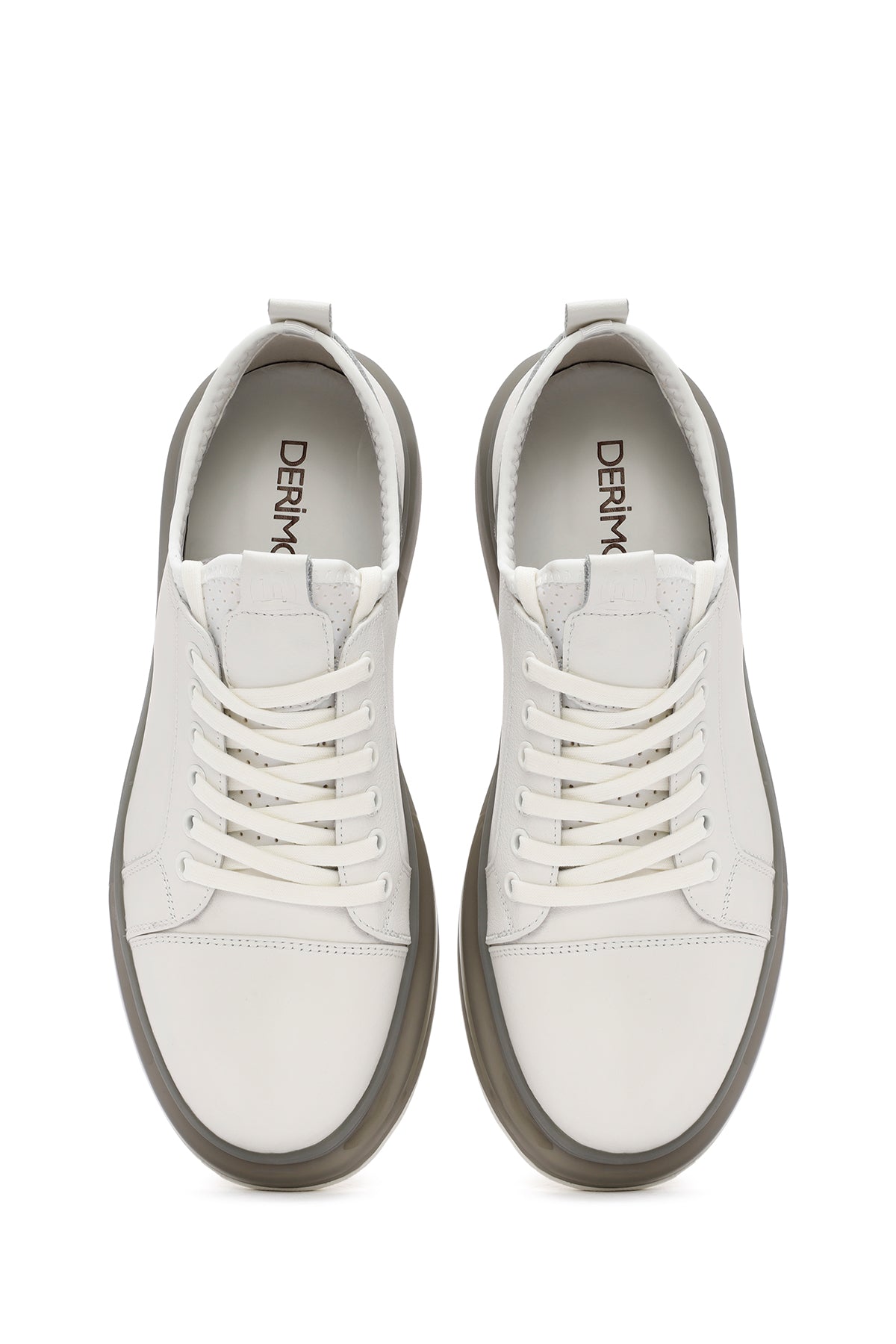 Men's White Thick Sole Lace-Up Leather Sneaker
