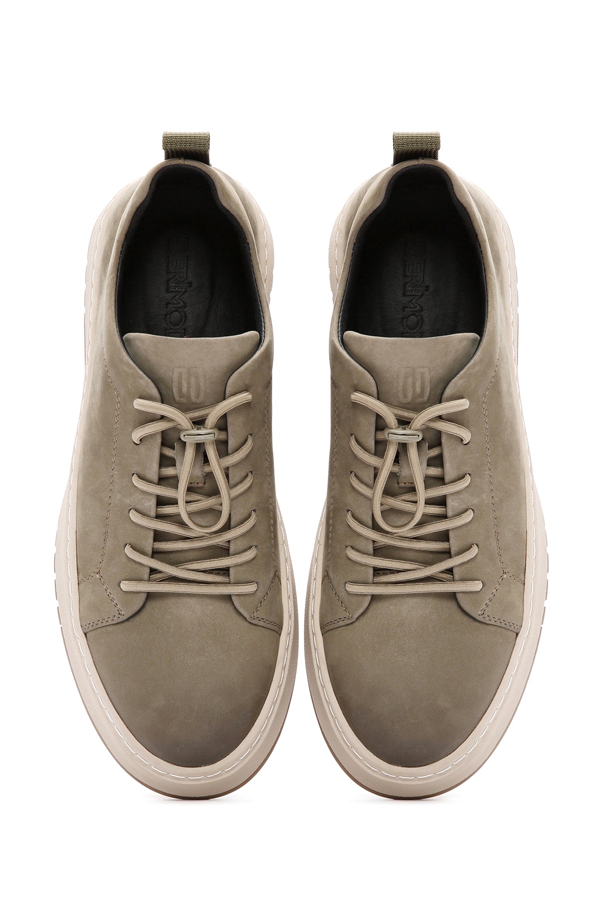Men's Khaki Lace-Up Nubuck Leather Sneaker