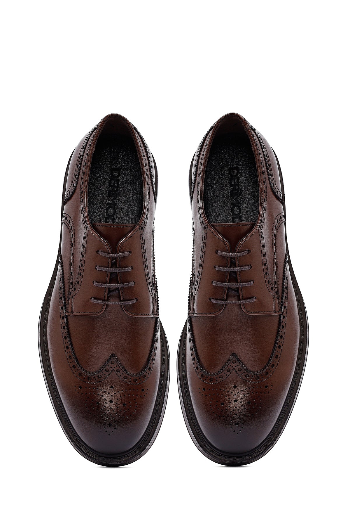 The brown lace-up classic shoe from Derimod's winter collection is made from genuine Vidala leather material and is one of the indispensable pieces of the modern men's wardrobe. The model, reflecting classic elegance with decorative brogue-style perforations and a traditional lace system, provides comfort in daily use thanks to its 2.5 cm heel height. The shoe, offering breathability with its leather inner lining, can be comfortably preferred during seasonal transitions. Its brown color harmonizes with a wide range of outfits, from suits to casual trousers. It is ideal for use in office environments, business meetings, and daily social activities. It offers long-term use with quality leather craftsmanship and a sturdy sole structure. Product code: 25WFD621918