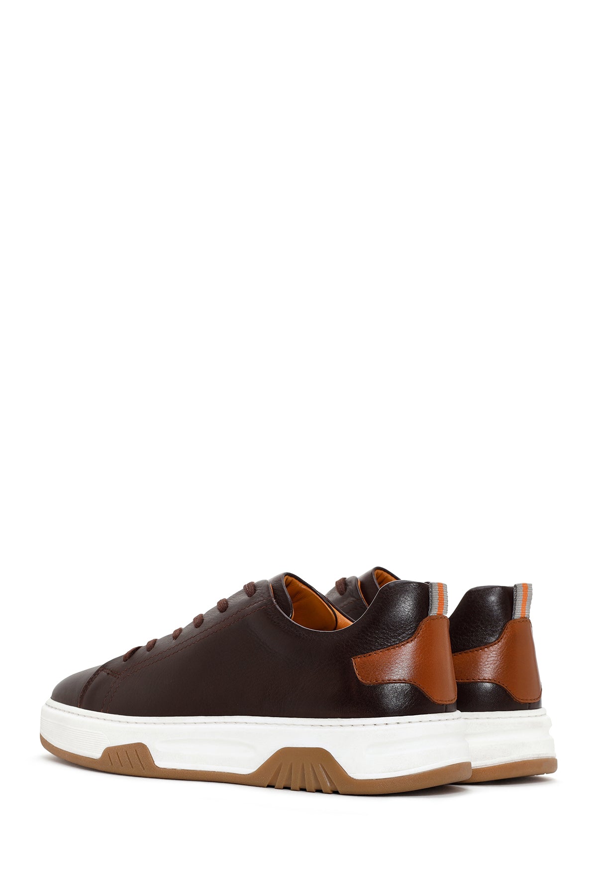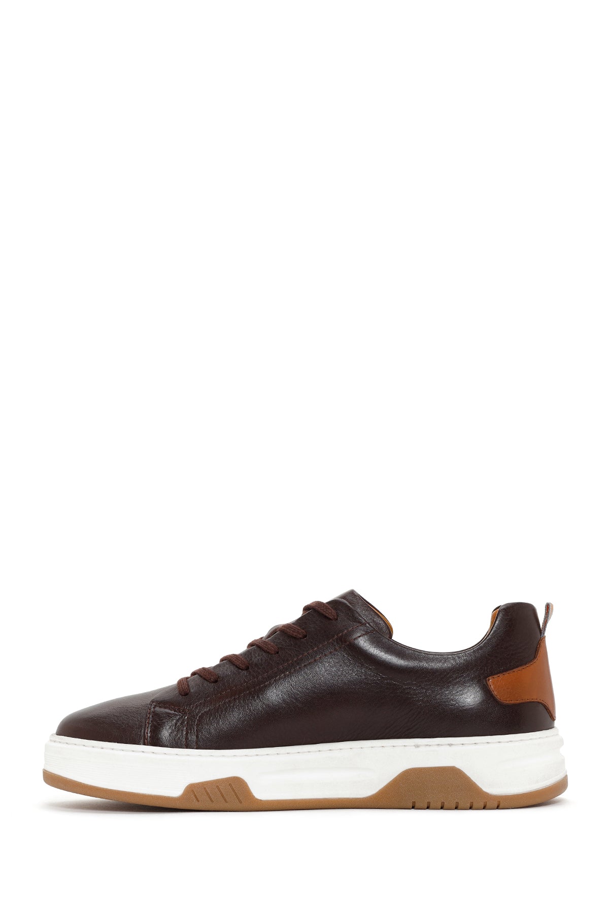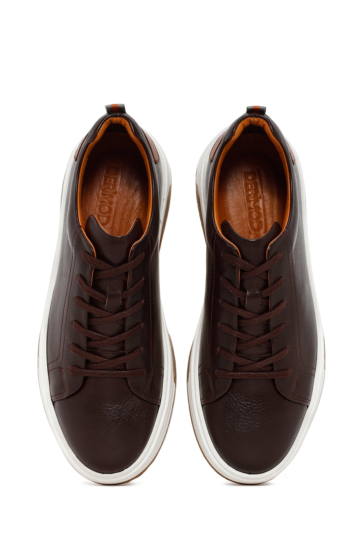 Men's Brown Lace-up Thick-Sole Leather Sneaker