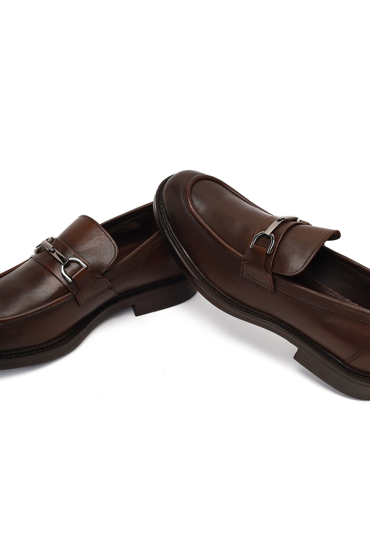 **Turkish Description:** Men's Brown Leather Casual Loafer is one of the indispensable pieces of modern men's fashion. The shoe, produced with Vidala leather feature, combines the durability and elegance offered by the natural leather structure. The loafer, which presents a classic and timeless look with its brown color, attracts attention with its metal bit detail and adds a masculine touch. While the 2 cm heel height provides maximum comfort in daily use, the thick sole structure supports foot health during long walks. Thanks to the leather inner lining, it allows the feet to breathe and prevents sweat and odor formation. The slip-on design offers practical dressing ease and frees you from the hassle of laces. The loafer, which is a standout model of the winter collection, keeps feet warm in cold weather and can be comfortably used throughout the season. The shoe, which gains a modern touch with the chunky sole detail, provides perfect harmony in both casual and business casual combinations. It is a versatile model that can be preferred in office environments, daily activities, social gatherings, and special invitations. It maintains its durability for many years with quality craftsmanship and premium material use. Product code: 25WFD750018