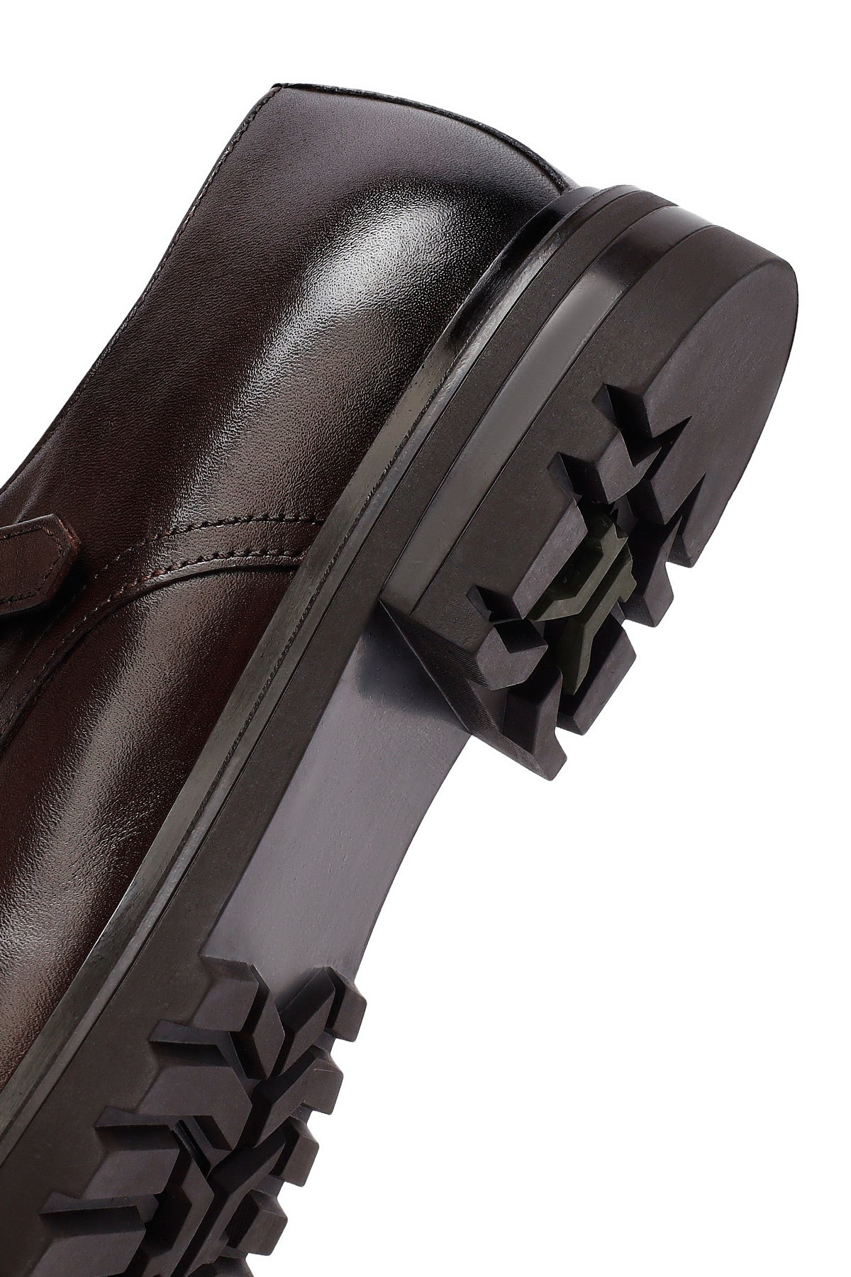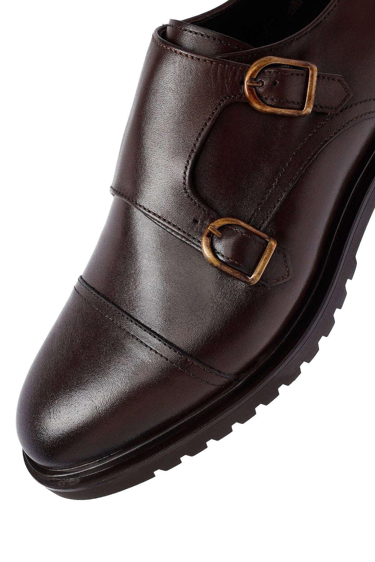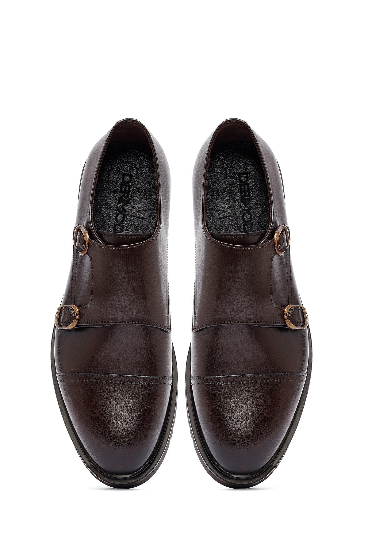 The brown leather classic shoe from Derimod's winter collection is a piece destined to become indispensable in men's wardrobes. The model, crafted with Vidala leather workmanship, combines the breathability and durability features provided by the natural leather structure. The double-buckled monk strap design adds a modern touch to the traditional shoe concept, while the metal buckle details enhance the product's elegance. With a heel height of 2.5 cm, the shoe provides ideal comfort for daily use, and its thick and durable sole protects foot health even during long walks. The leather inner lining supports foot hygiene, and thanks to the thermal regulation feature provided by the natural material, it maintains the temperature balance of the feet. The brown color choice offers a universal alternative that easily matches both formal and casual outfits. It pairs perfectly with suits in office settings as well as with chino pants and shirt combinations during weekend activities. Suitable for seasonal transitions, the model can be confidently preferred in autumn and winter months and will appeal to classic shoe enthusiasts. Product code: 25WFD621718