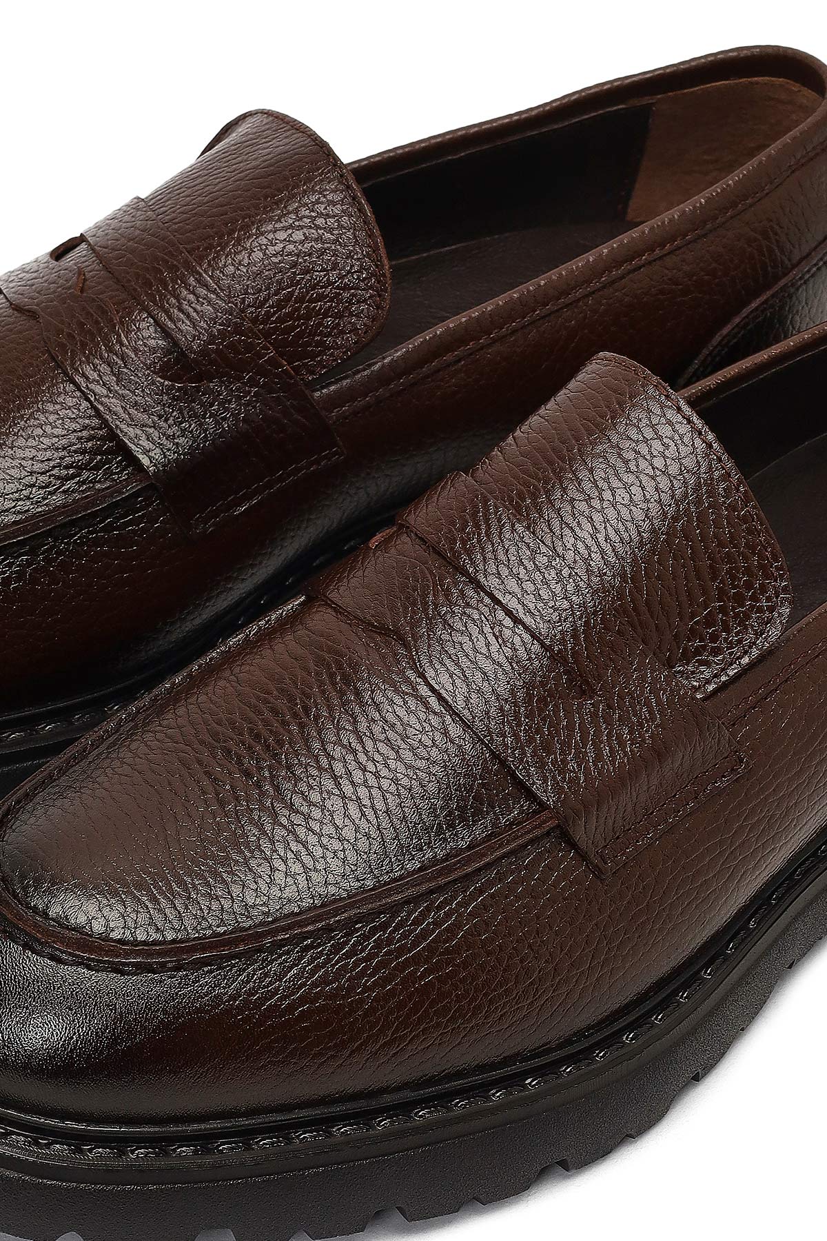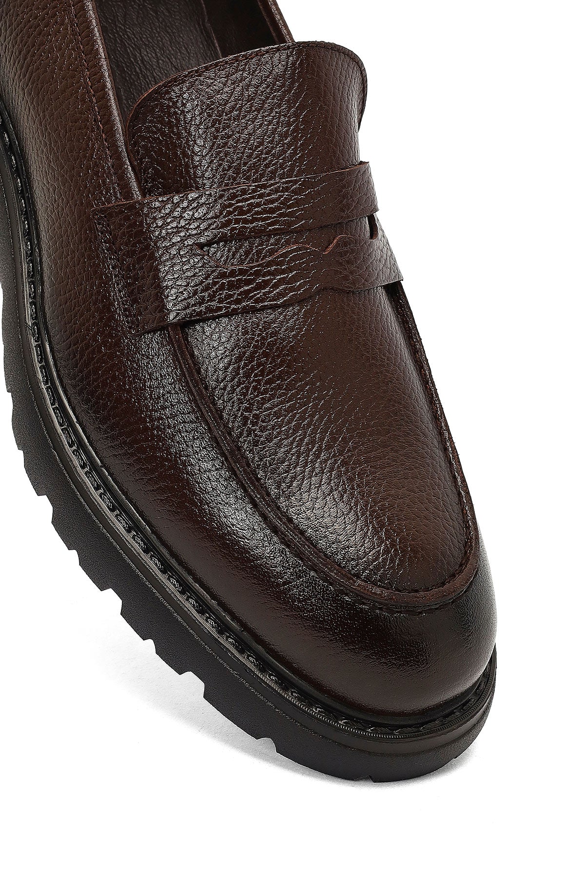 This men's brown thick-soled leather loafer from Derimod's winter collection is one of the most striking examples of modern men's shoe fashion. Produced with flotter leather craftsmanship, the model combines the superior quality and durability provided by the natural leather texture. With a heel height of 2.5 cm, the shoe offers ideal comfort for daily use, and its thick sole structure provides both a contemporary look and long-lasting walking comfort. The model, which blends the classic lines of the penny loafer design with modern details, becomes an indispensable piece of the wardrobe with its brown color option. The use of leather inner lining supports foot health and promises all-day comfort with its breathable structure. Suitable for a wide range of uses from office environments to daily social activities, the loafer can be comfortably preferred for most of the year thanks to its structure suitable for seasonal transitions. This special design in the casual loafer category stands out as a model that must be in the modern man's shoe collection with its stylish appearance and practical use. Product code: 25WFD8200FT