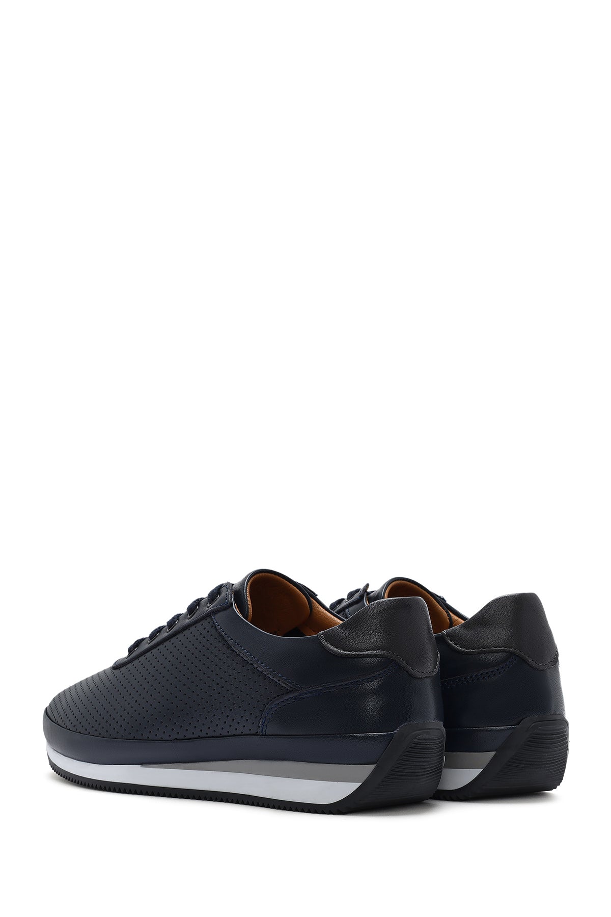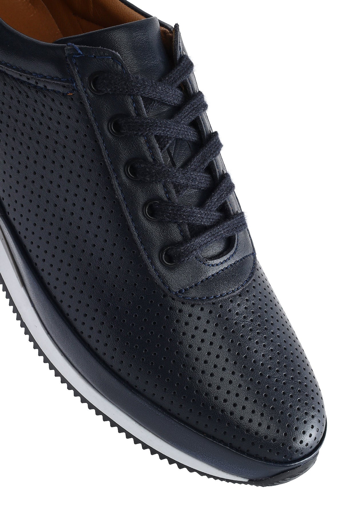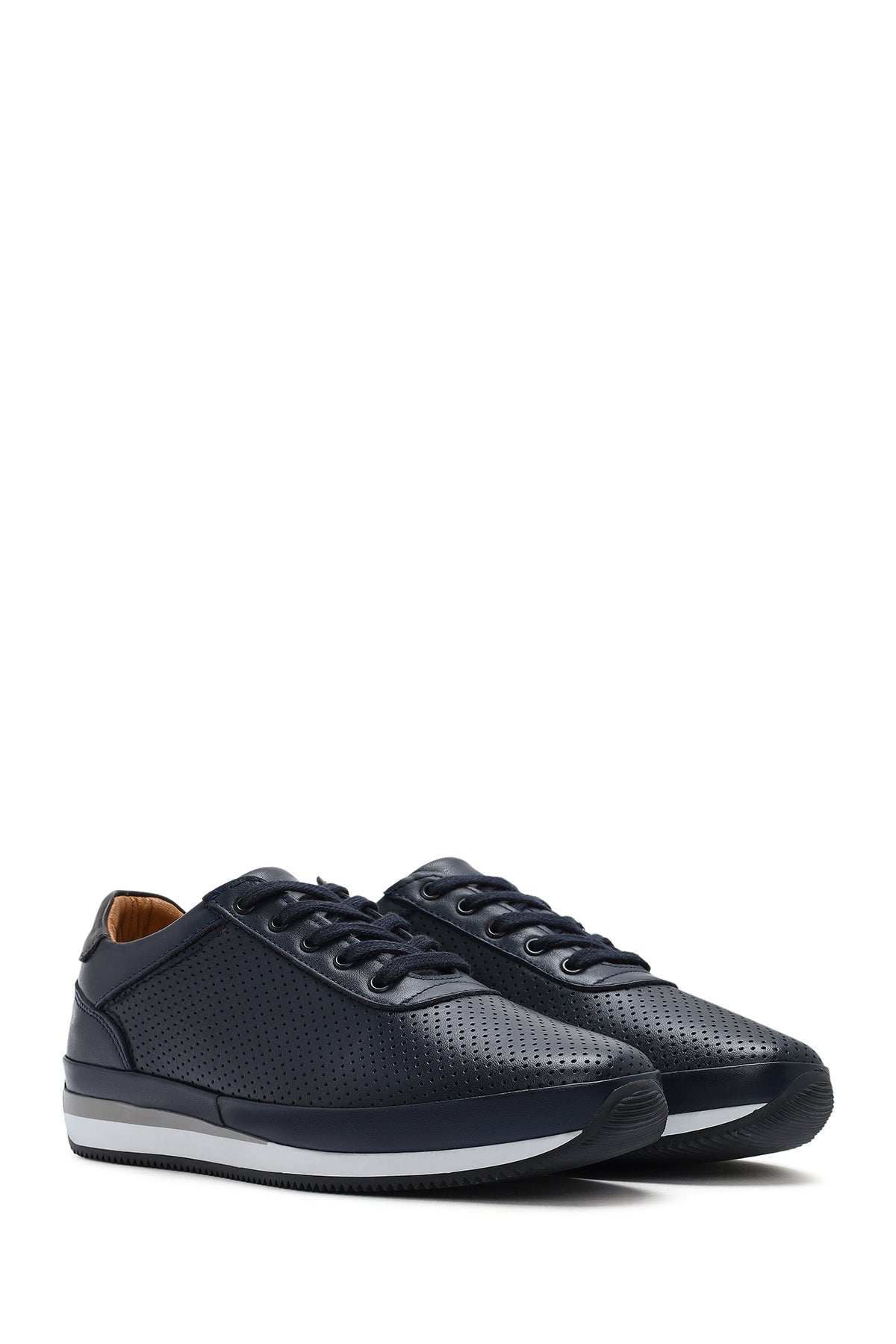 Erkek Lacivert Bağcıklı Deri Casual Sneaker