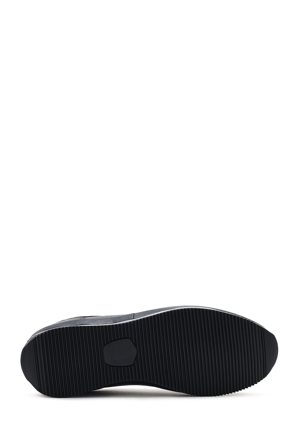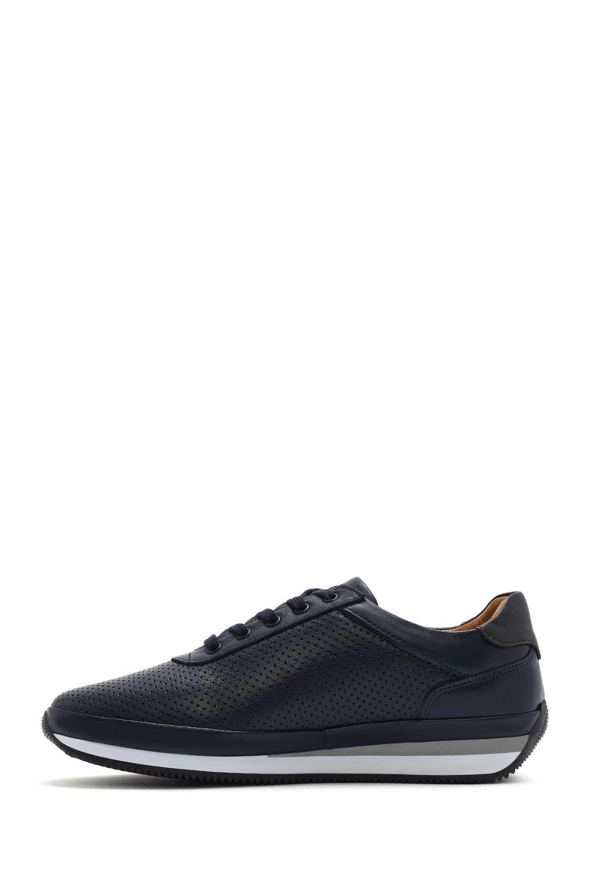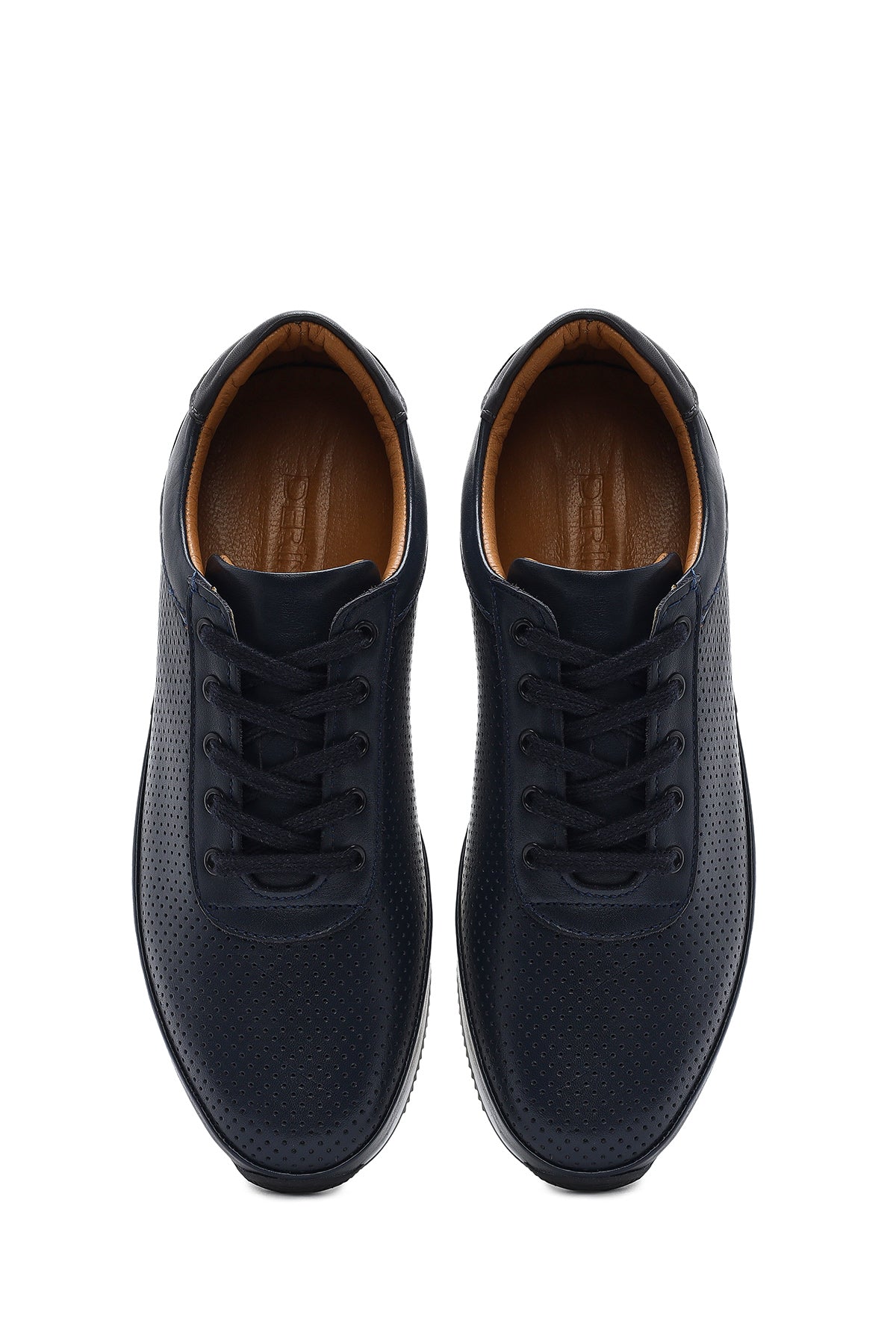 Erkek Lacivert Bağcıklı Deri Casual Sneaker