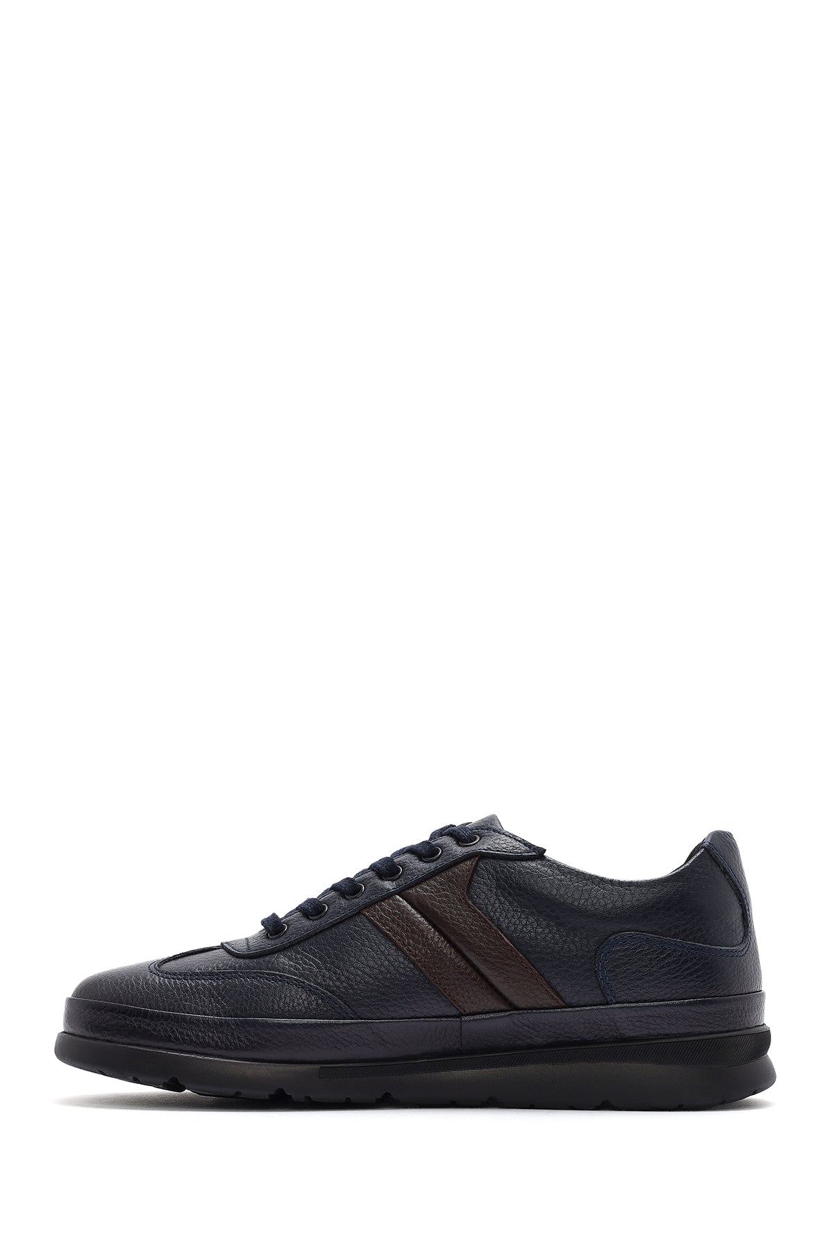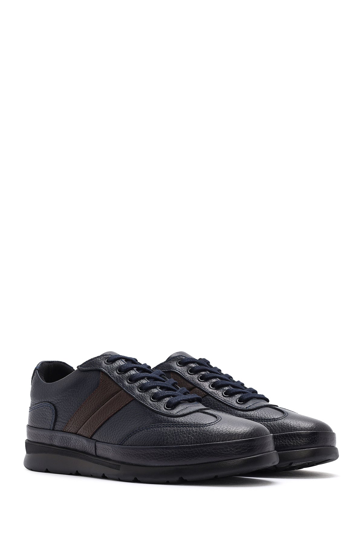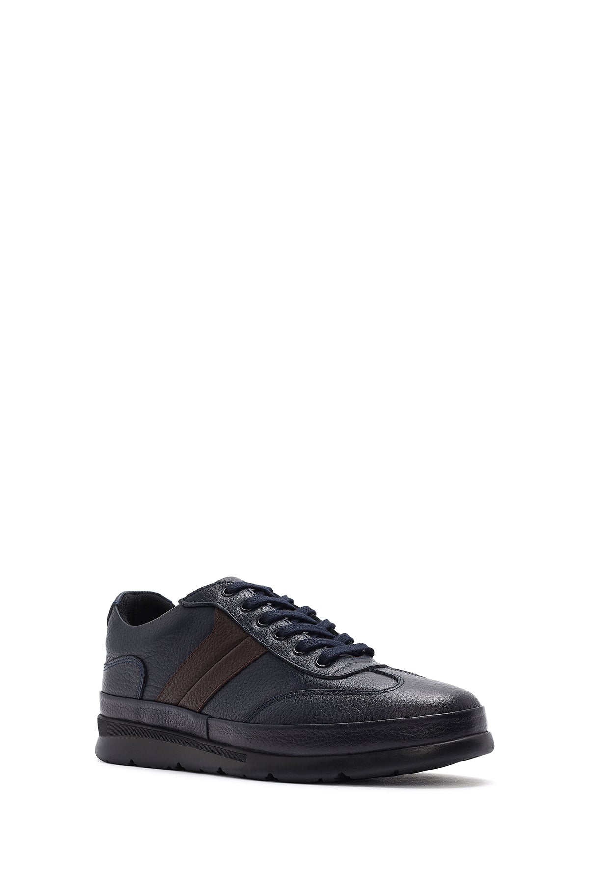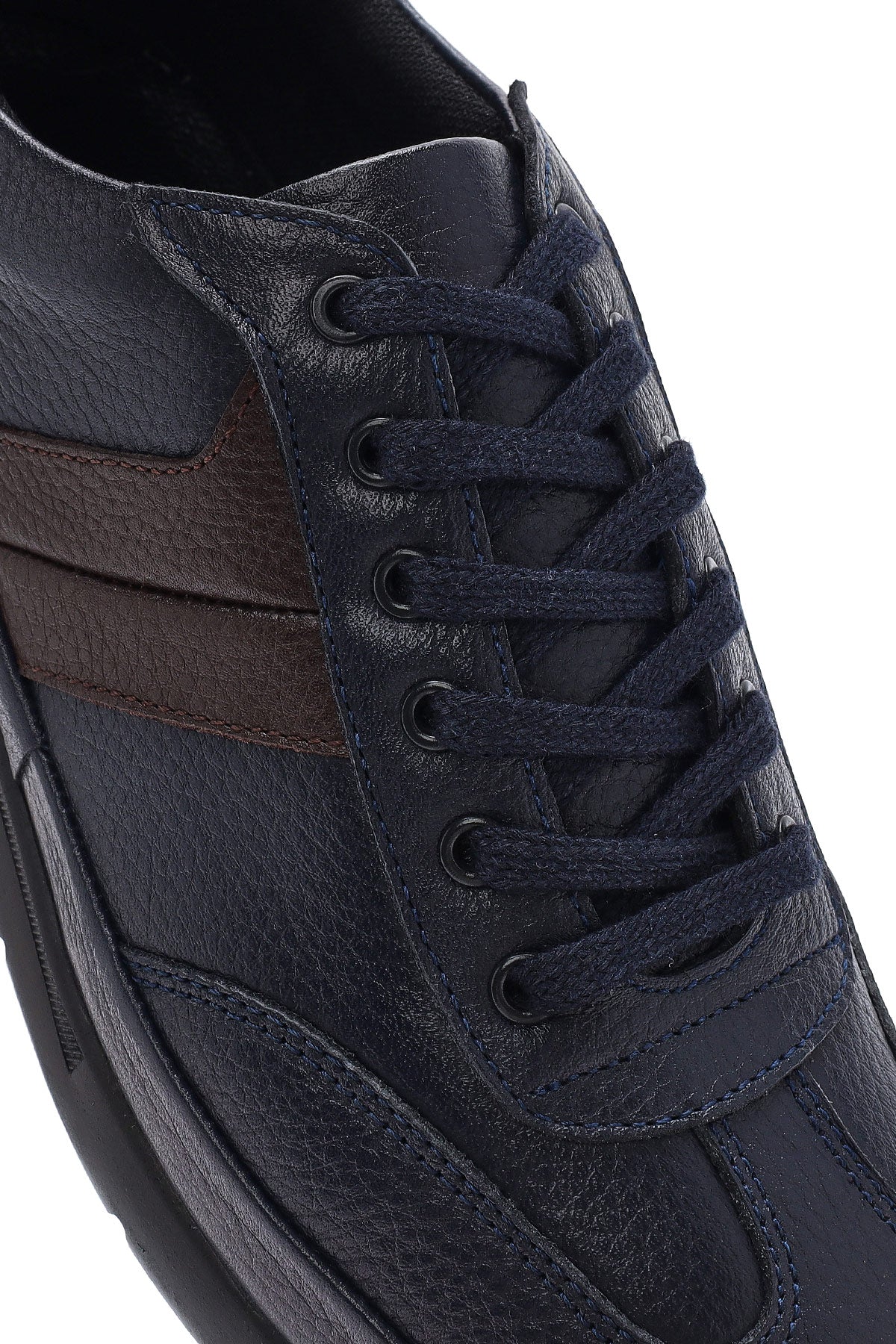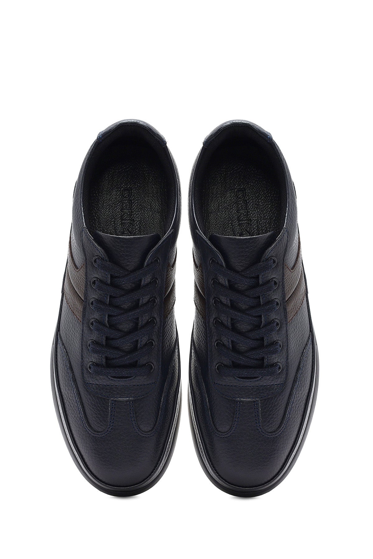 Erkek Lacivert Bağcıklı Deri Casual Sneaker