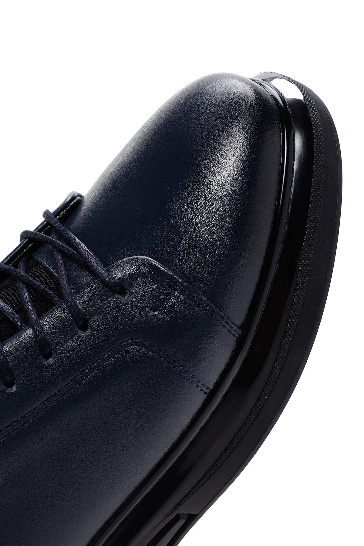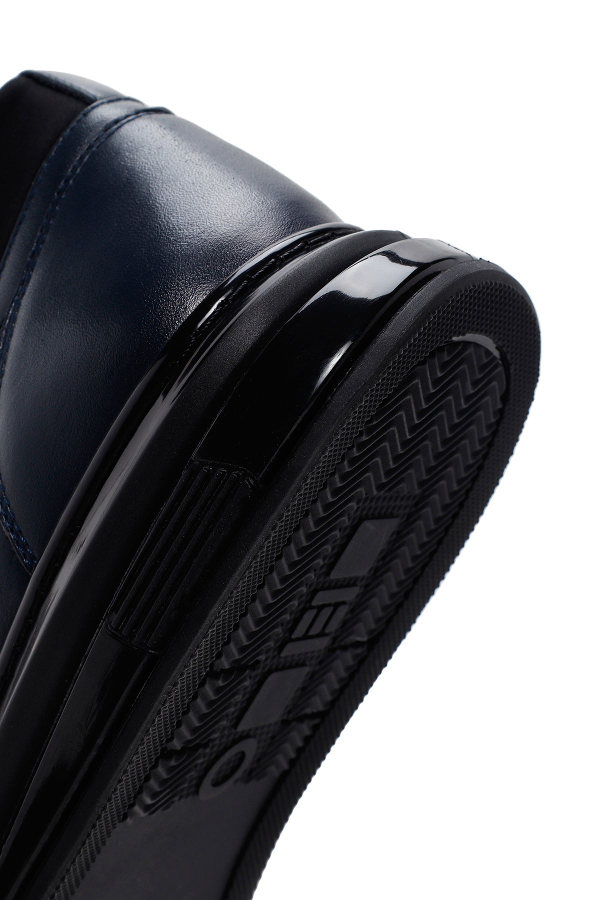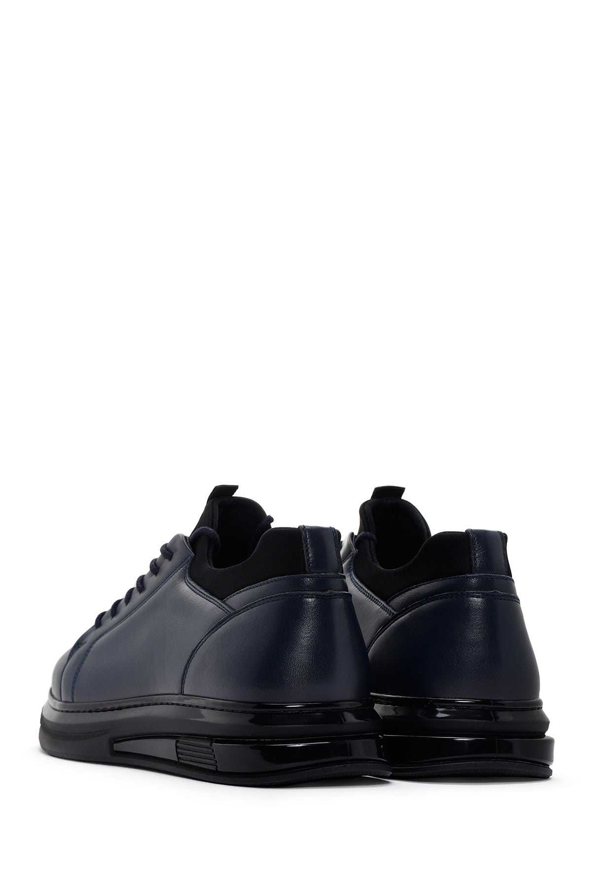 Erkek Lacivert Bağcıklı Kalın Tabanlı Deri Sneaker