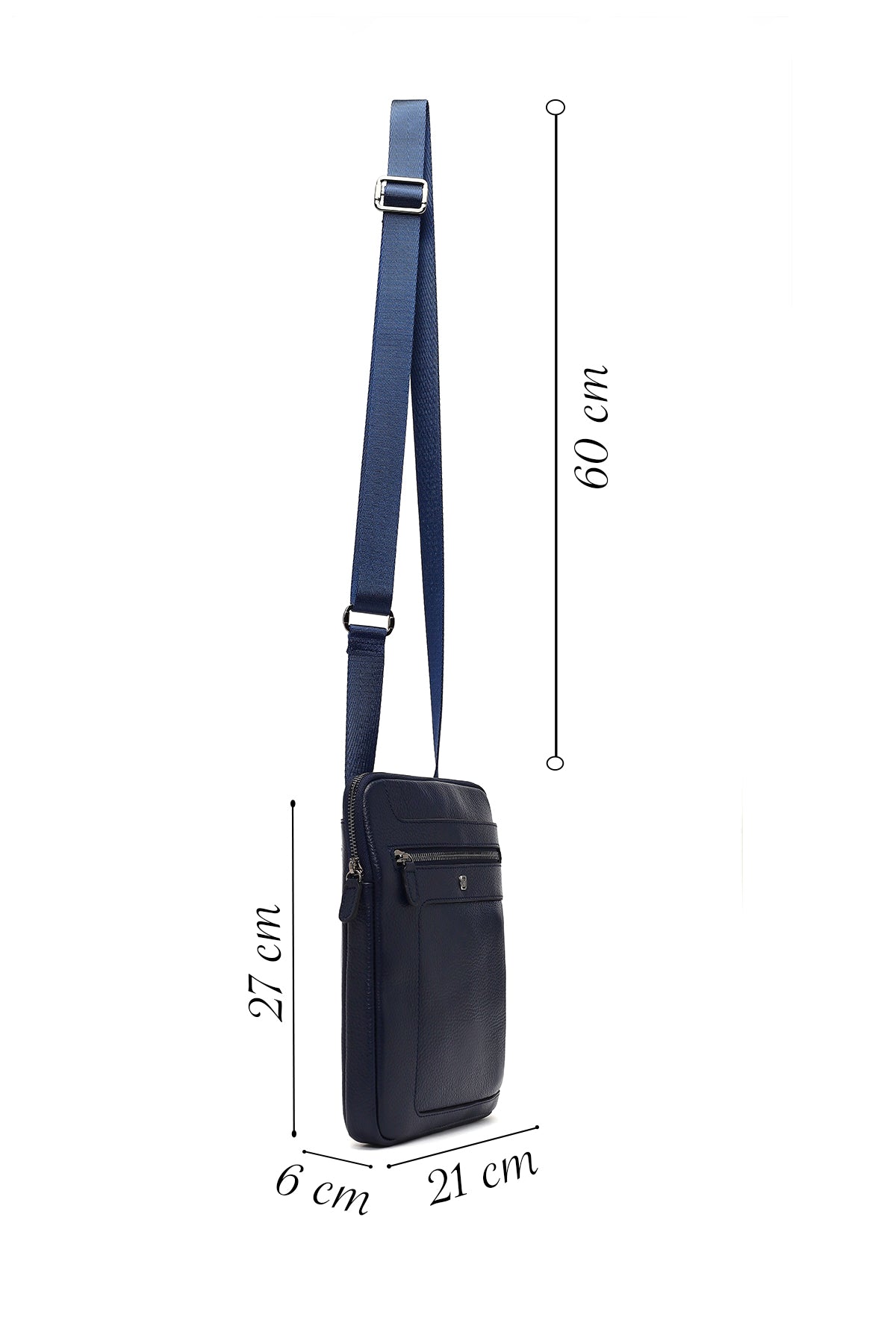 Men's Navy Blue Long Strap Leather Shoulder Bag