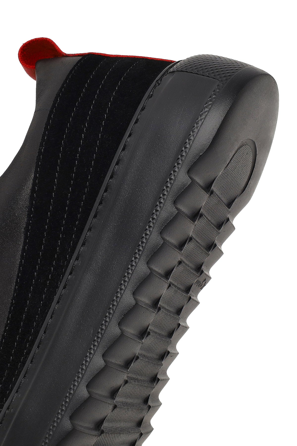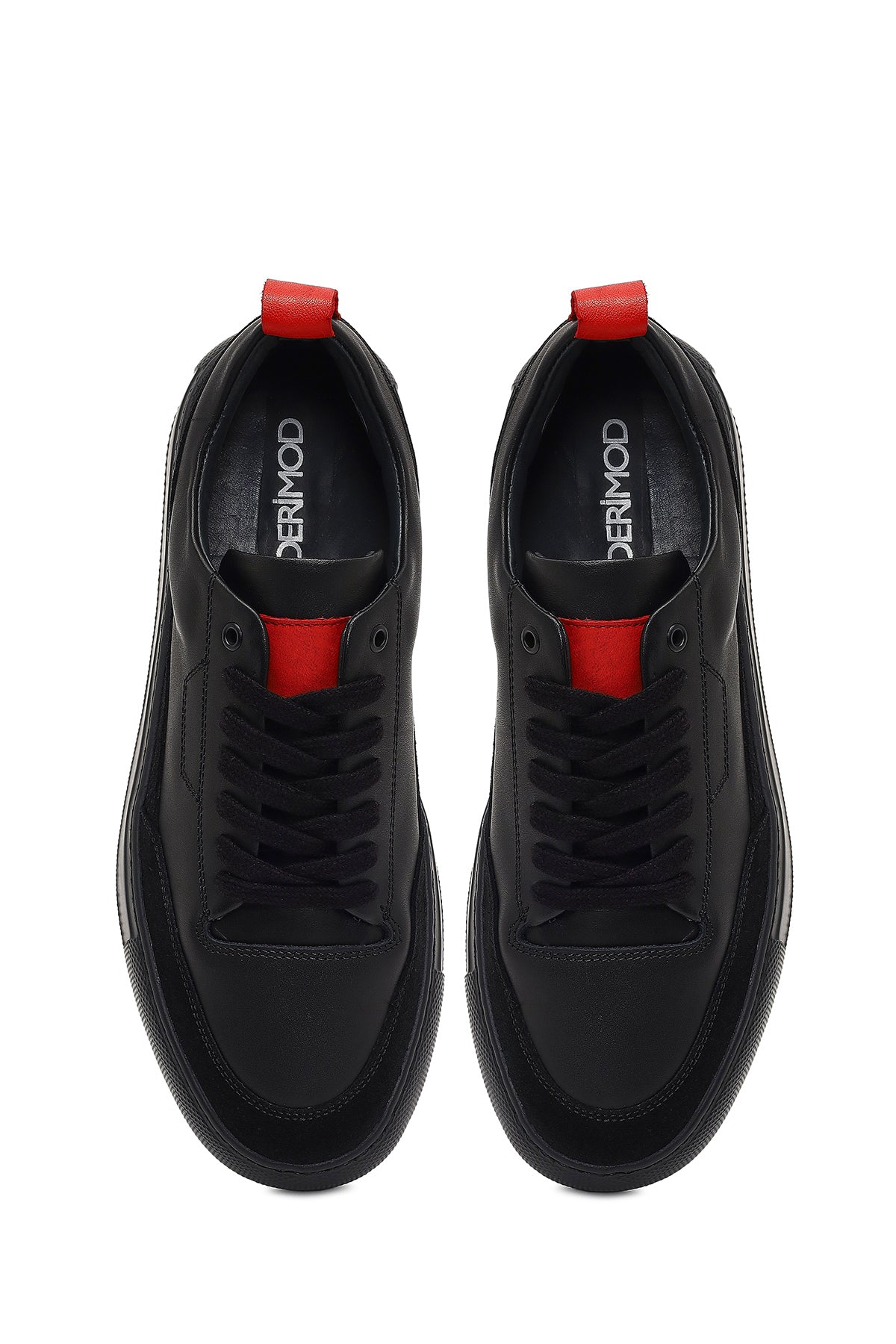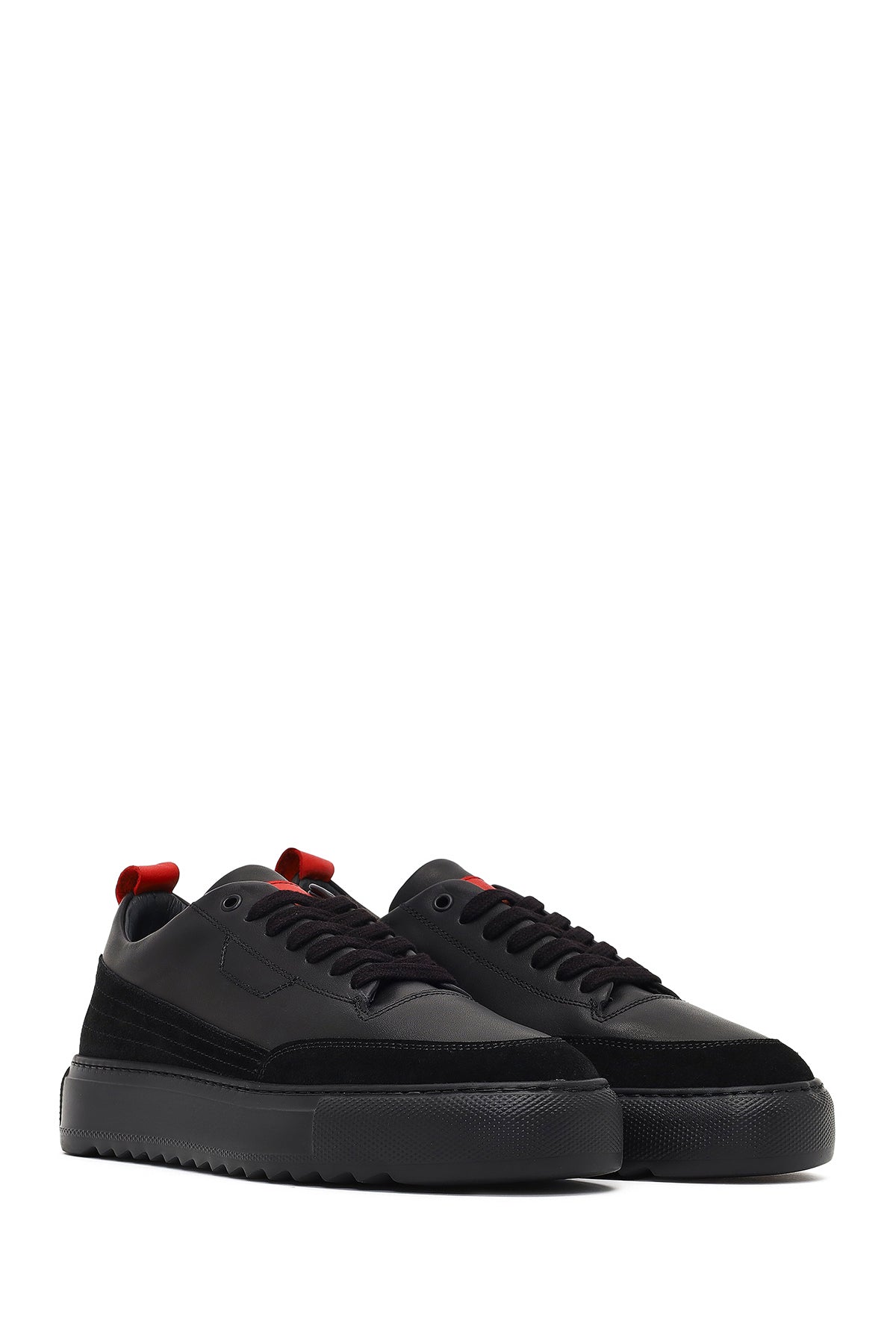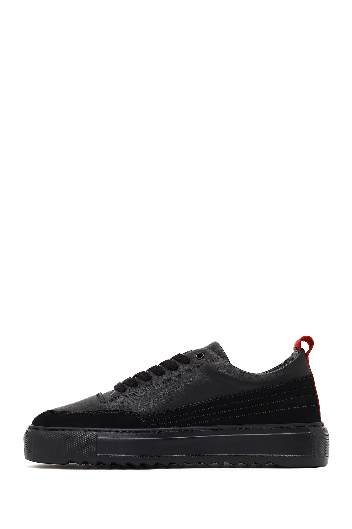 Men's Black Lace-Up Thick-Soled Leather Sneaker