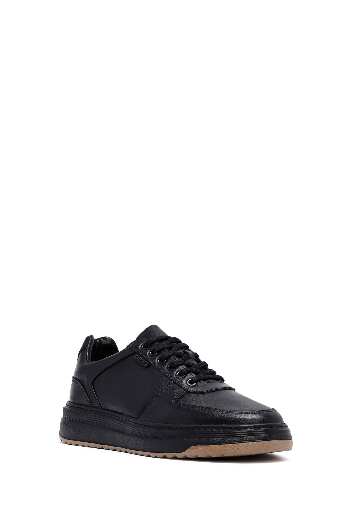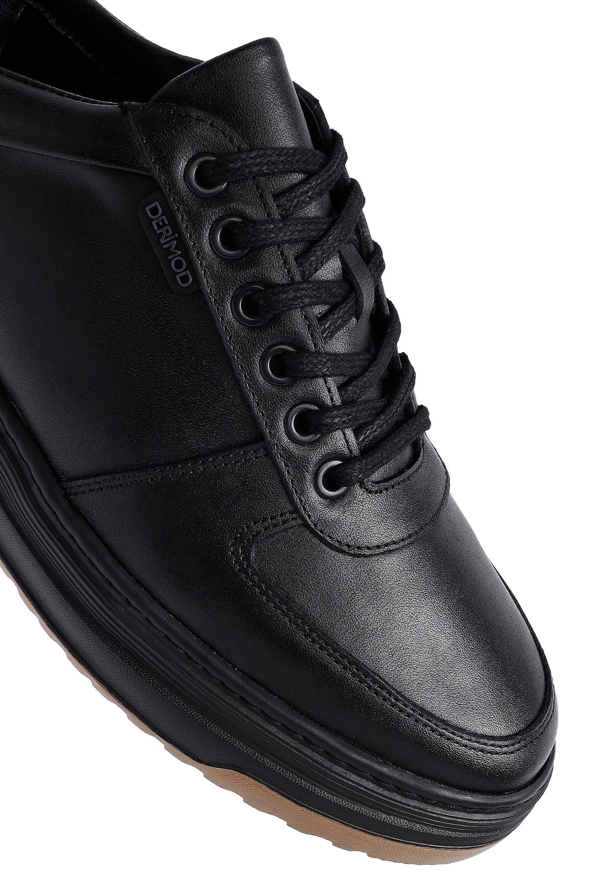 **English Description:** The men's black lace-up thick-soled leather sneaker from Derimod's winter collection offers the comfort and style that modern men seek in their daily lives. Made from Vidala leather material, the model stands out with its superior quality and durability. Thanks to the leather inner lining, it allows the feet to breathe, providing comfort even during long-term use. With a heel height of 2.5 cm, the sneaker is an ideal choice for daily activities, and its thick sole enhances walking comfort. The lace-up design ensures a perfect fit on the foot, while the black color can be easily paired with any style of clothing. This model in the casual sneaker category has a wide range of uses, from office environments to daily outings, sports activities, and social gatherings. Suitable for winter months, the sneaker keeps feet warm in cold weather while providing a stylish appearance. Produced with high-quality craftsmanship and timeless design, the model is durable enough to be used for many years and is one of the essential pieces that modern men must have in their shoe collection. Product code: 25WFD660118