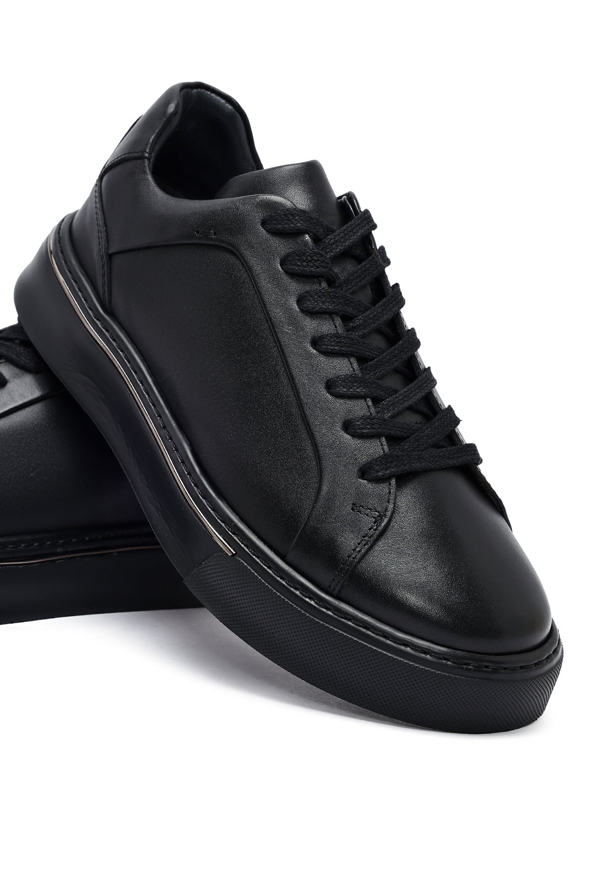**Turkish Description:** Men's Black Lace-Up Thick-Soled Leather Sneaker stands out as one of the indispensable pieces of modern men's fashion. Produced with Vidala leather material, the sneaker stands out with its superior quality and durability, while its genuine leather inner lining protects foot health and provides maximum comfort during long-term use. The model, which perfectly matches all kinds of outfit combinations with its black color, represents timeless elegance. With its thick-soled design, the sneaker is suitable for today's fashion trends and provides an ideal posture with a 2 cm heel height. Its lace-up structure ensures a perfect fit on the foot and offers adjustable use according to personal preferences. The model, which is a prominent piece of the winter collection, keeps feet warm even in cold weather conditions, meeting seasonal needs. The genuine leather material shapes to the foot over time, creating a personalized wearing experience, while its quality craftsmanship promises durable use for years. The sneaker, which has a wide range of use from daily life to office, social events, sports activities, and meeting friends, perfectly adapts to the active lifestyle of the modern man. With its design that keeps up with the dynamic pace of city life, it offers both a stylish and practical option. Product code: 25WFD685218
