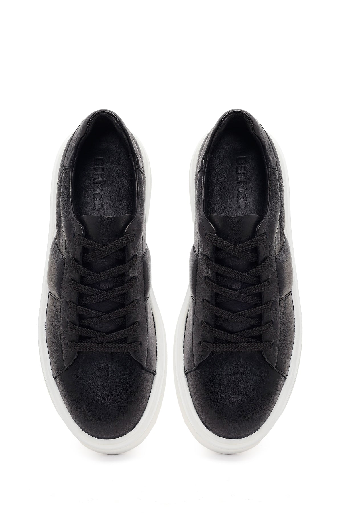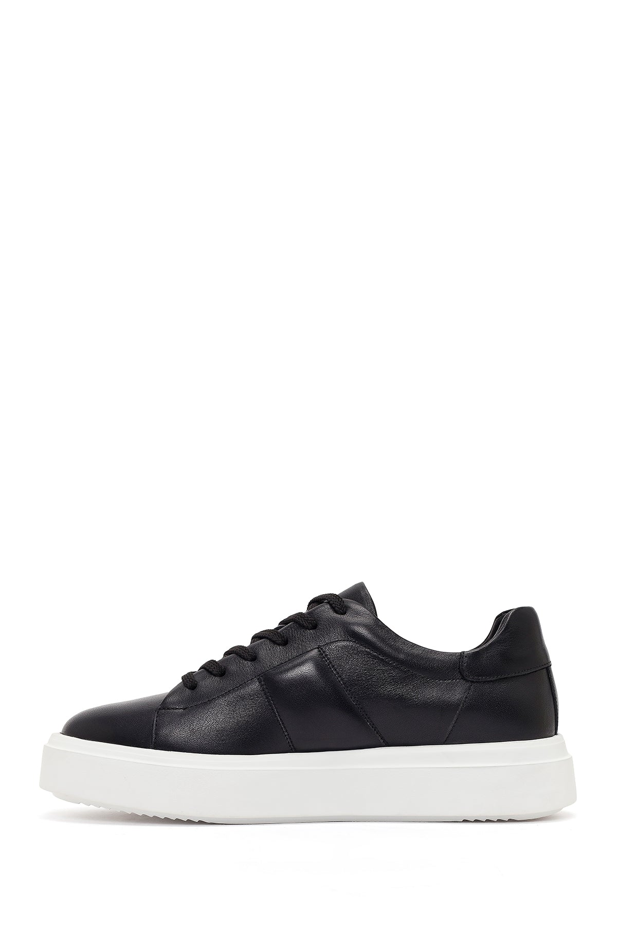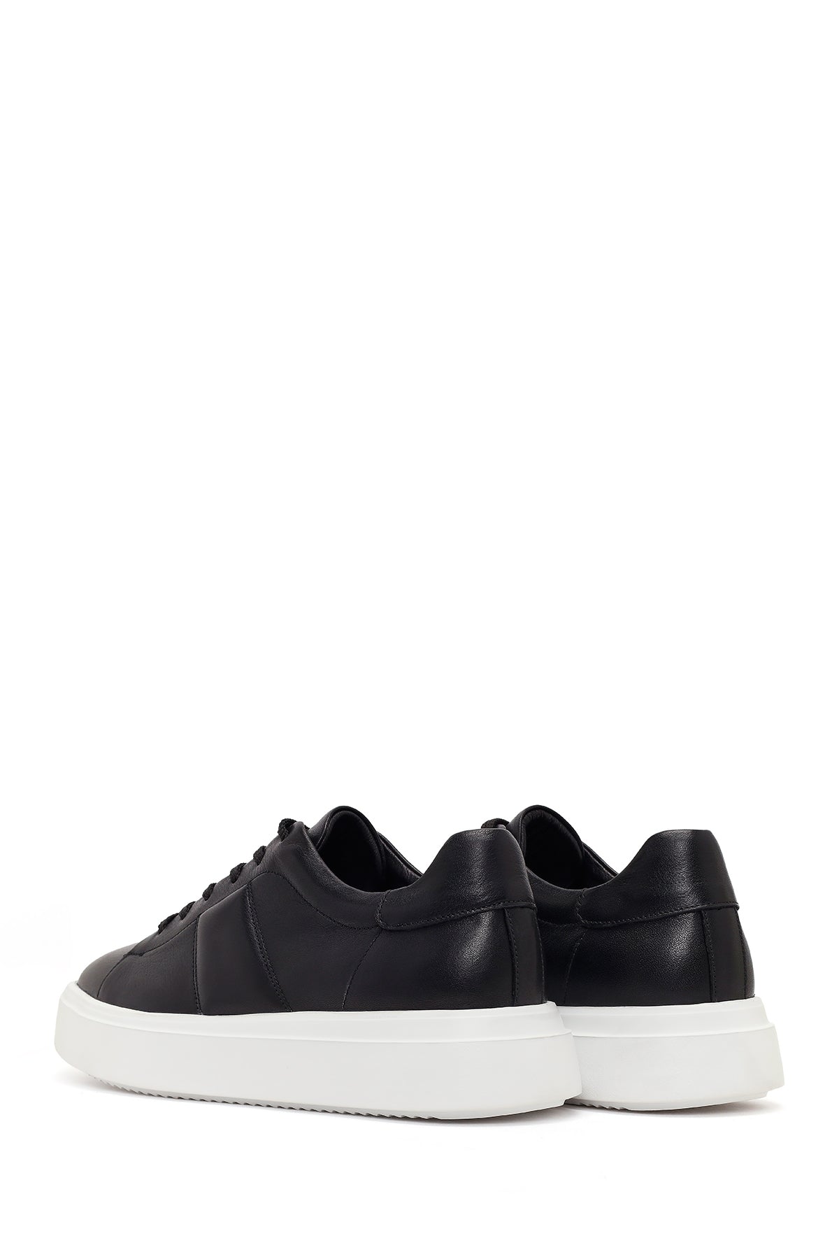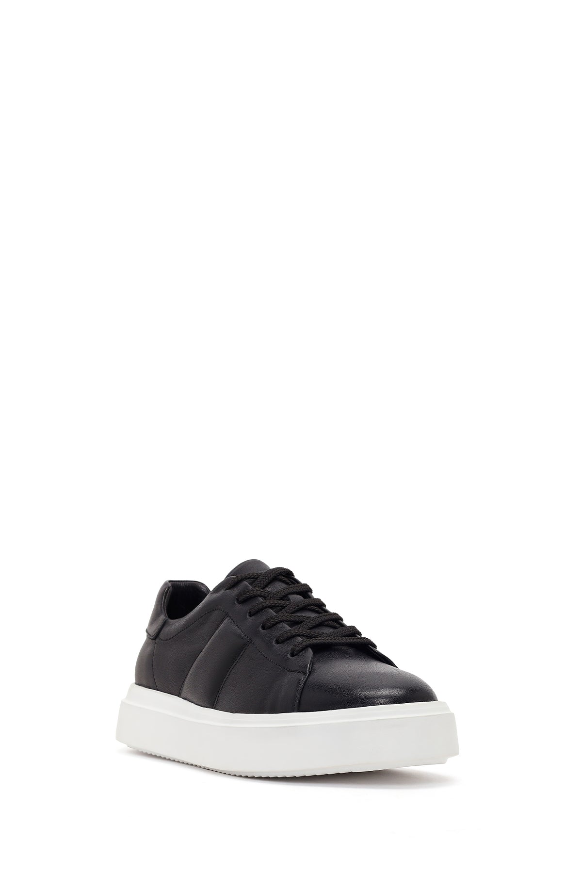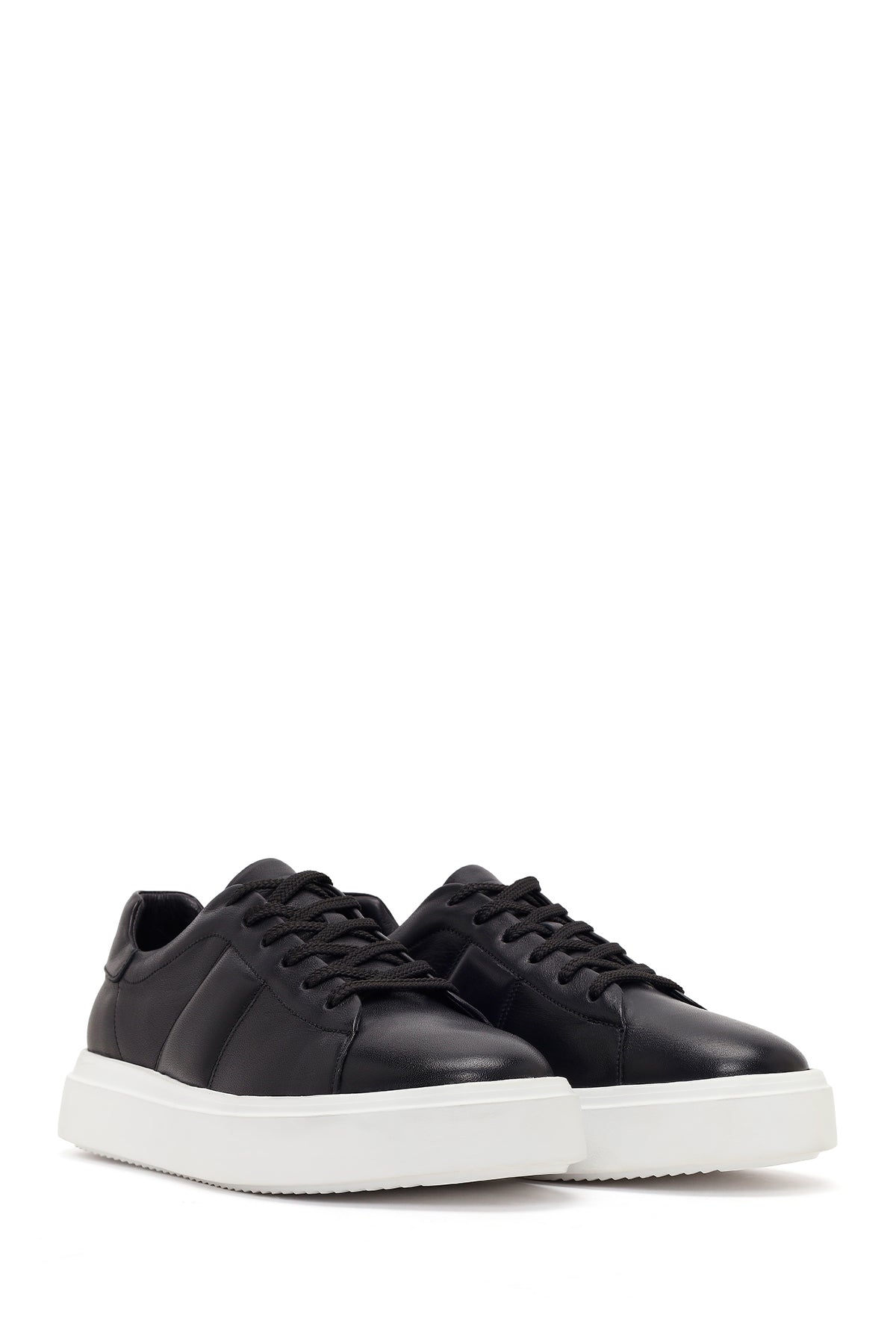 Erkek Siyah Bağcıklı Kalın Tabanlı Deri Sneaker