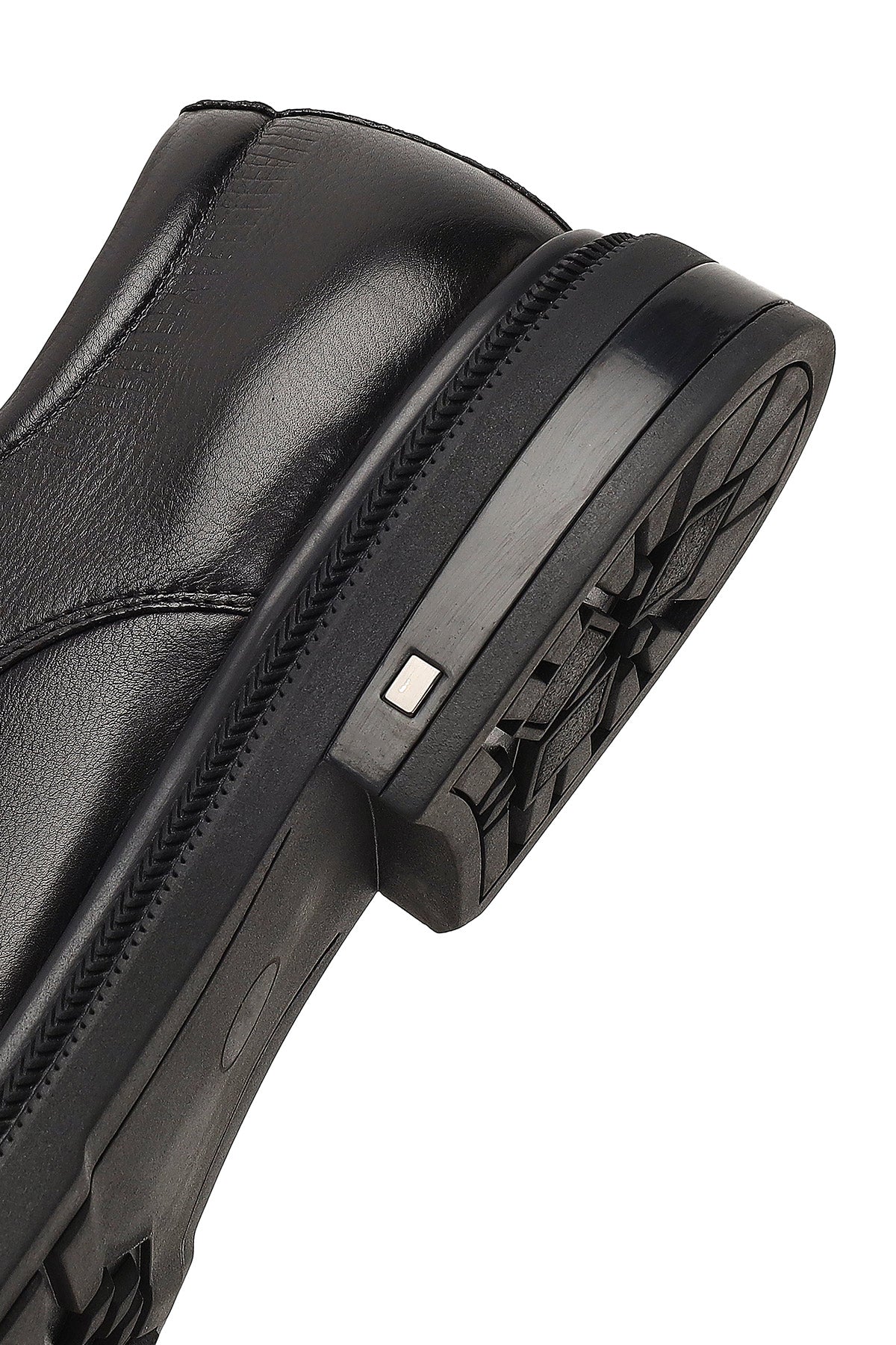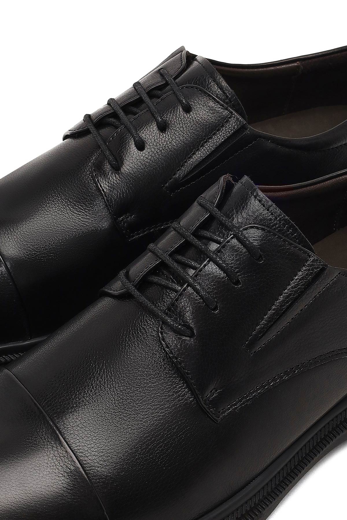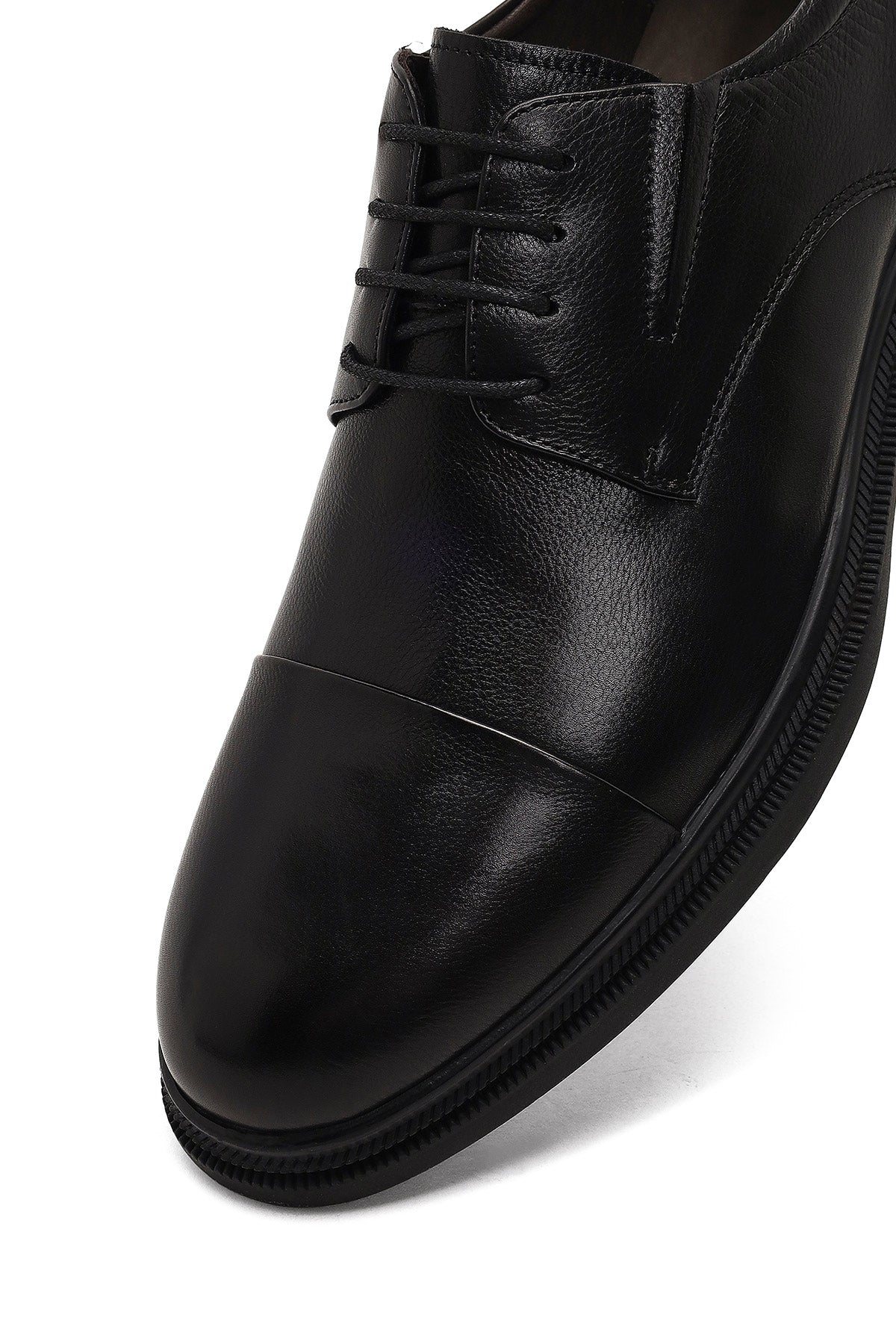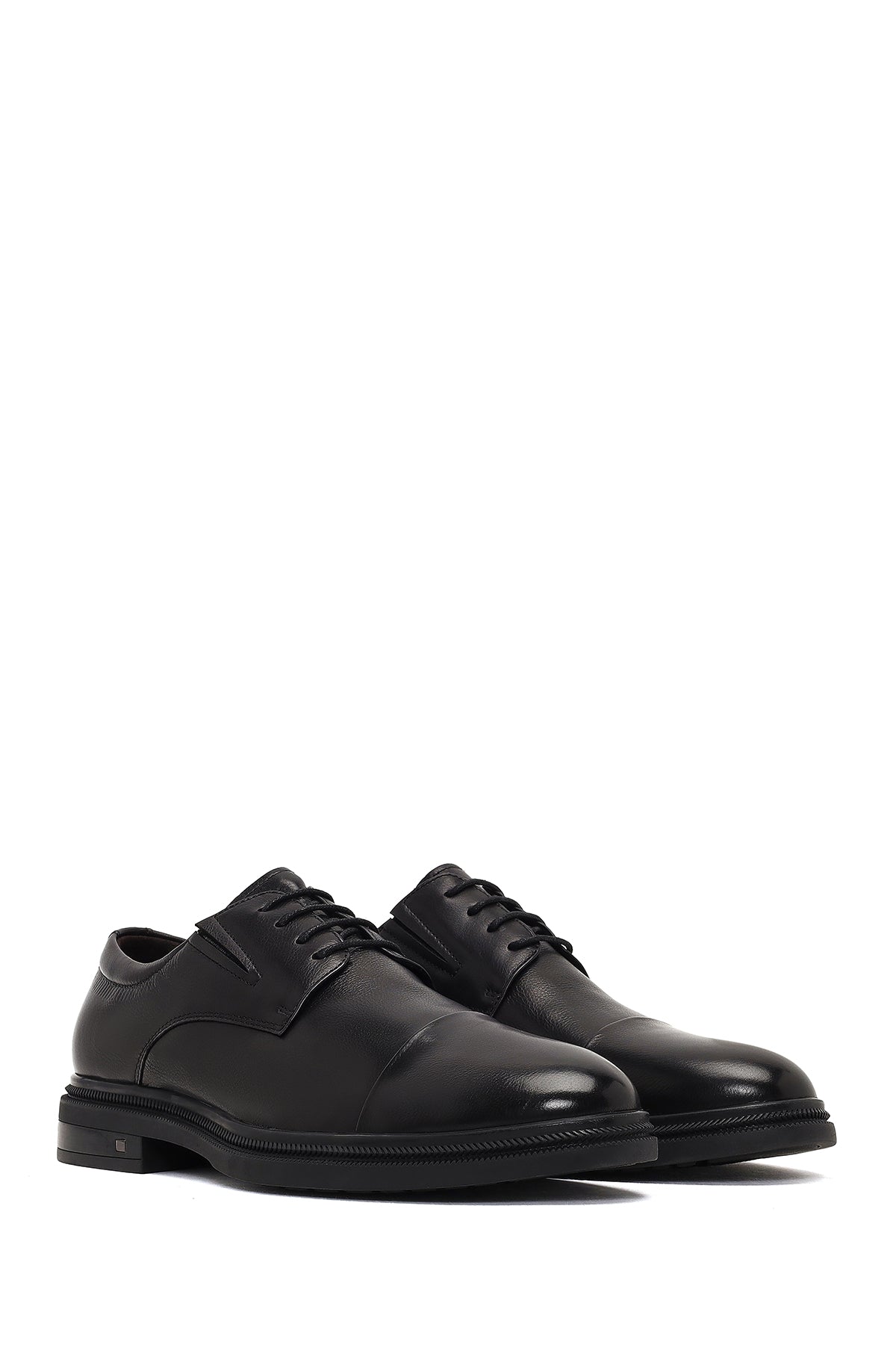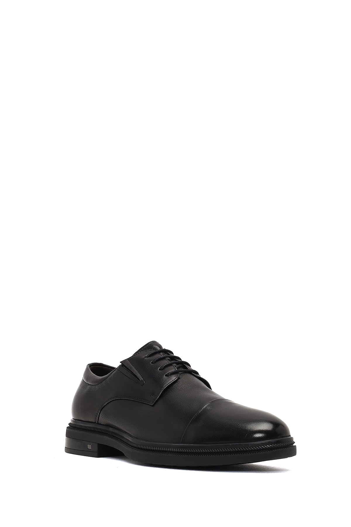 The men's classic shoe made from black leather material features design lines inspired by traditional English shoemaking. The glossy leather surface offers a smooth and stylish appearance, while decorative perforated details highlight the distinctive features of the classic structure. The lace-up design wraps the foot in a balanced way, and the closed lacing system supports the traditional classic shoe aesthetic. The side panel stitching increases the product's structural durability and creates a dynamic look with shaping lines. The toe shape is designed with oval lines, providing ample movement space for the toes. The leather inner lining offers breathability and long-lasting comfort. The 2 cm heel height provides ideal balance and posture for daily use. The sole with a grooved pattern enhances ground grip and supports secure steps on different surface conditions. The collar is supported with soft padding material, making it easier to put on and take off the shoe. The reinforced heel counter offers ankle support and helps maintain balance during prolonged standing. This standout model in the men's leather classic shoe category offers a wide range of use from work environments to formal meetings. The black color palette easily adapts to different clothing combinations. Product code: 25WFD695018