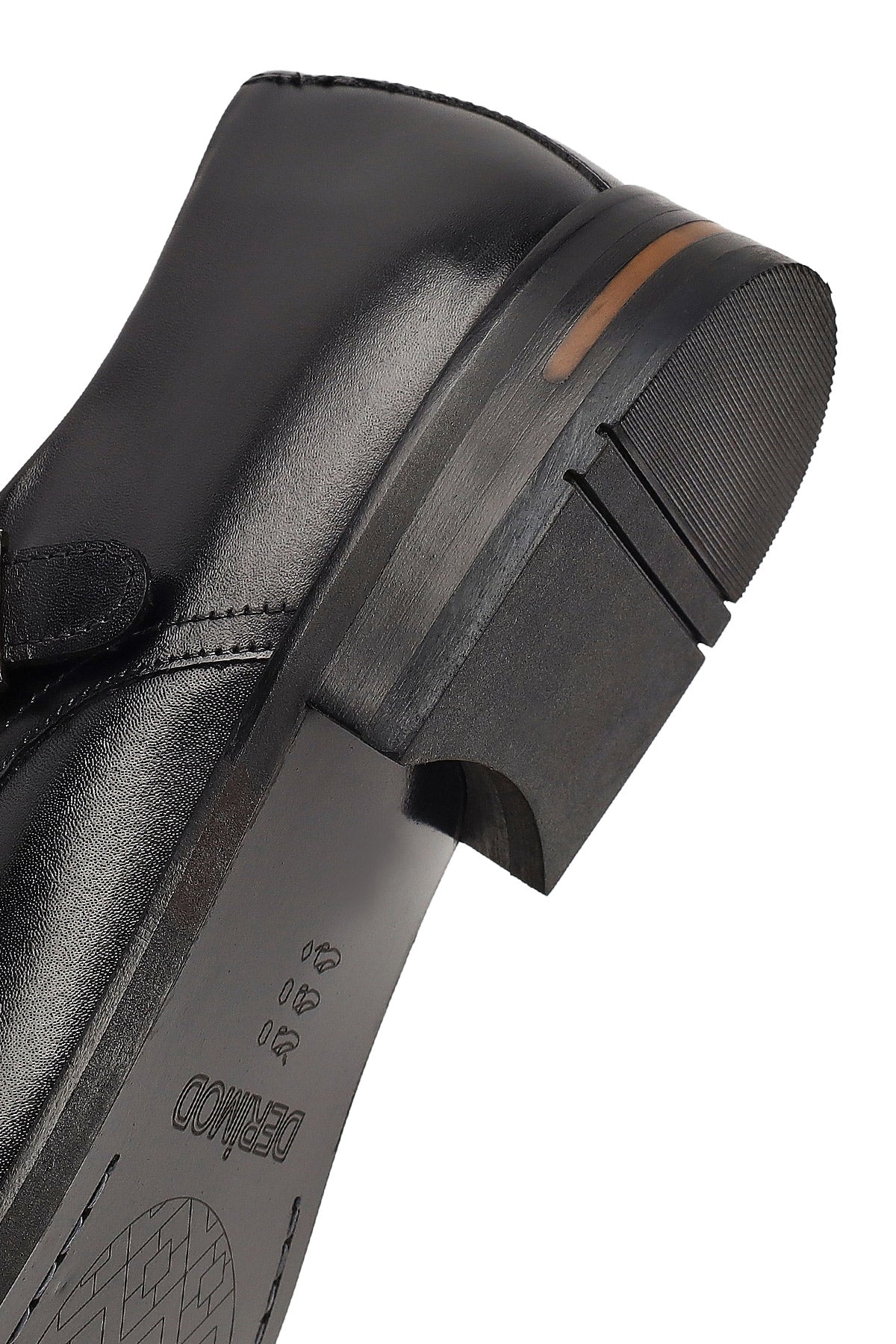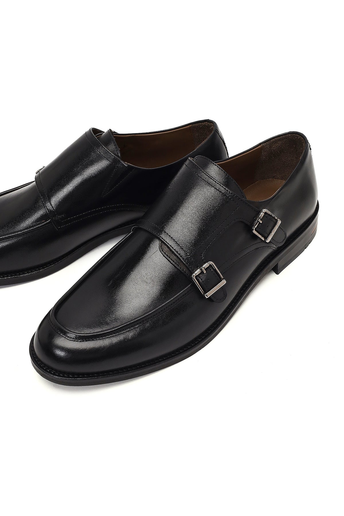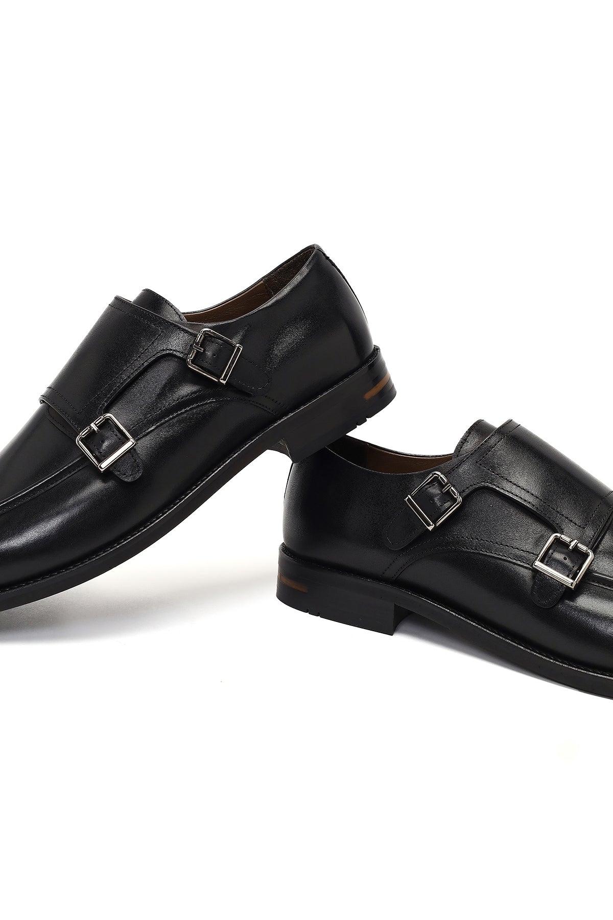**Turkish Description:** Men's Black Double Buckle Leather Classic Shoe is one of the indispensable pieces of modern men's fashion. Made from Vidala leather material, the shoe attracts attention with its superior quality craftsmanship and stylish design. Its black color provides perfect harmony with all kinds of combinations and offers timeless elegance. The double buckle detail offers practical use as an alternative to traditional lace-up shoes, while giving the shoe a characteristic look. The leather inner lining protects foot health and provides maximum comfort during long-term use. With a heel height of 1.5 cm, the shoe is suitable for daily use and gives a natural posture to the foot. As one of the standout products of the winter collection, the model can also be comfortably preferred in cold weather conditions. It can be used in business life, official meetings, special invitations, and daily stylish combinations. The model in the classic men's shoe category perfectly matches suits, pants, and shirt combinations. Ideal for autumn and winter months, the shoe can be used for many years thanks to its high-quality leather structure. Product code: 25WFD603418