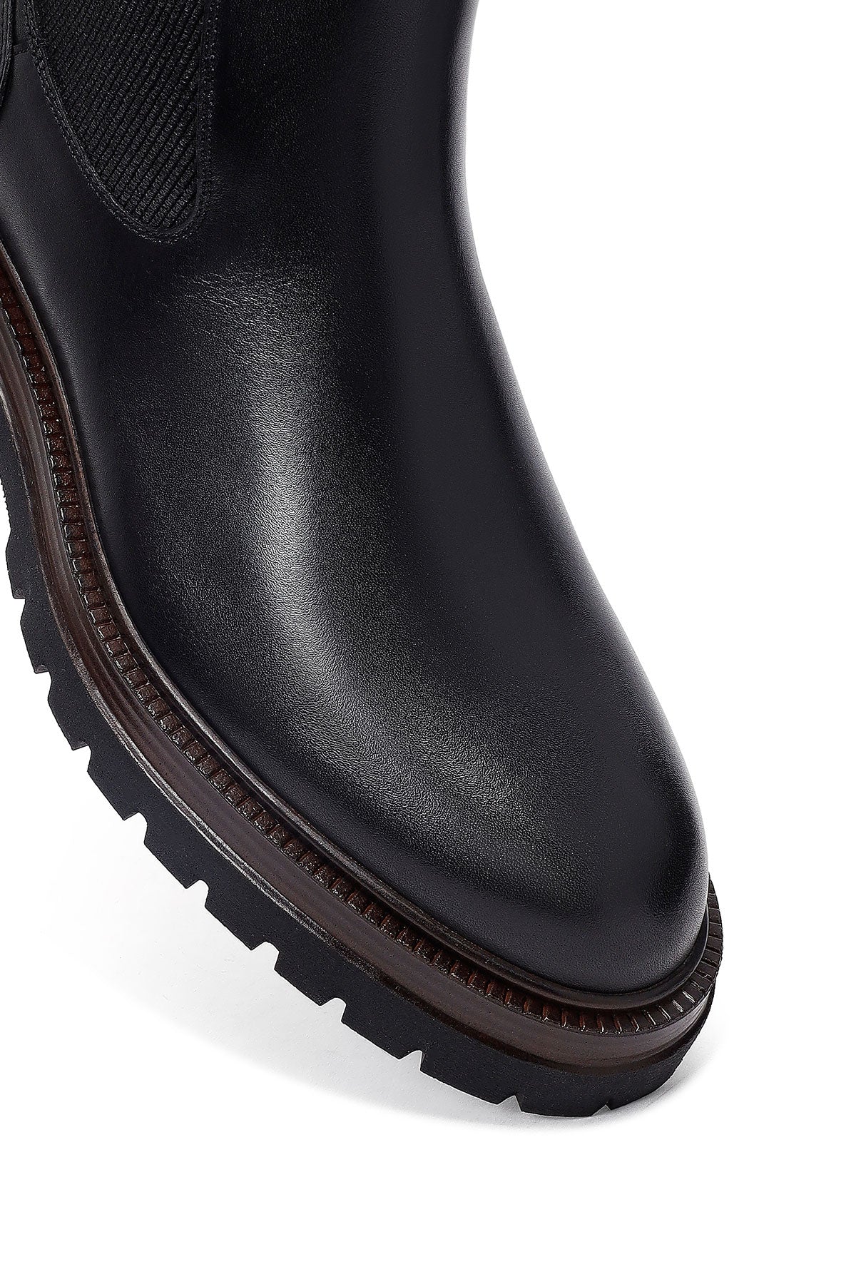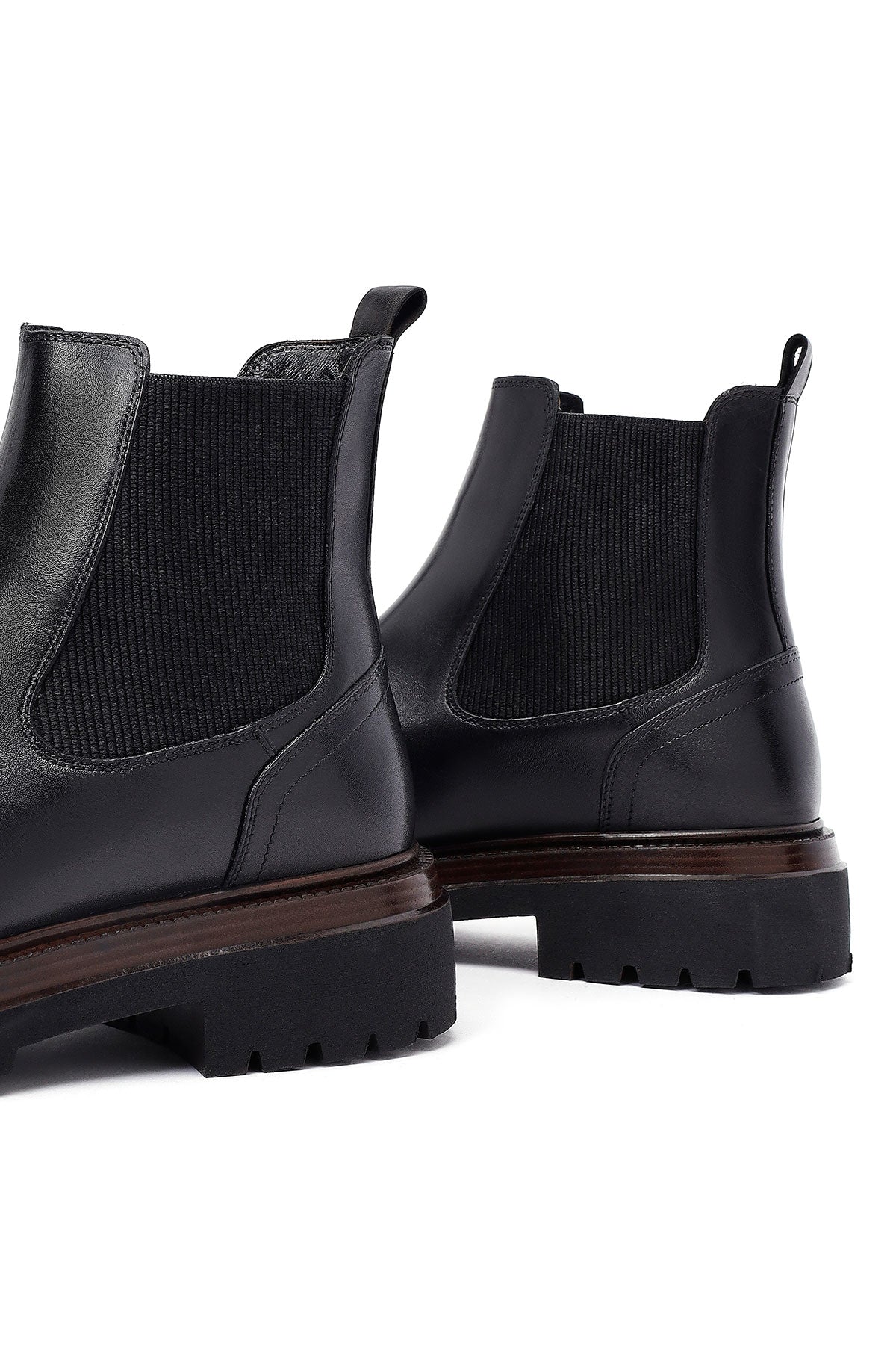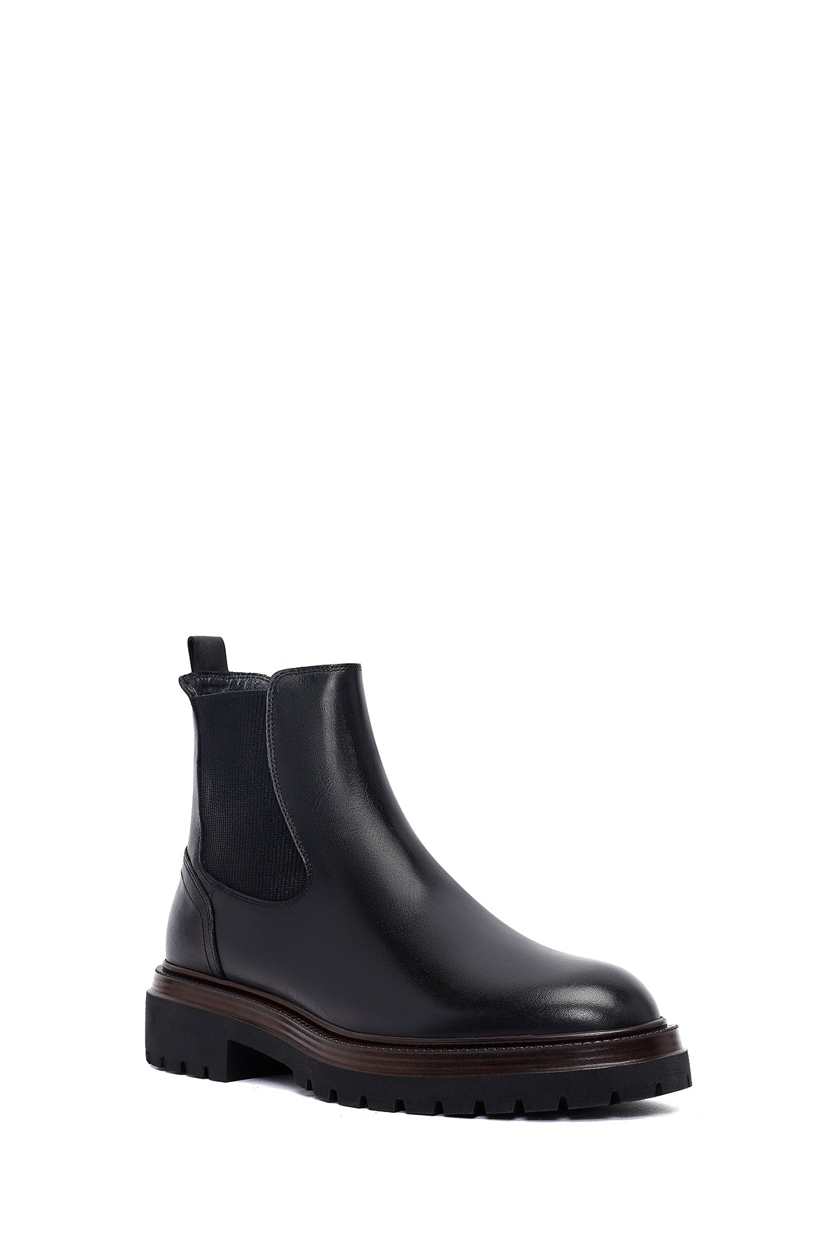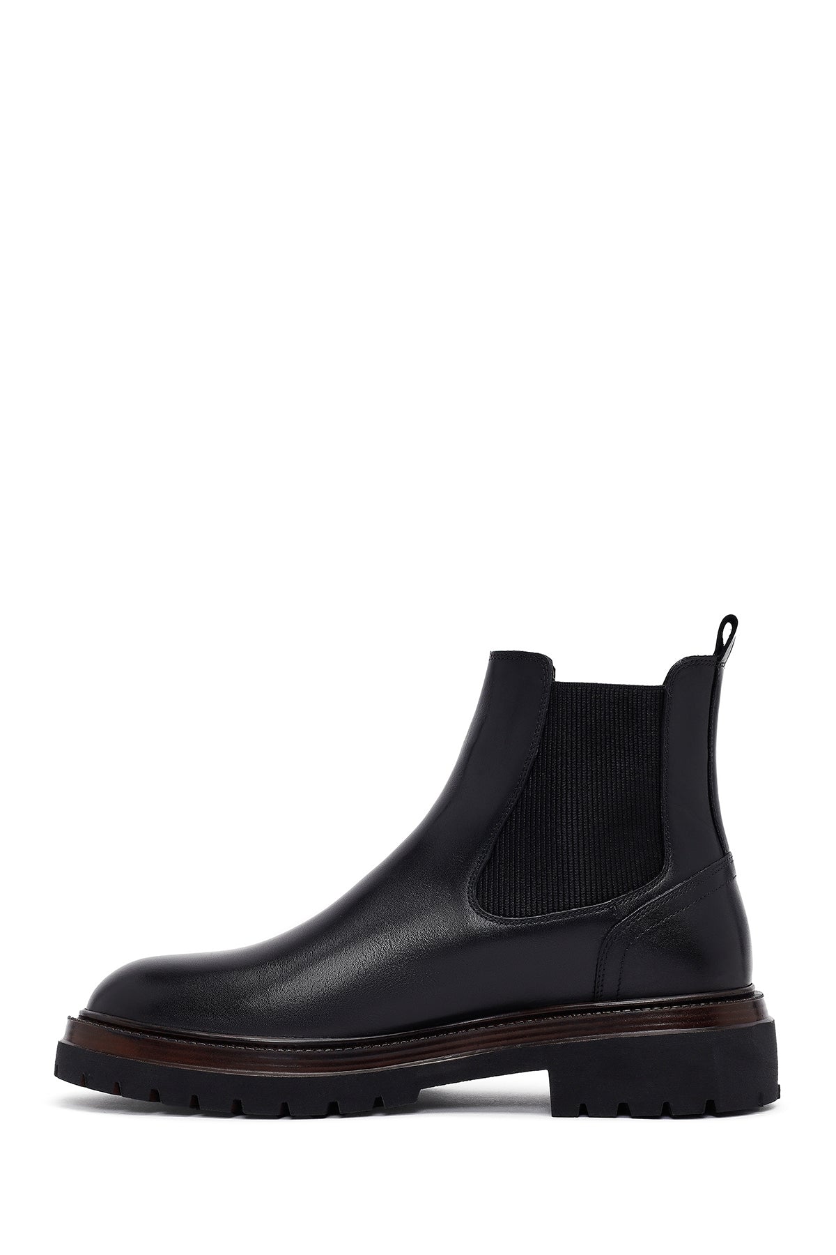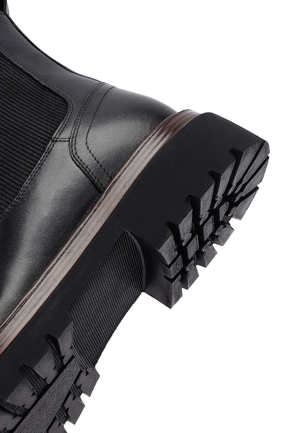 Men's Black Leather Chelsea Boot is a timeless shoe model that blends the classic English style Chelsea boot silhouette with a modern design approach. The genuine leather upper material with stitched detailing offers superior quality and durability, allowing for long years of use. The characteristic elastic side panels on both sides of the shoe preserve the traditional Chelsea boot aesthetic while providing easy wear and removal convenience. The thick and deeply patterned rubber sole structure offers both daily comfort and superior grip performance, providing a safe walking experience on different ground conditions. With a heel height of 2.5 cm, the model provides an ideal posture position, and its textile inner lining supports foot health and offers breathability. The shoe, which perfectly matches every wardrobe with its black color, has a wide range of use from daily wear to work environments, social activities, and evening meetings. Its structure keeps feet warm and dry in the cold and humid conditions of the winter season, meeting seasonal needs. The model offers practical wearing ease thanks to the pull tabs at the back and is one of the indispensable pieces of the modern men's wardrobe. This boot in the Casual Chelsea category is a perfect choice for those seeking both style and functionality with its design suitable for the dynamic pace of city life. Product code: 25WFD640218